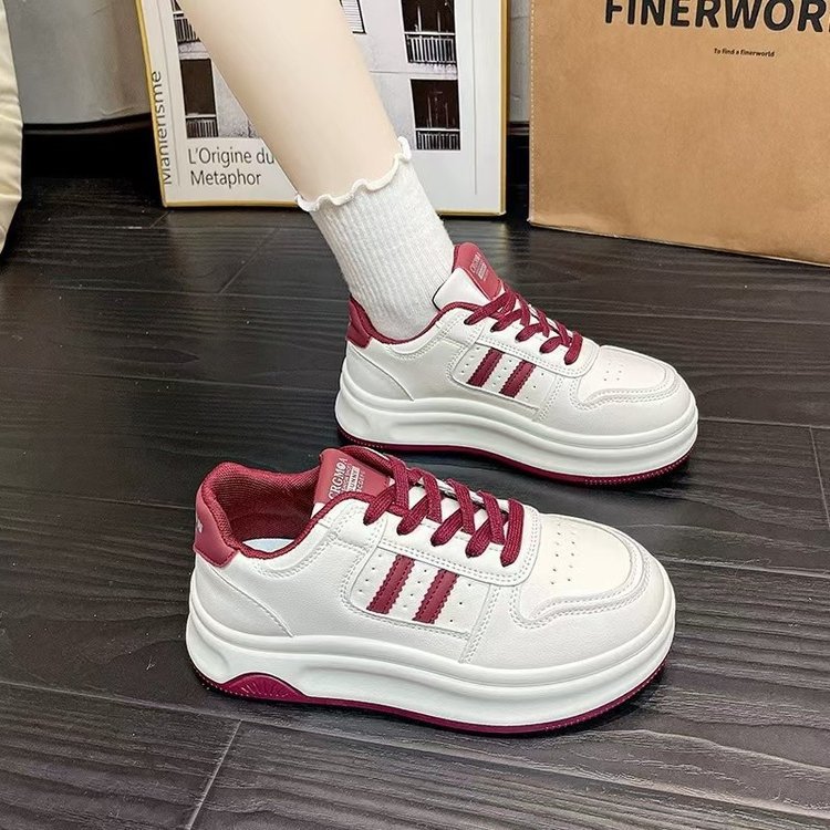 여성을위한 대학 스타일 두꺼운 밑창 캐주얼 스포츠 신발 봄 2025 새로운 미끄럼 방지 높이 증가 흰색 신발 학생 가죽 패널 신발스토어 가기
