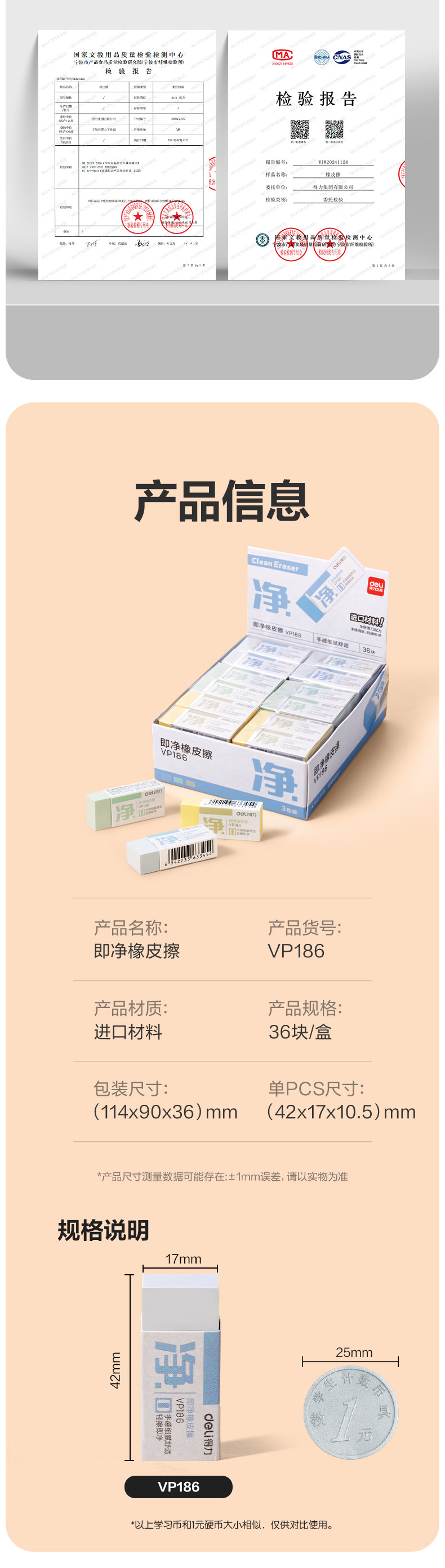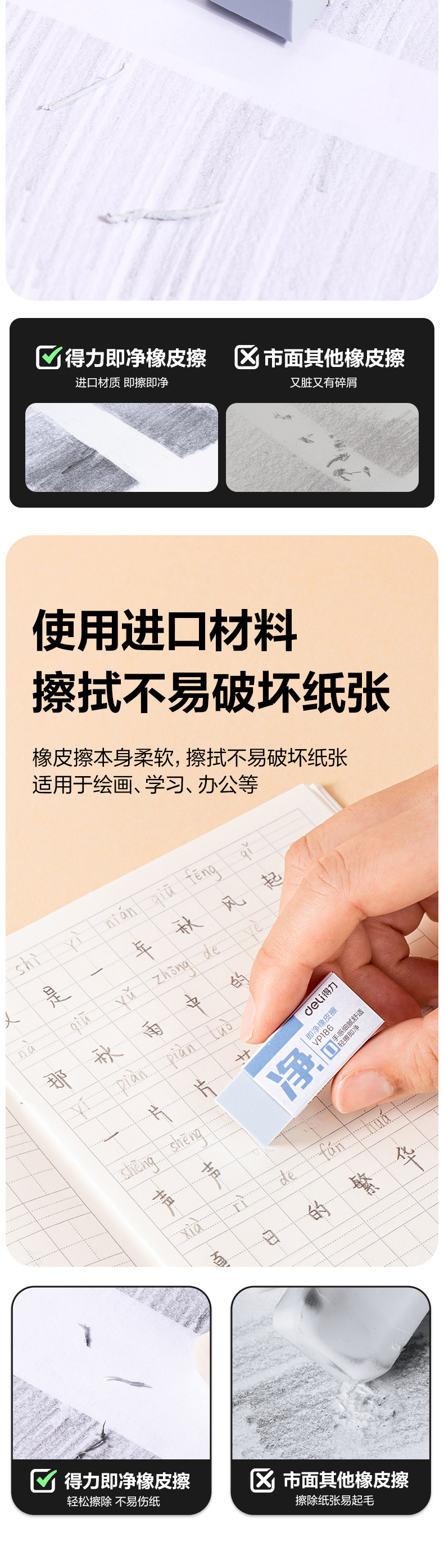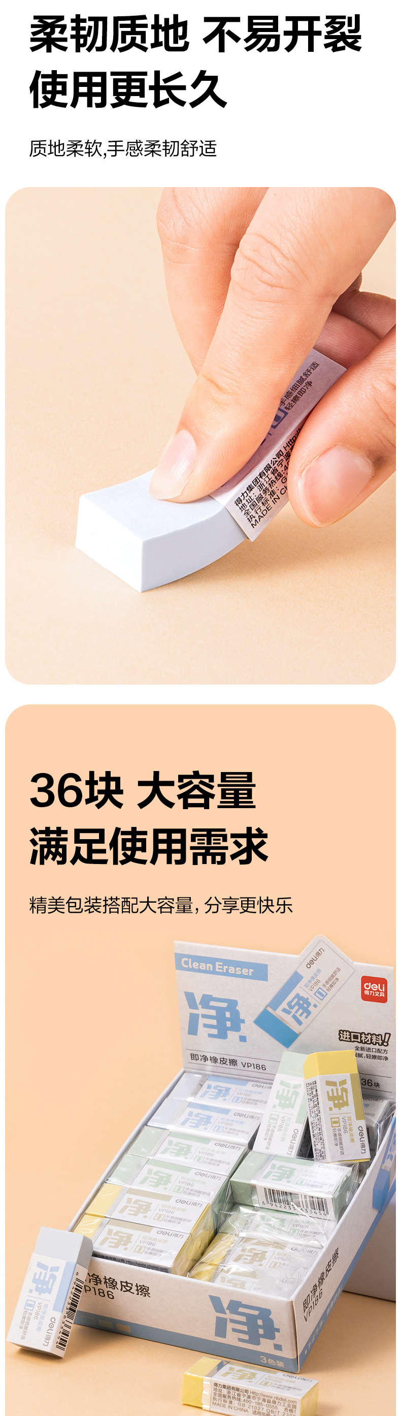 델리 VP186 가볍게 닦아서 깨끗하게 지워지는 지우개, 부스러기가 적고 깨끗하며 흔적이 남지 않음, 부스러기가 적은 휴대용 연필 지우개