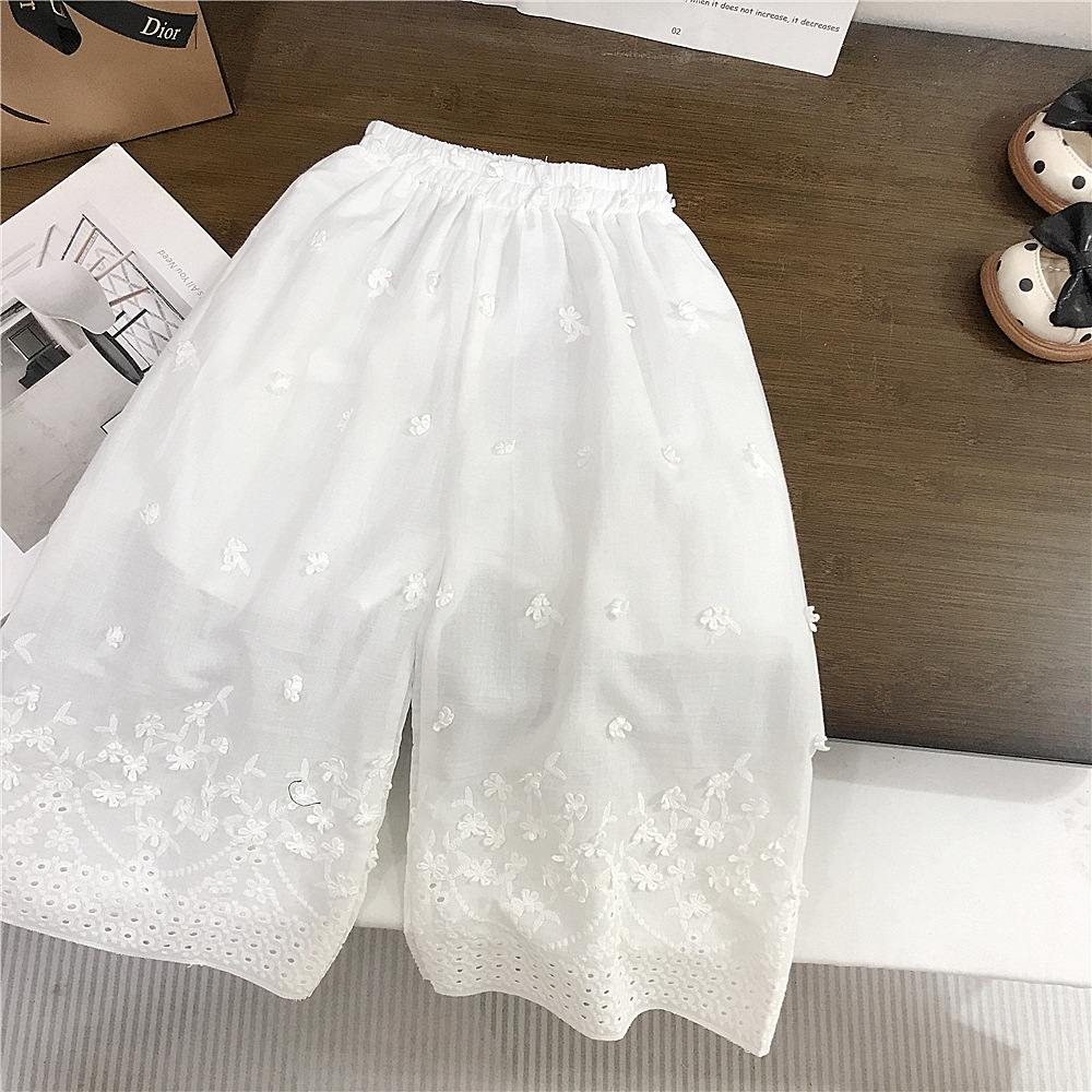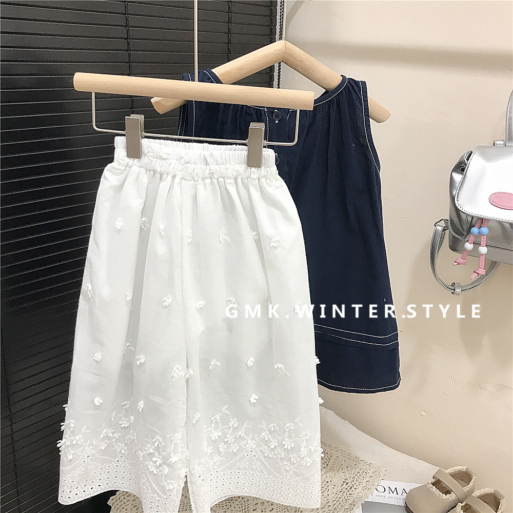 한국 아동복 소녀 여름 유행 원피스 접는 아동복 어린이 서양식 복고풍 넓은 흰색 다리 바지 대외 무역스토어 가기