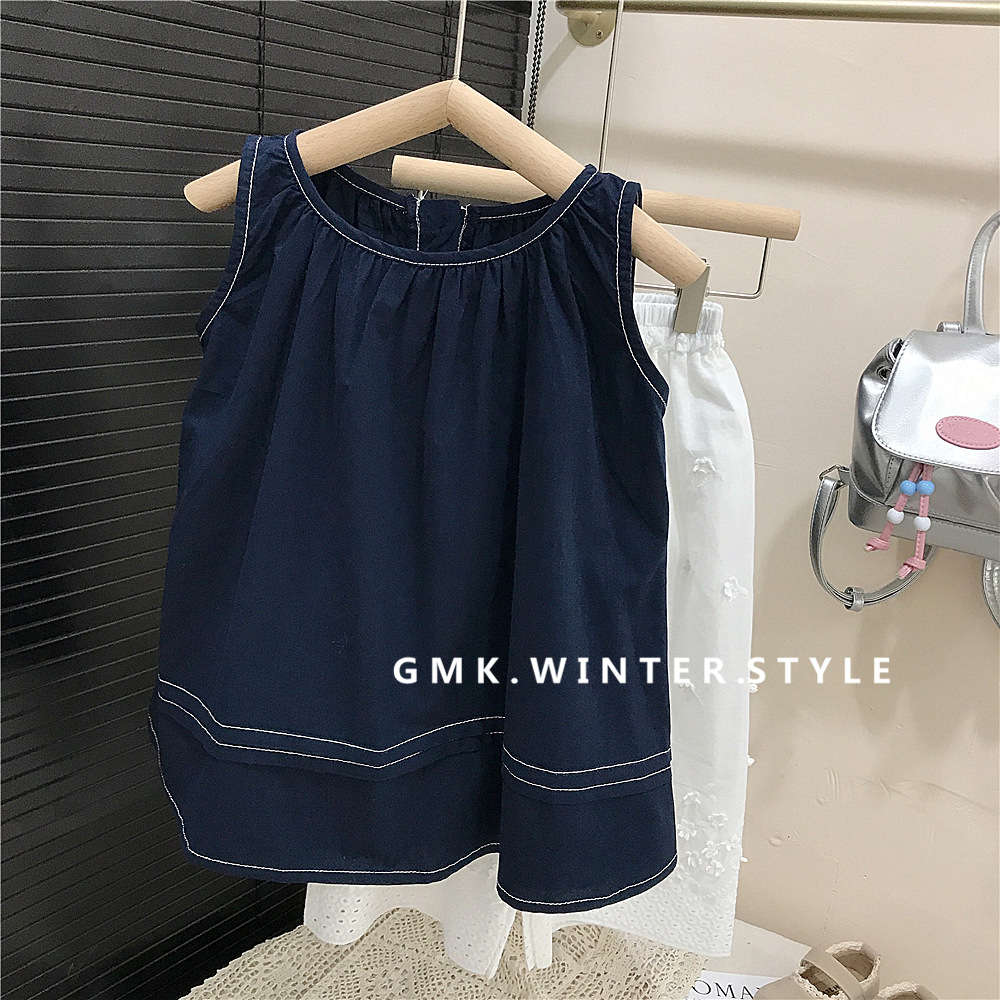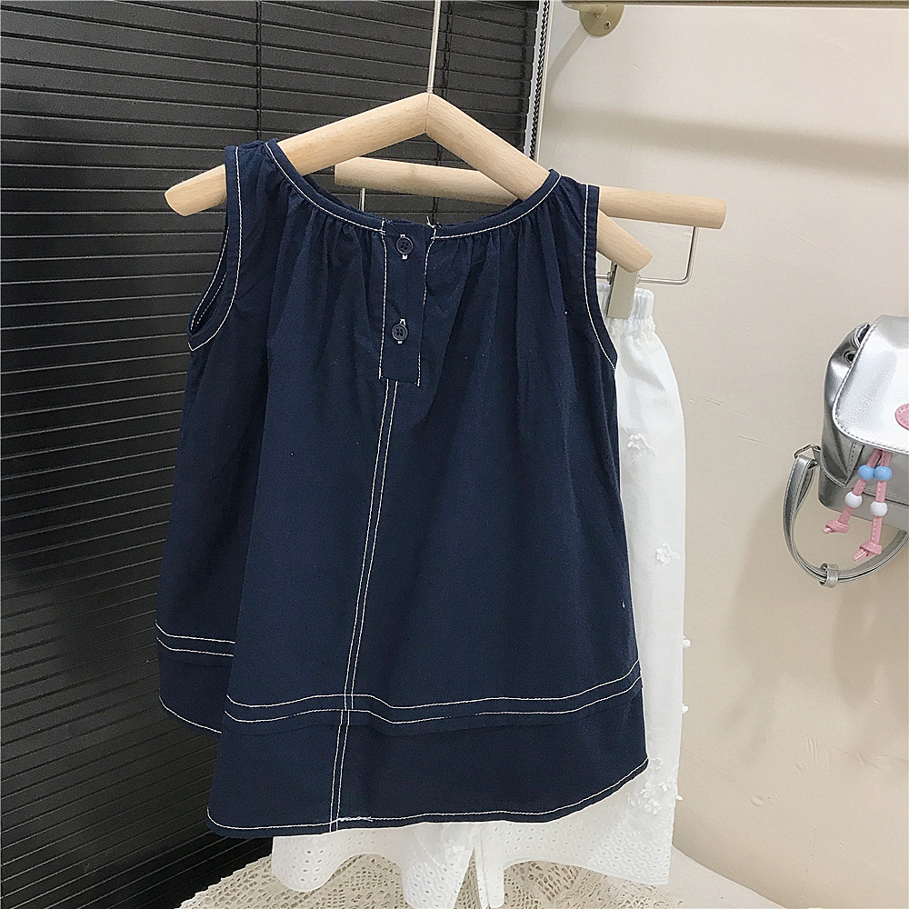 한국 아동복 소녀 여름 유행 원피스 접는 아동복 어린이 서양식 복고풍 넓은 흰색 다리 바지 대외 무역