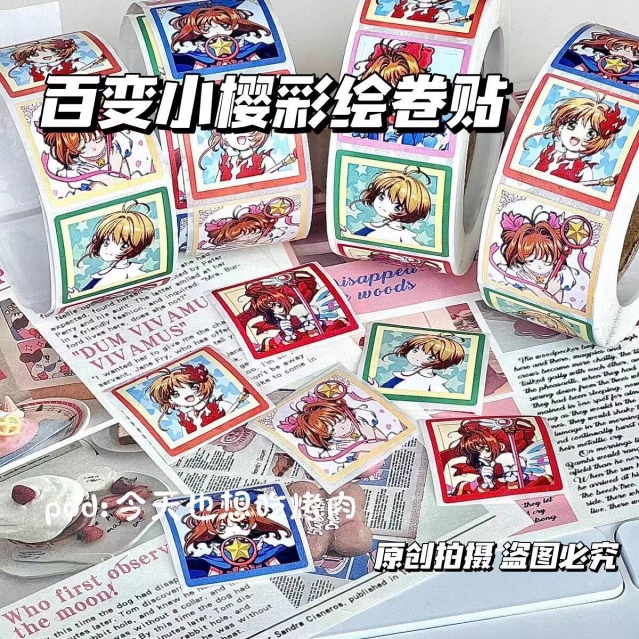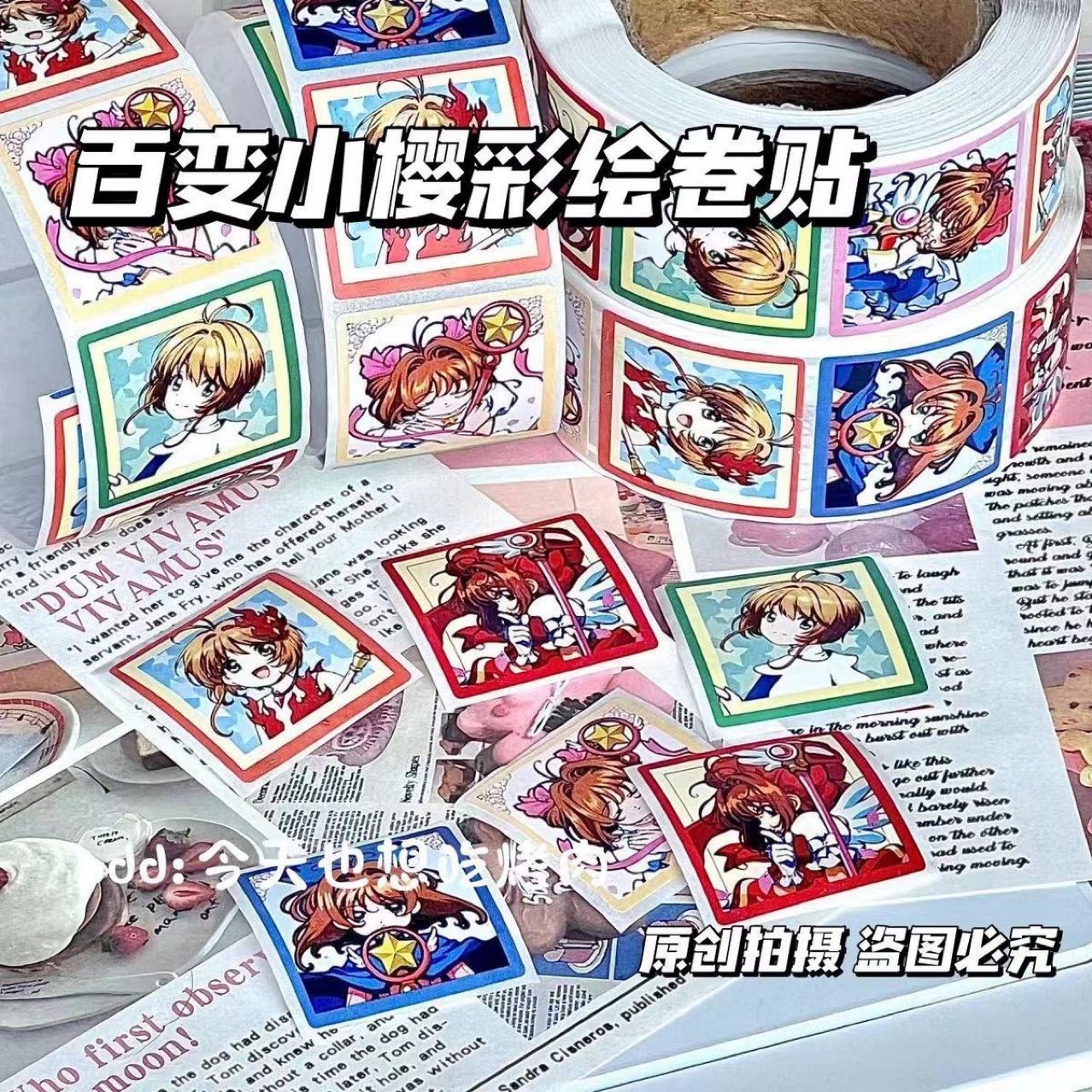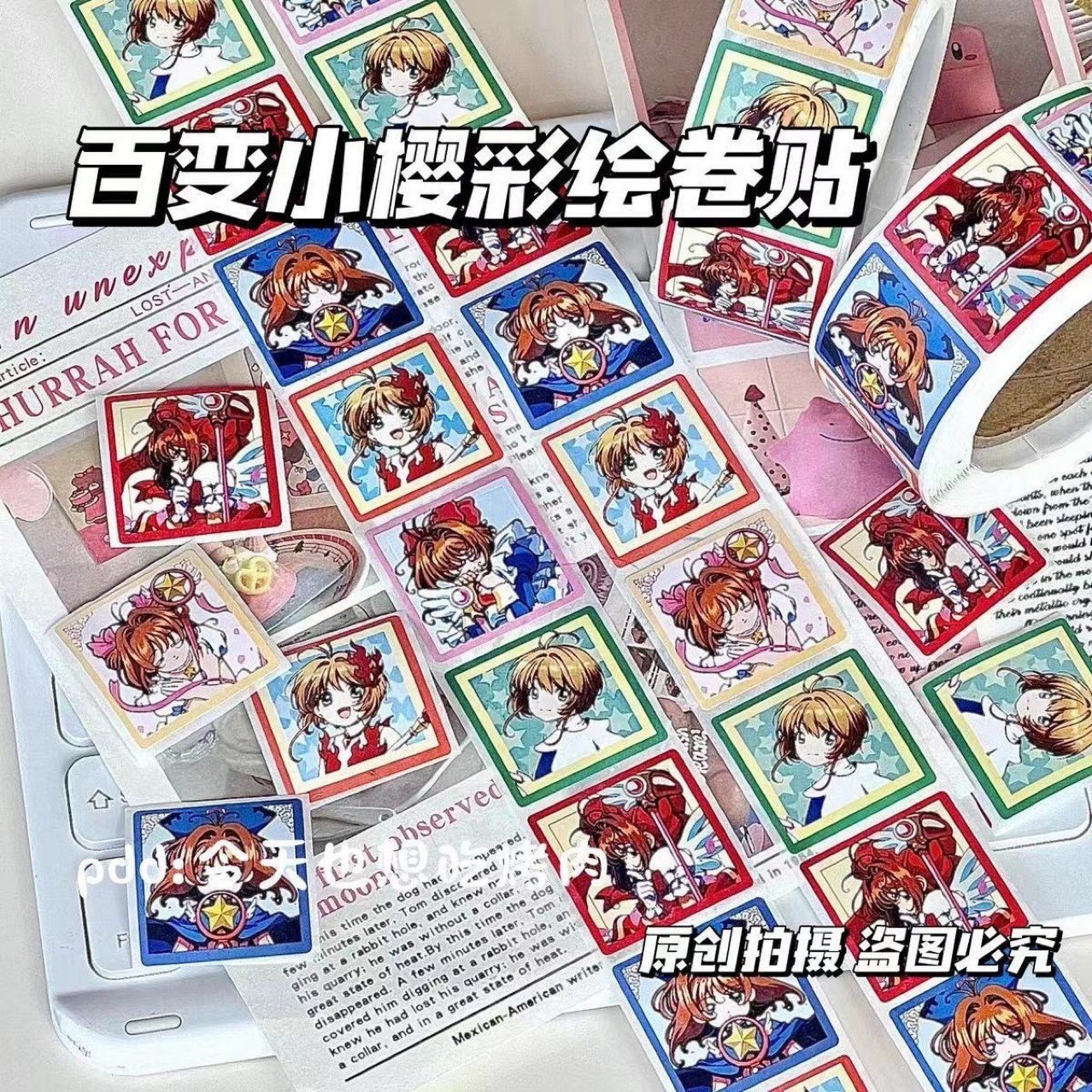 Xiaohongshu 고급스러운 ins 스타일 다양한 사쿠라 애니메이션 귀여운 장식 롤 스티커 봉투 입 스티커 핸드북 자료스토어 가기