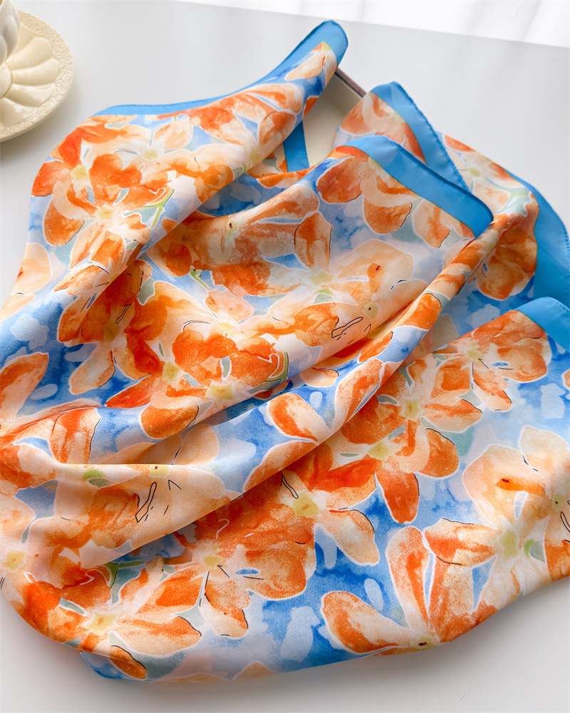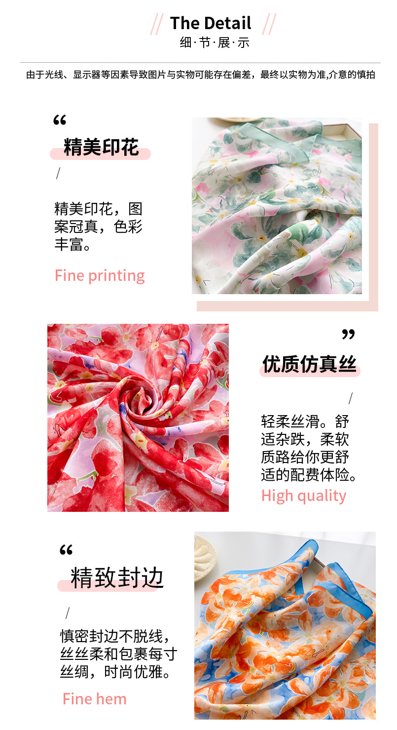 Fei Yun Liu Fang 인쇄 실크 스카프 스퀘어 스카프 고급 감각 목도리 프로 올 매치 넥 스몰 스퀘어 스카프 여성용 스카프스토어 가기