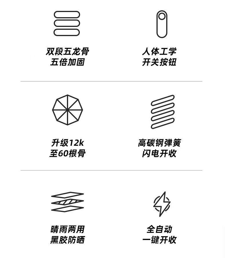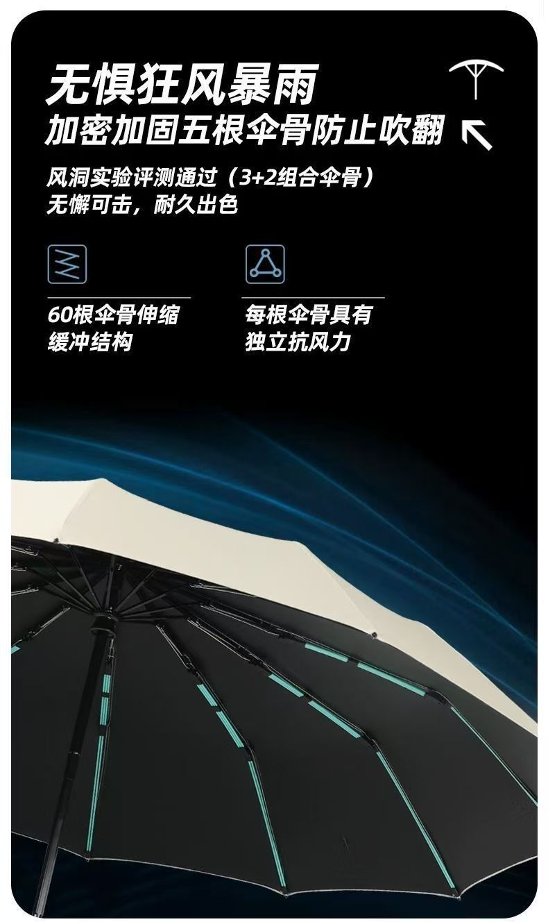 • 60본 전자동 [3+2 자외선 차단 파라솔] 옵시디언 블랙
