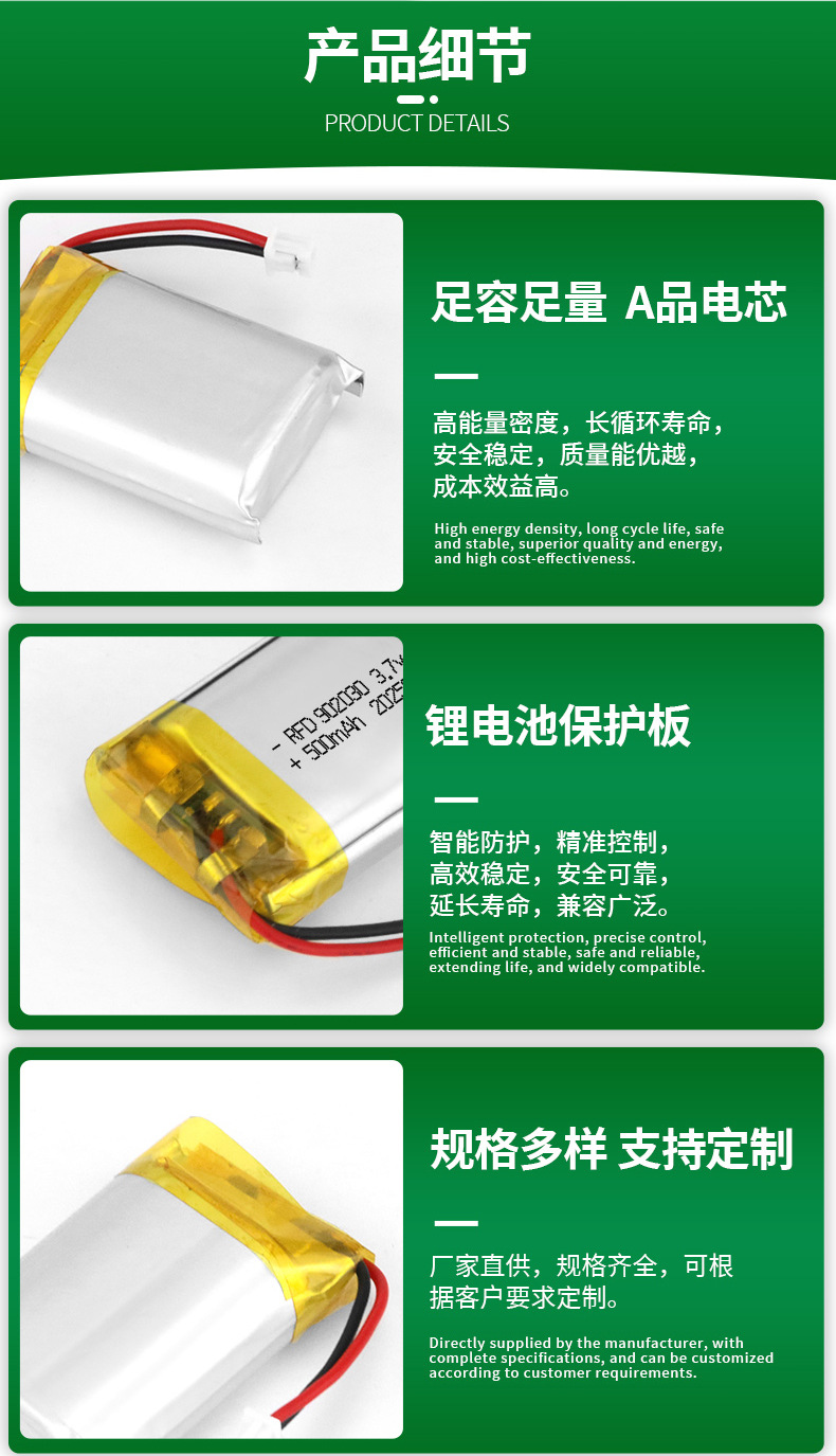3.7V 폴리머 리튬 배터리 시리즈 블루투스 헤드셋 교수형 목 팬 전자 장난감 충전식 소프트 팩 배터리
