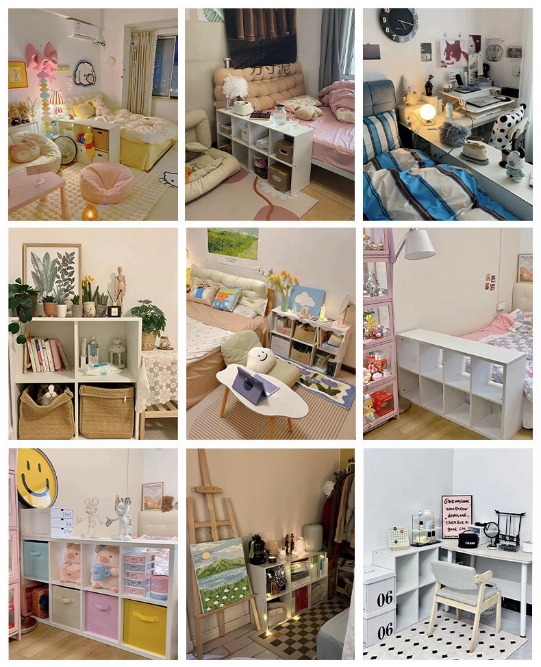 반밀폐형 침대 옆 캐비닛 파티션 격자 캐비닛 침실 수납 책장 수납 선반 바닥부터 천장까지 이어지는 계층형 선반 침대 끝 수납 캐비닛