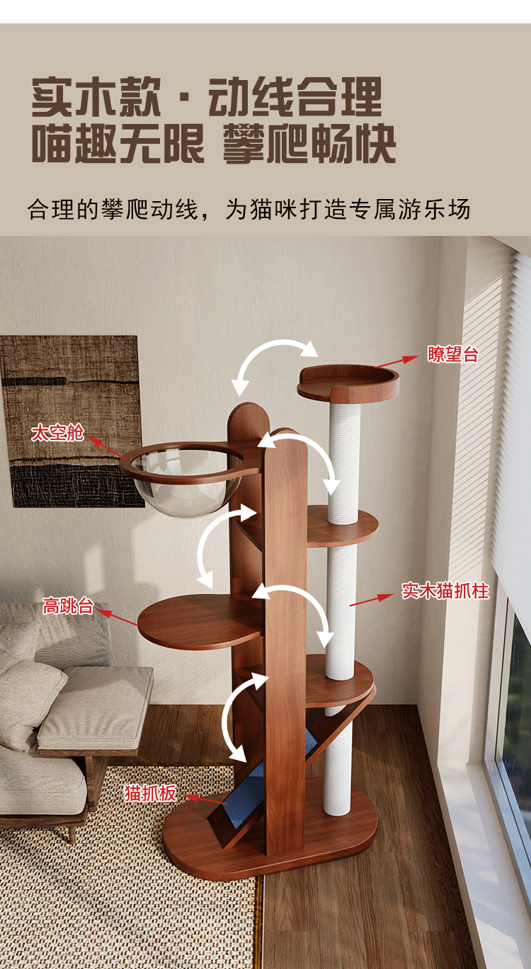 고양이 등반 프레임 고양이 둥지 고양이 나무 통합 공간 캡슐 점프 플랫폼 단단한 나무 대형 사이 잘삼 대형 고양이 빌라 특별 가정용 고양이 프레임