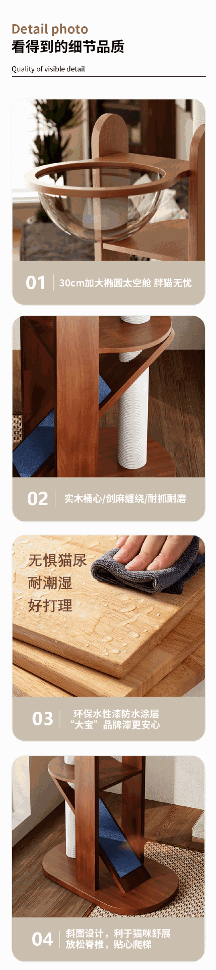 • 원목 고양이 클라이밍 프레임 [우주 캡슐 스타일] - 월넛 컬러