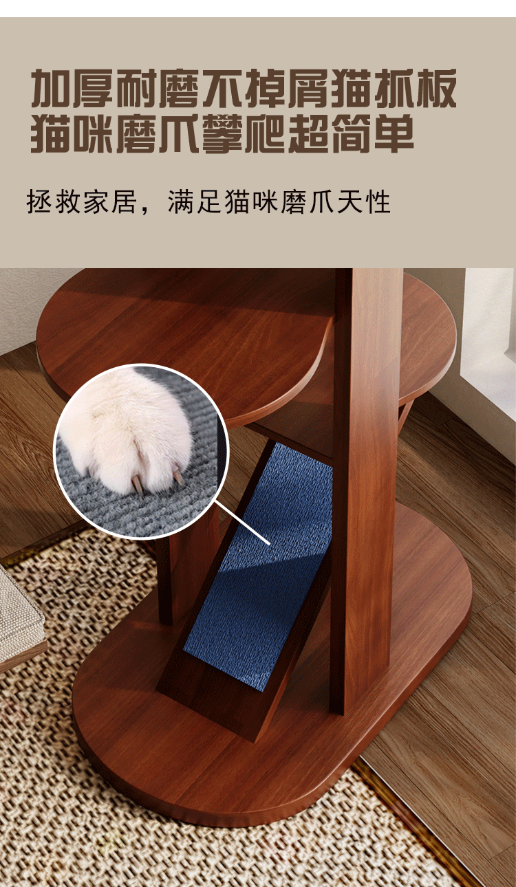 • 원목 고양이 클라이밍 프레임 [점핑 플랫폼 스타일] - 월넛 컬러