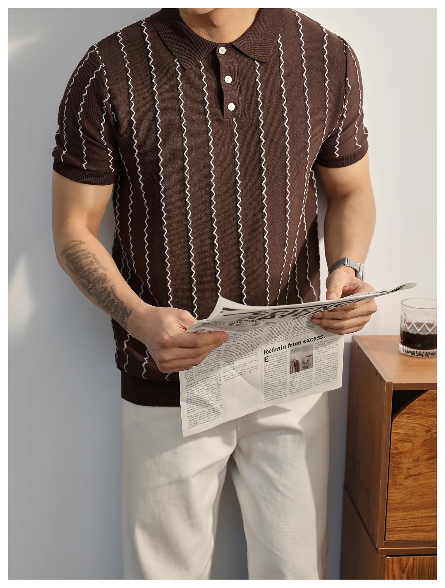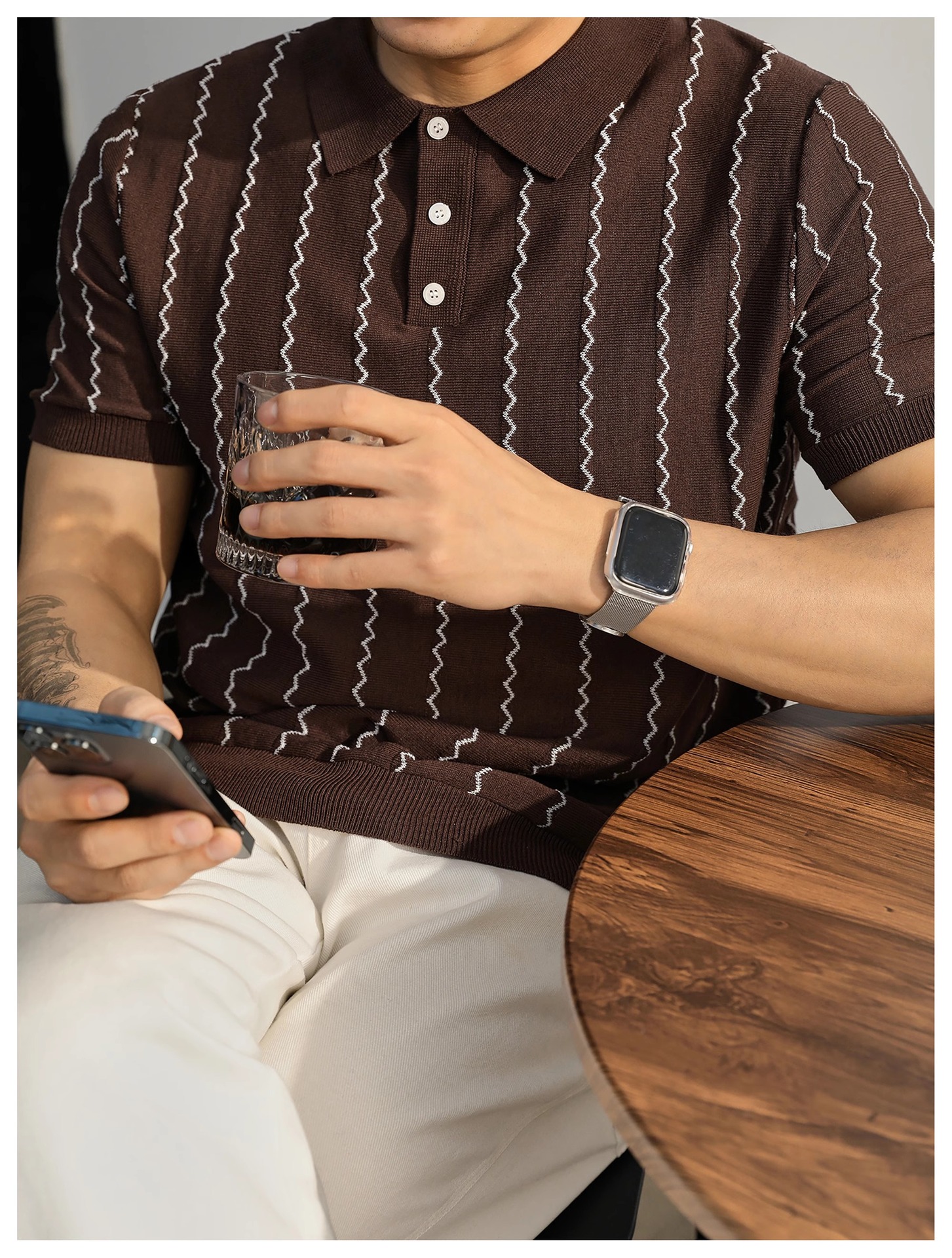 여름 새로운 반팔 폴로 셔츠 남자 이탈리아 비즈니스 캐주얼 웨이브 스트라이프 Lel 통기성 니트 티셔츠
