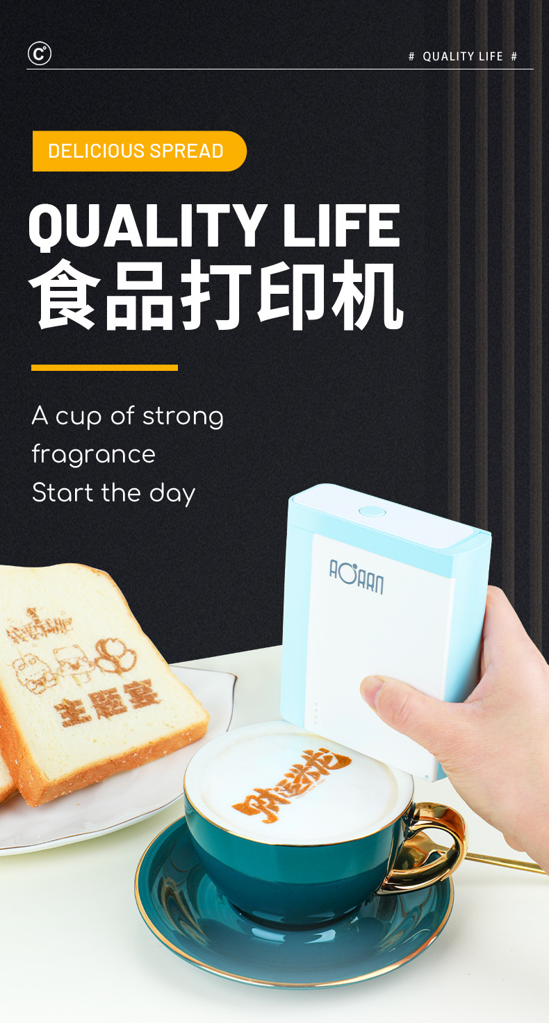 Aoran 휴대용 식품 프린터 호텔 커피 라떼 아트 요리 요구르트 패턴 식용 식품 프린터