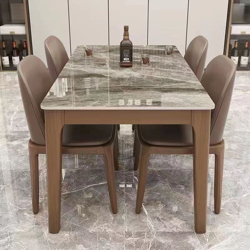 이탈리아 암판 식탁 및 의자 조합 현대 식탁 홈 풀 솔리드 우드 작은 아파트 가벼운 럭셔리 직사각형 서양 음식 테이블