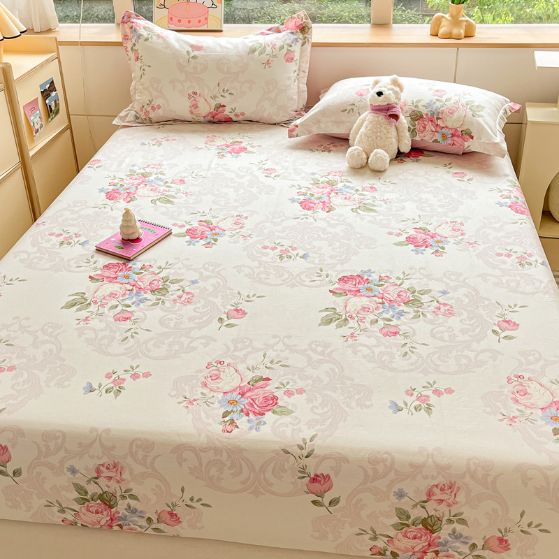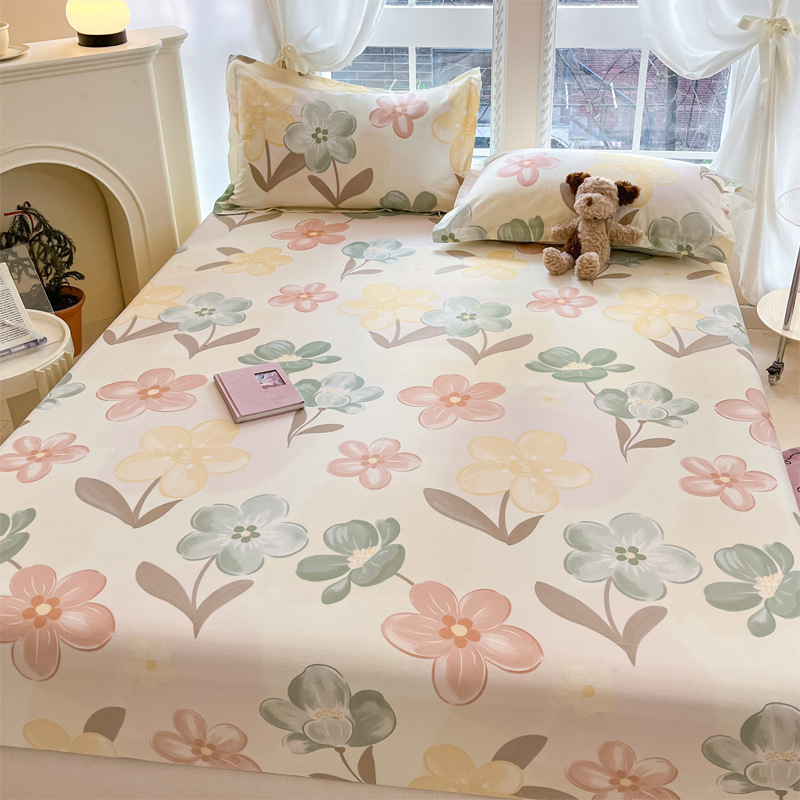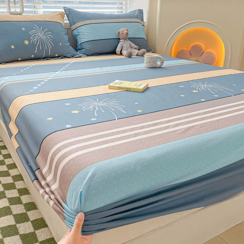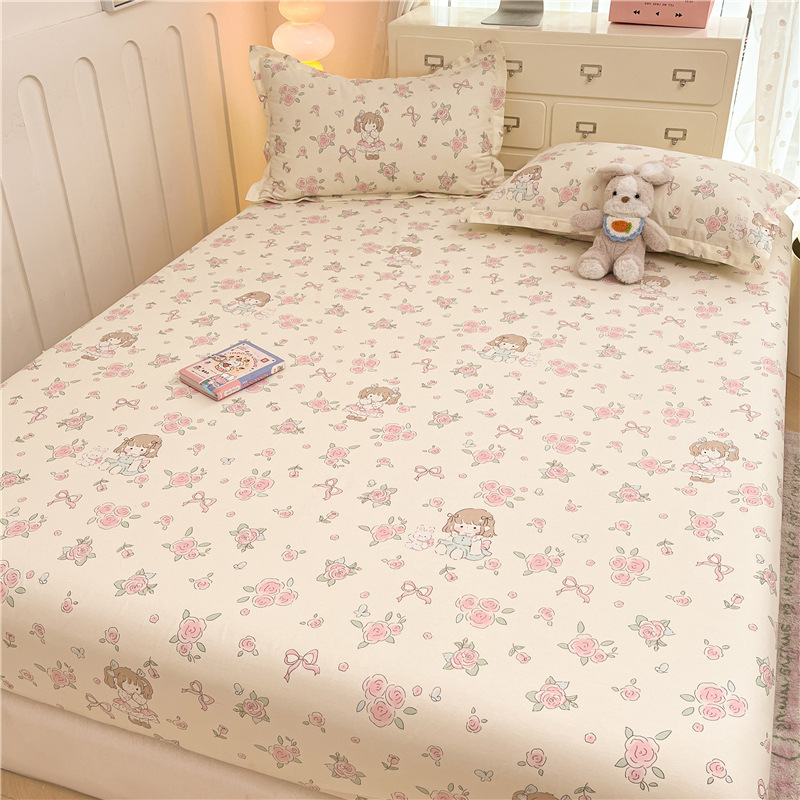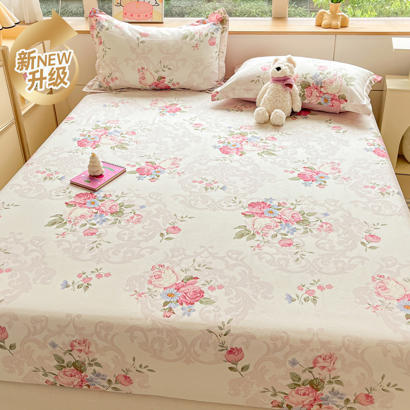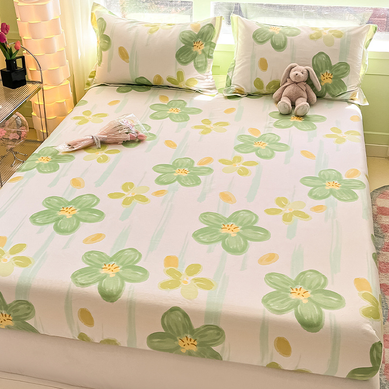 두꺼운 면 100 면 침대 모자 싱글 피스 침대보 매트리스 커버 미끄럼 방지 1 인용 침대 시트 베개 케이스 3 피스 세트