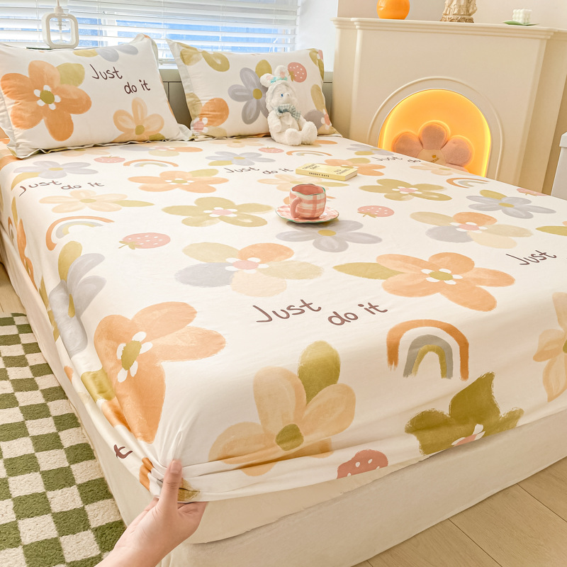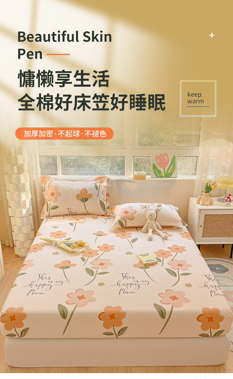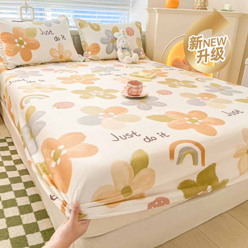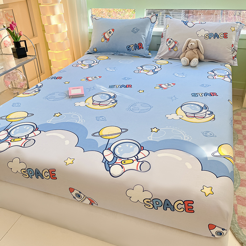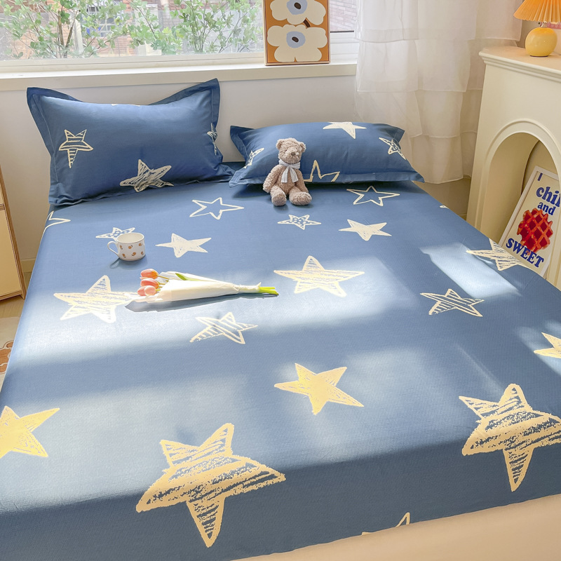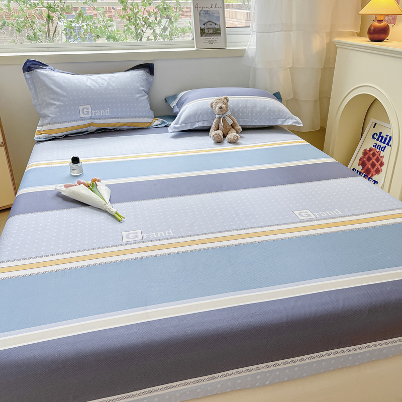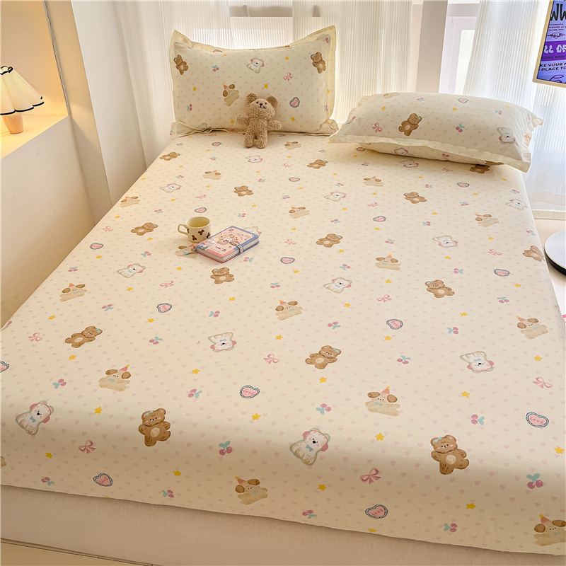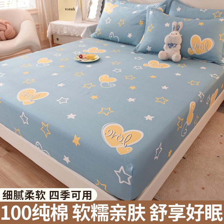 두꺼운 면 100 면 침대 모자 싱글 피스 침대보 매트리스 커버 미끄럼 방지 1 인용 침대 시트 베개 케이스 3 피스 세트스토어 가기