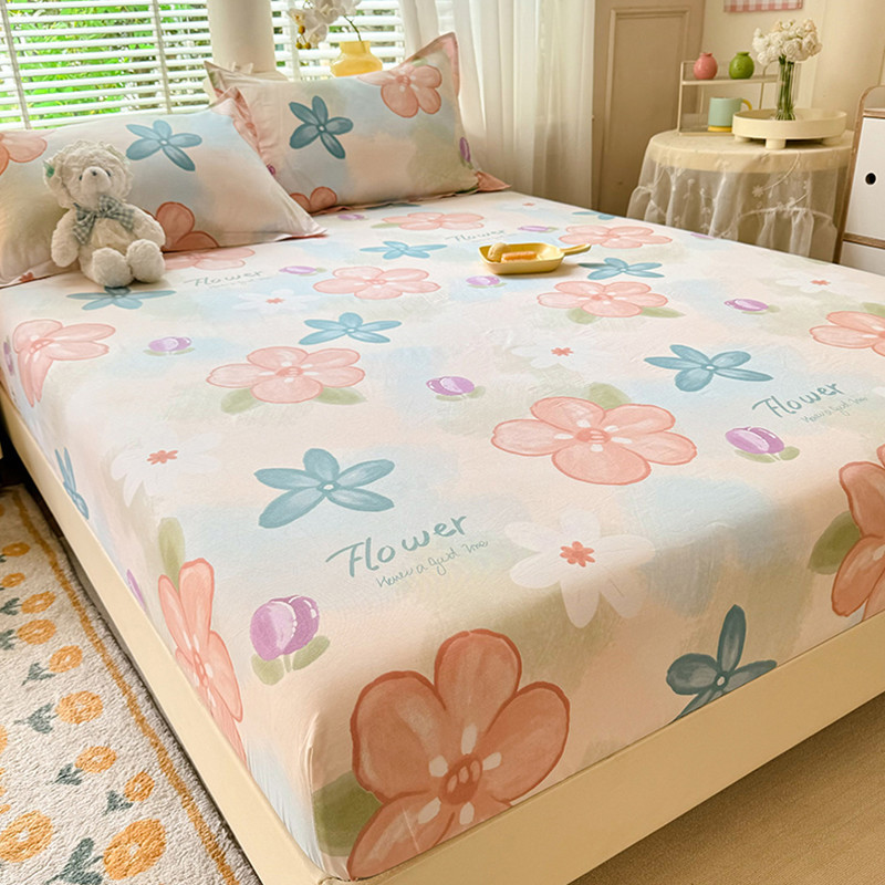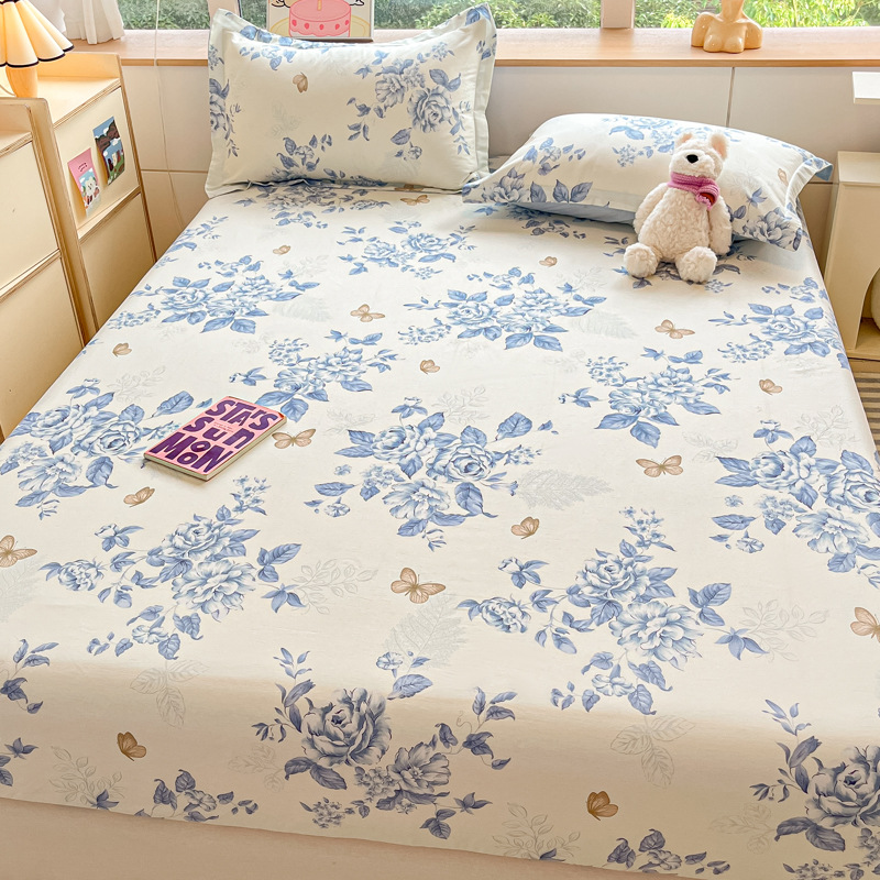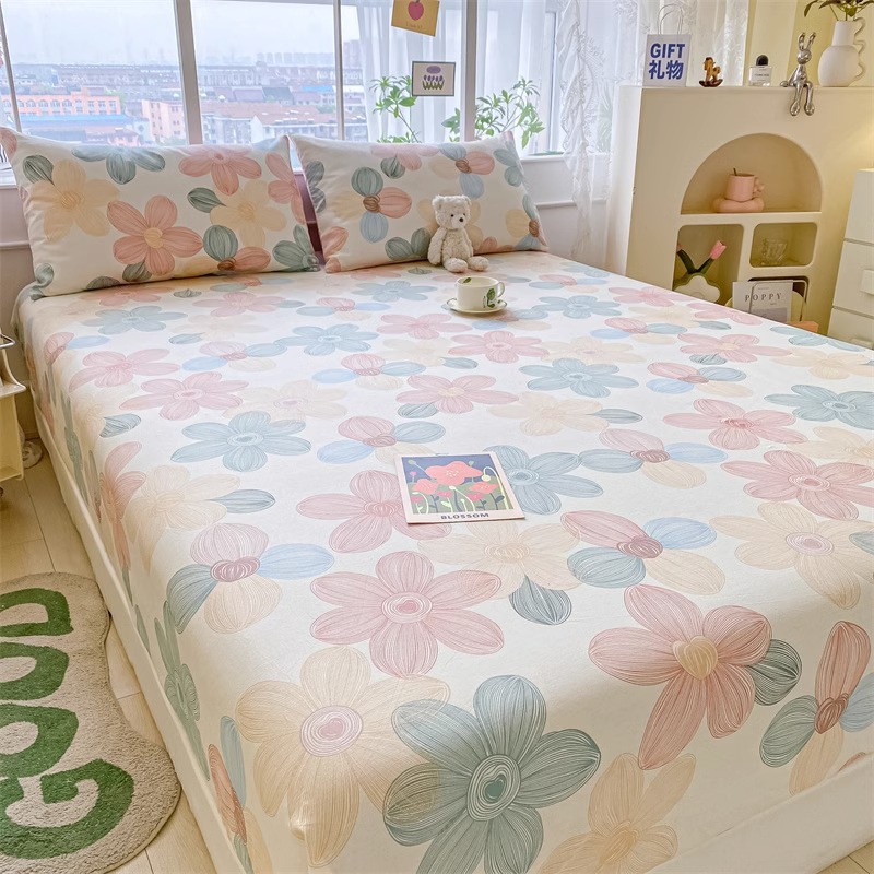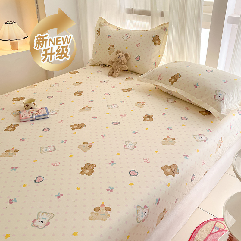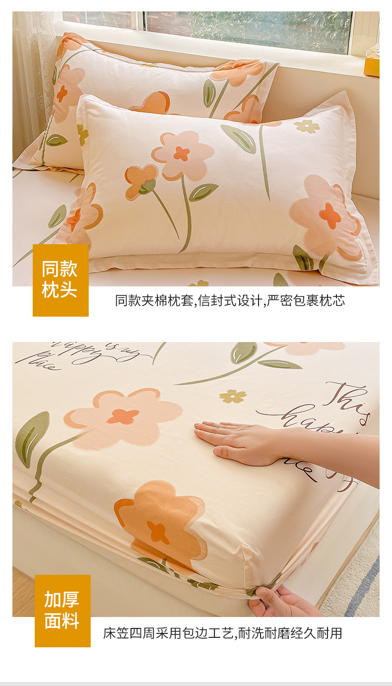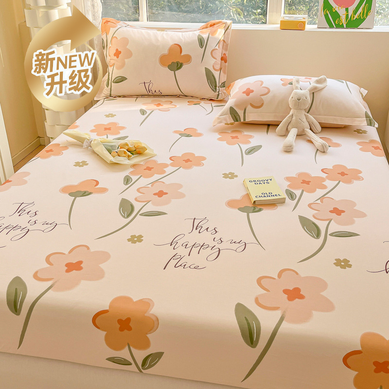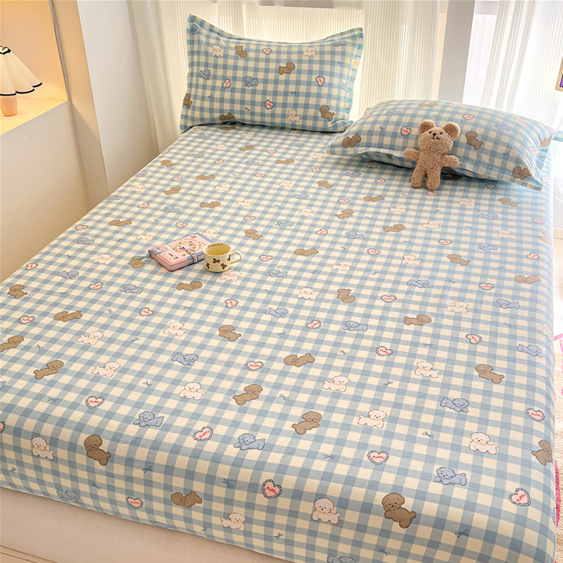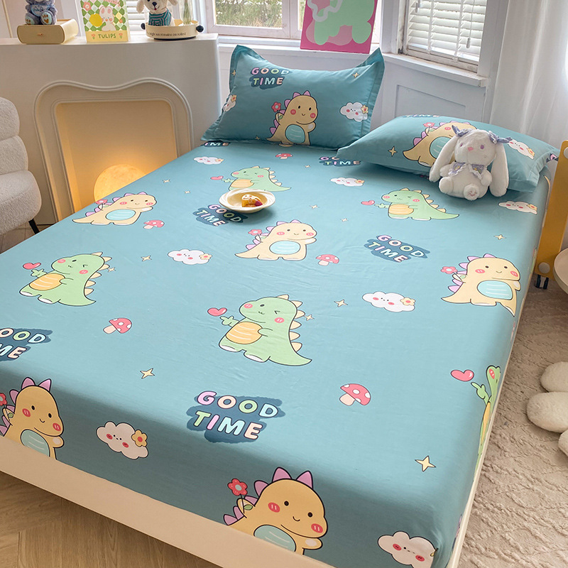 두꺼운 면 100 면 침대 모자 싱글 피스 침대보 매트리스 커버 미끄럼 방지 1 인용 침대 시트 베개 케이스 3 피스 세트스토어 가기