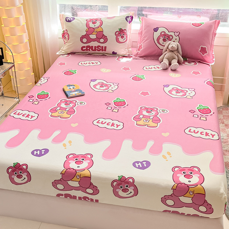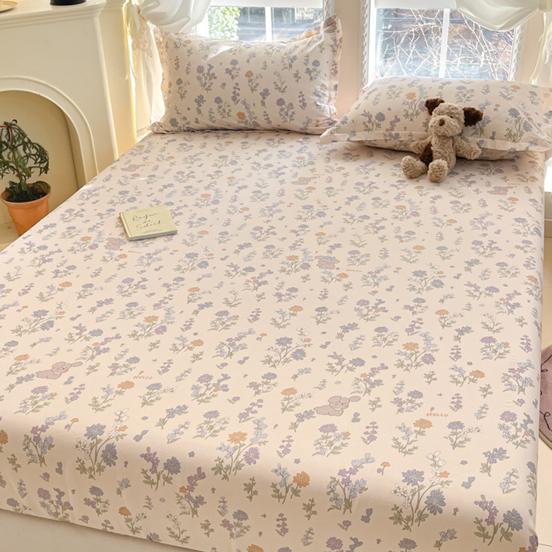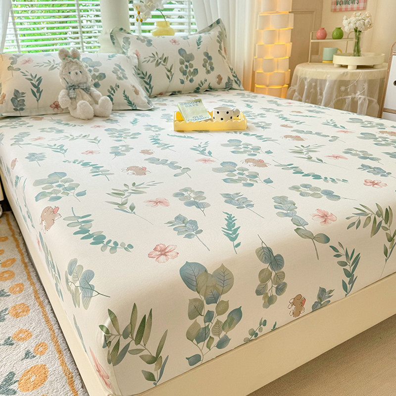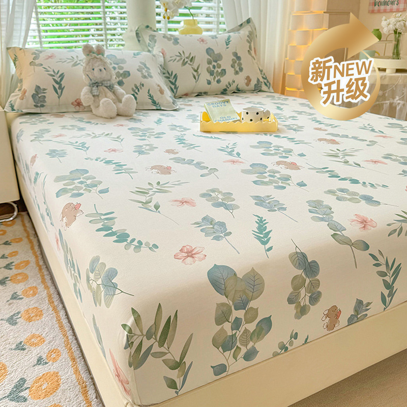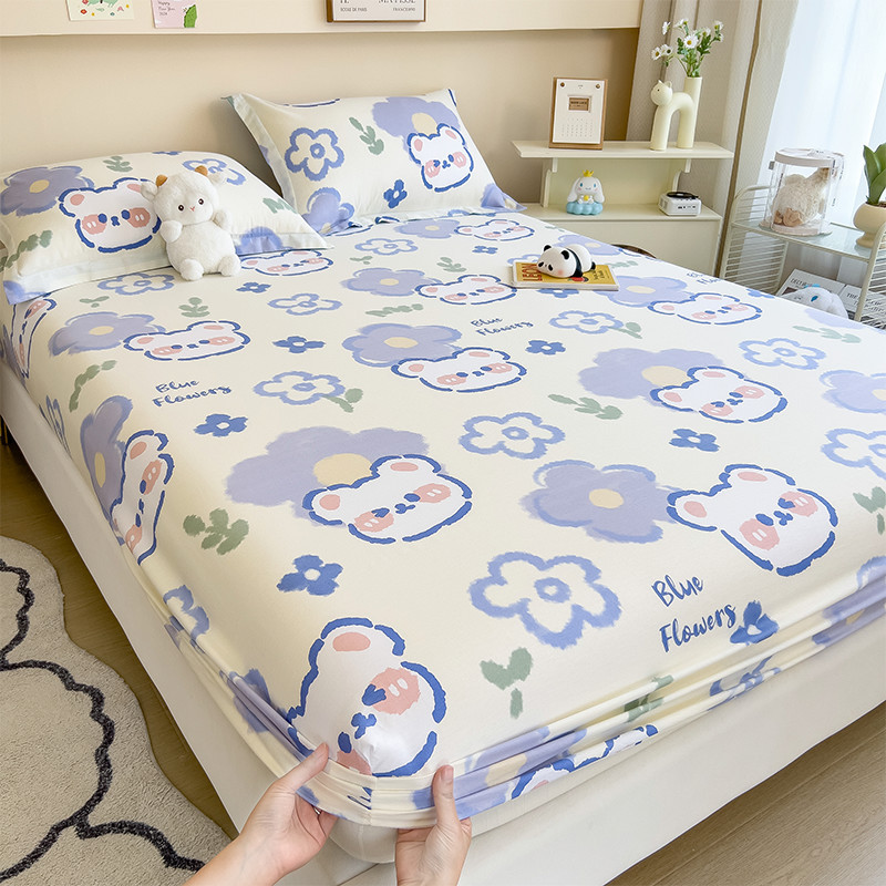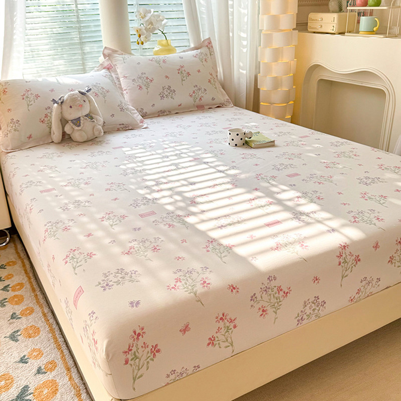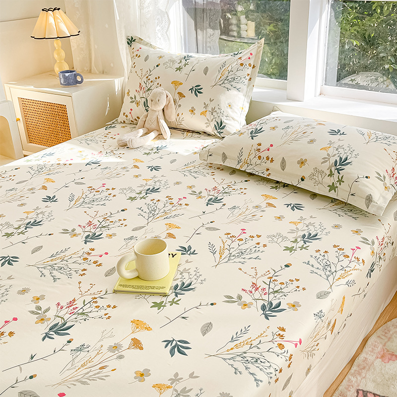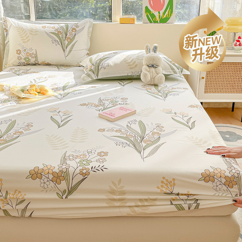 두꺼운 면 100 면 침대 모자 싱글 피스 침대보 매트리스 커버 미끄럼 방지 1 인용 침대 시트 베개 케이스 3 피스 세트스토어 가기