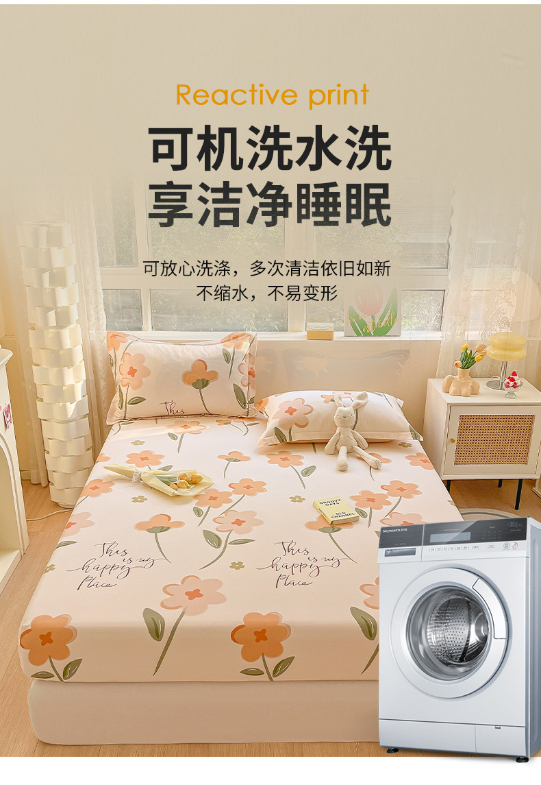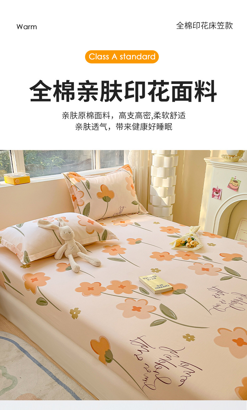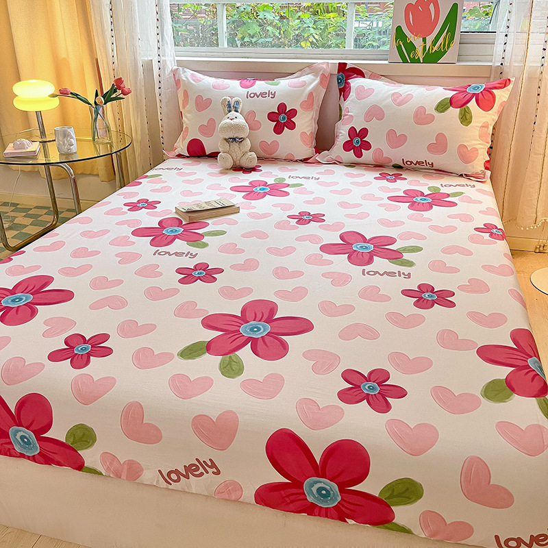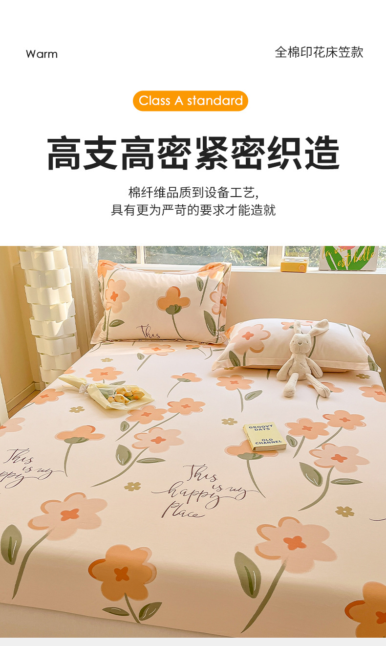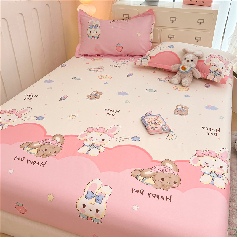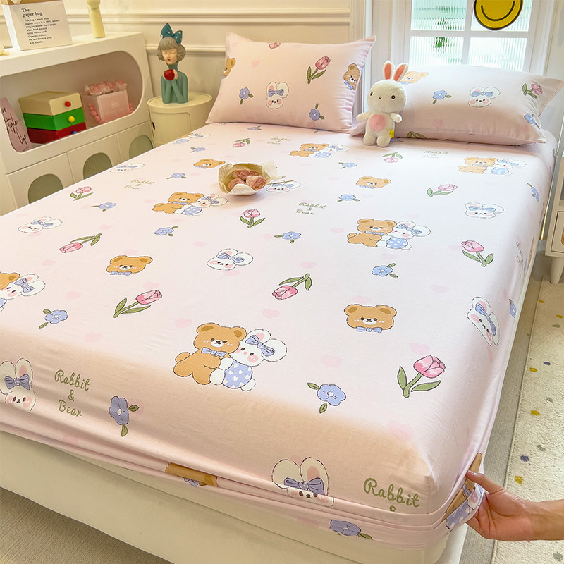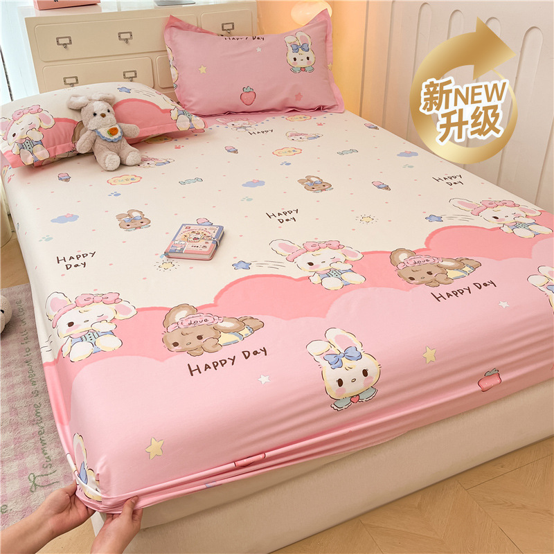두꺼운 면 100 면 침대 모자 싱글 피스 침대보 매트리스 커버 미끄럼 방지 1 인용 침대 시트 베개 케이스 3 피스 세트스토어 가기