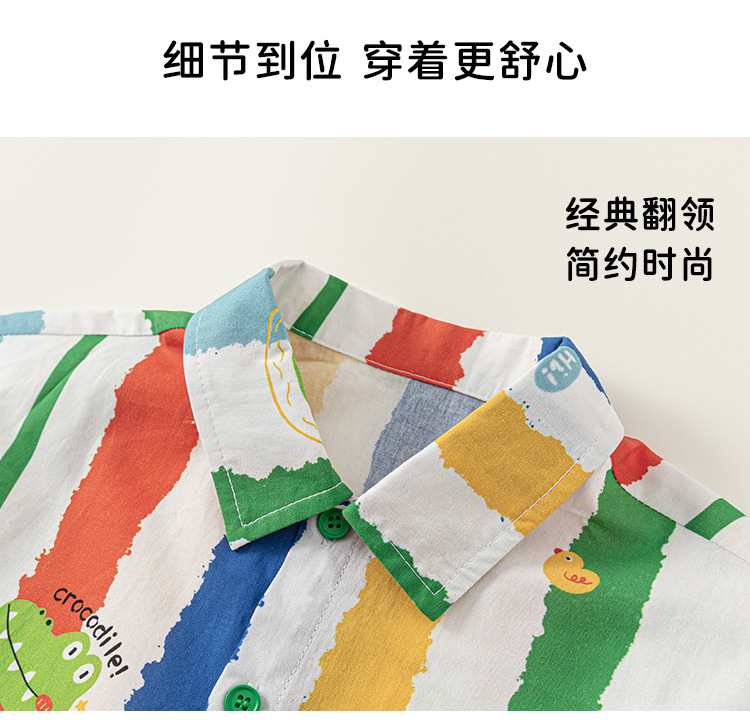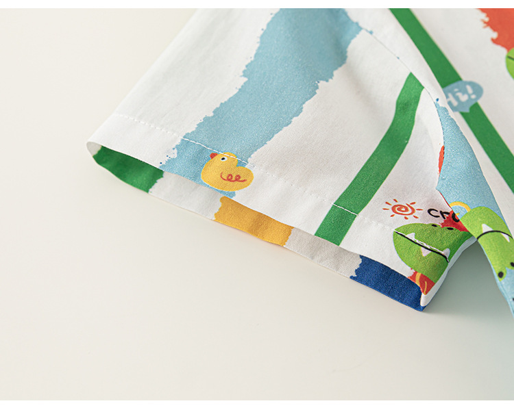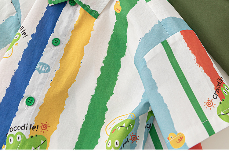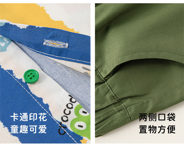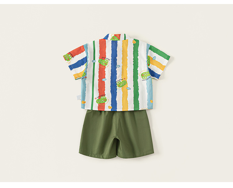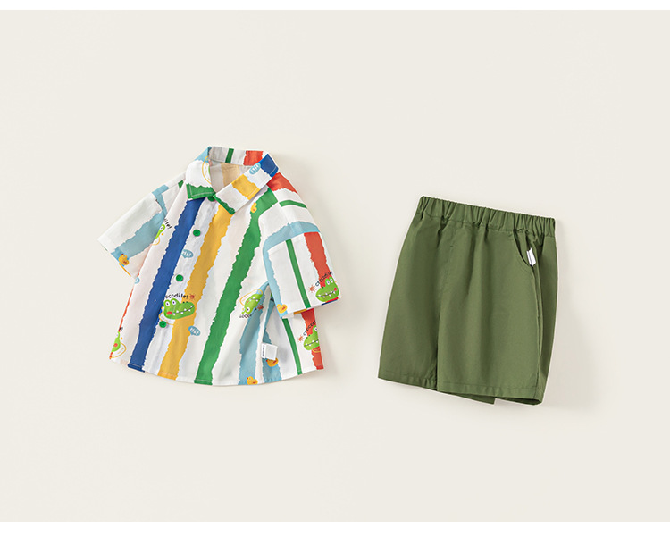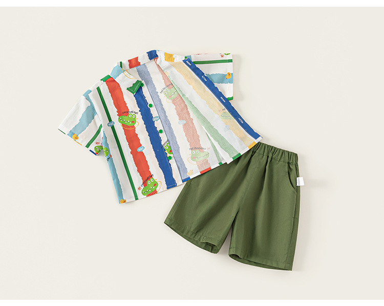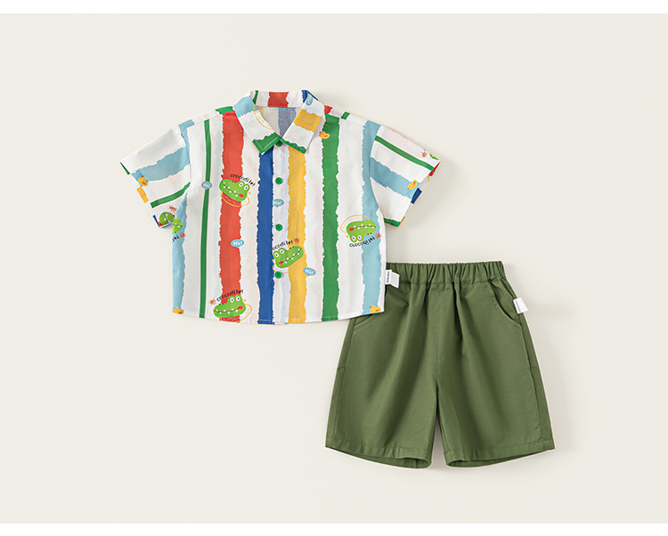 유바오 아동복 캐주얼 릴 만화 프린트 셔츠 단색 캐주얼 반바지 2 개 세트 소년 여름 세트