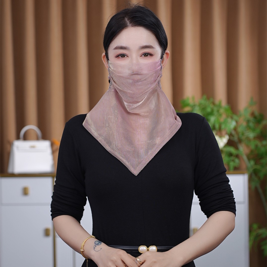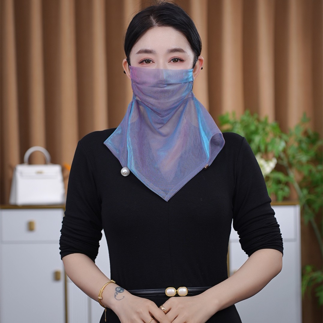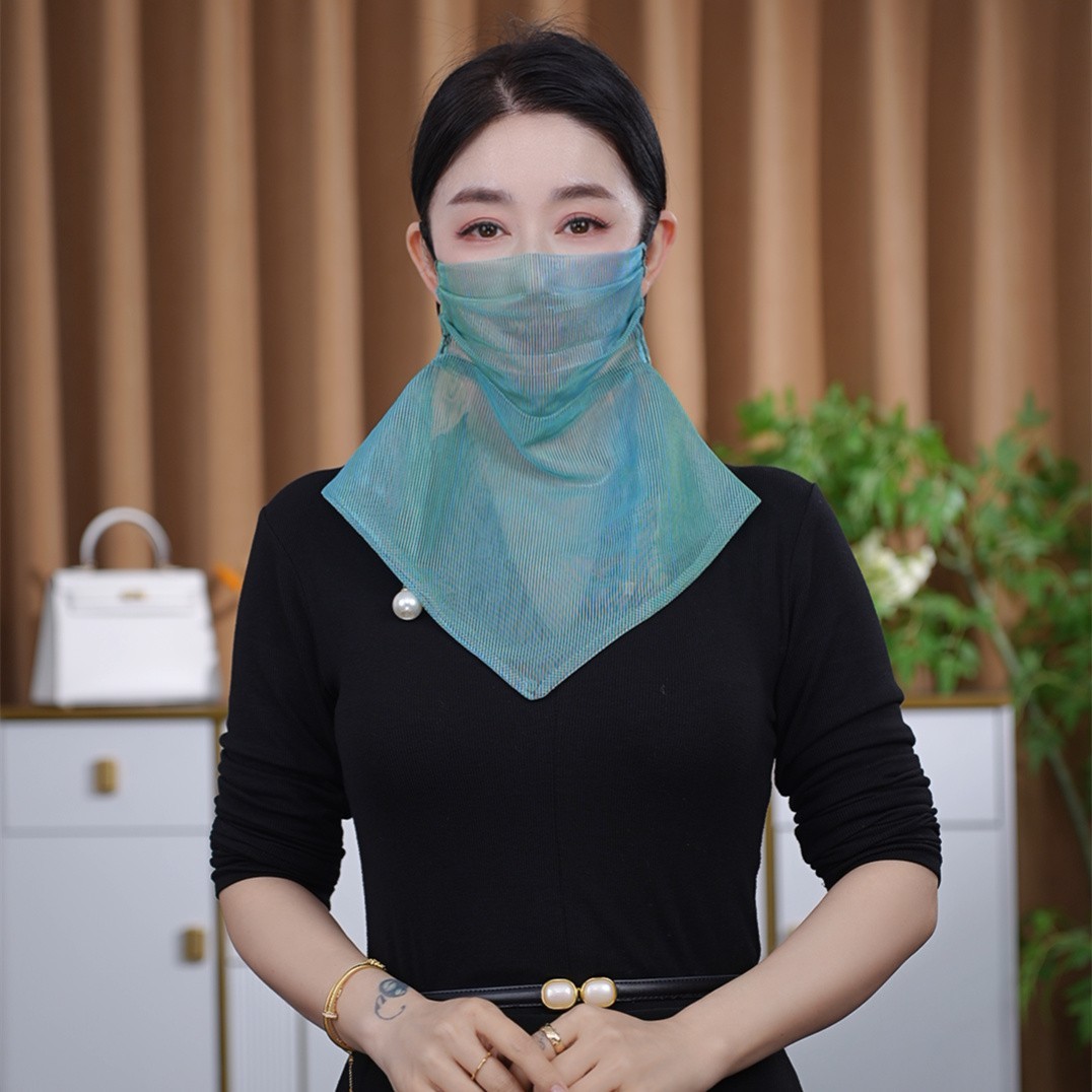 한국 스타일 새로운 여름 선 스크린 베일 다채로운 교수형 구슬 다기능 스카프 실크 스카프 다채로운 커버 베일
