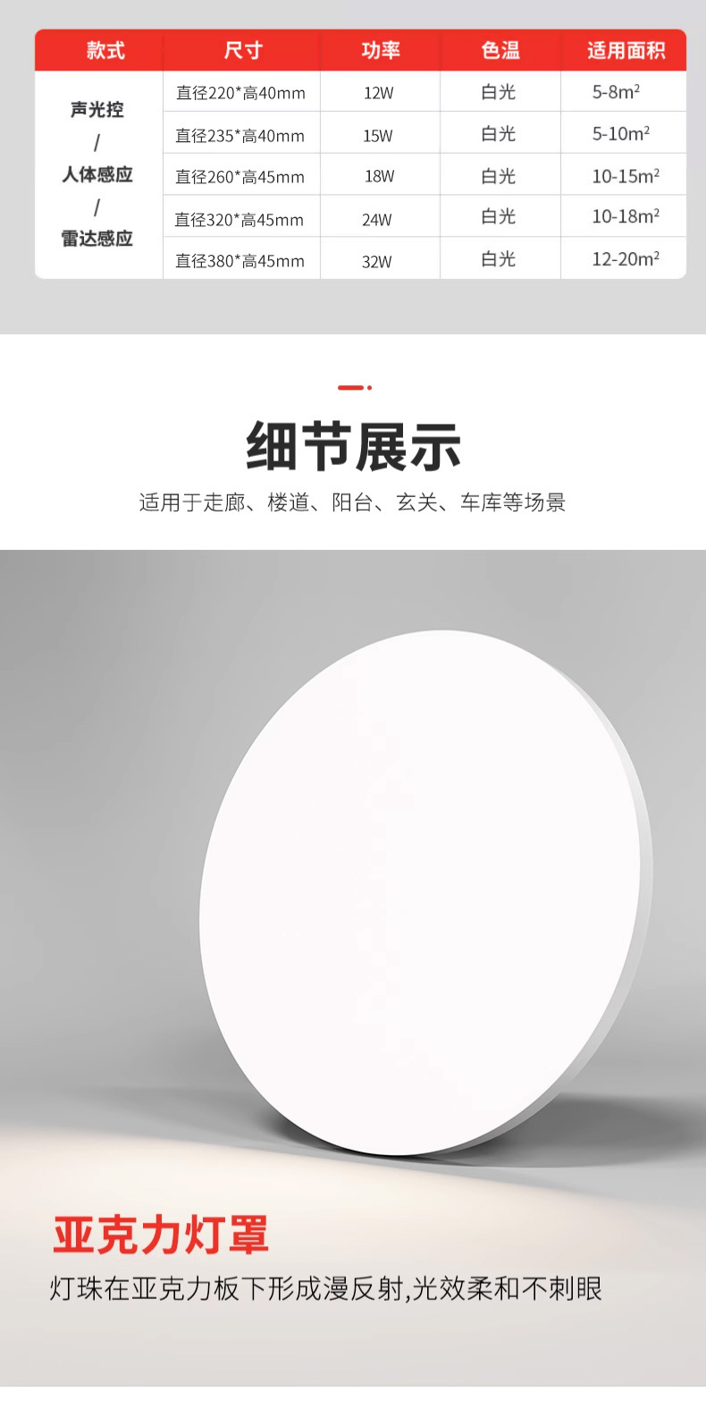 • 음성 제어 센서 [24W 백색광] 직경 32cm