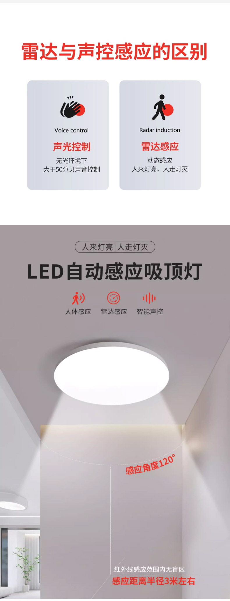 유도 천장 빛 복도 음향 제어 복도 계단 홈 지능형 레이더 적외선 자동 인체 음향 제어 빛
