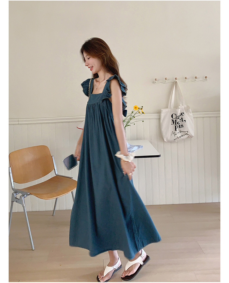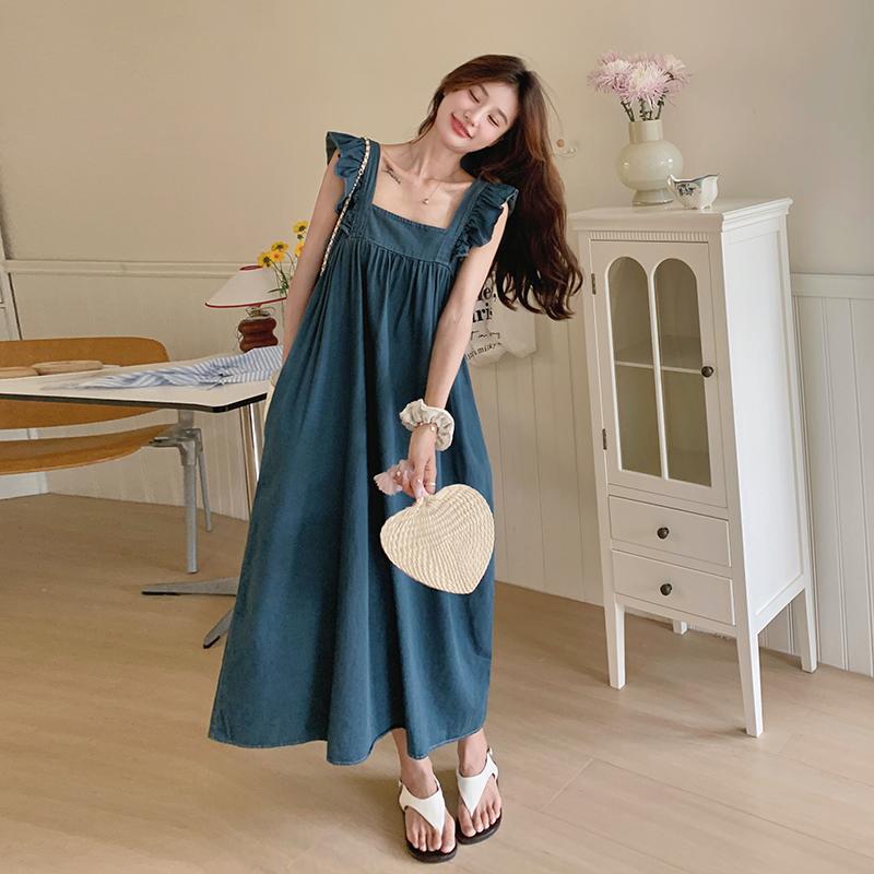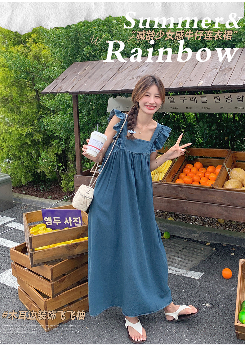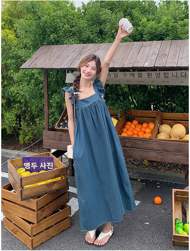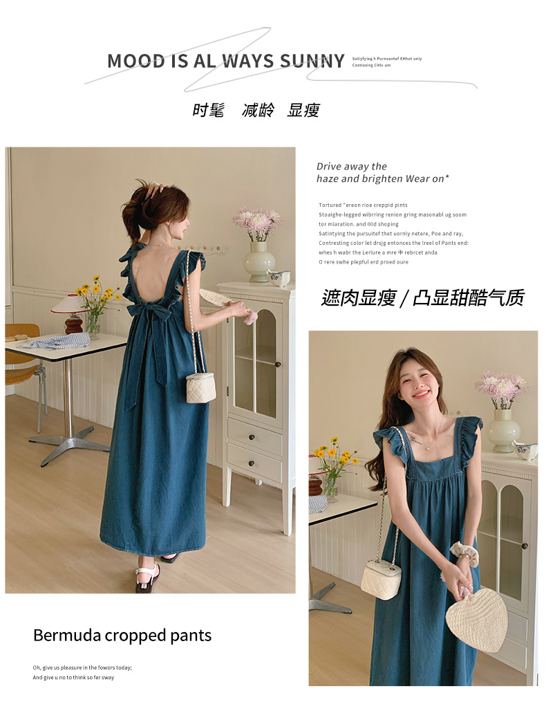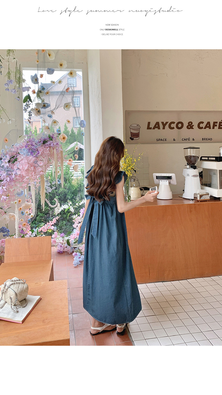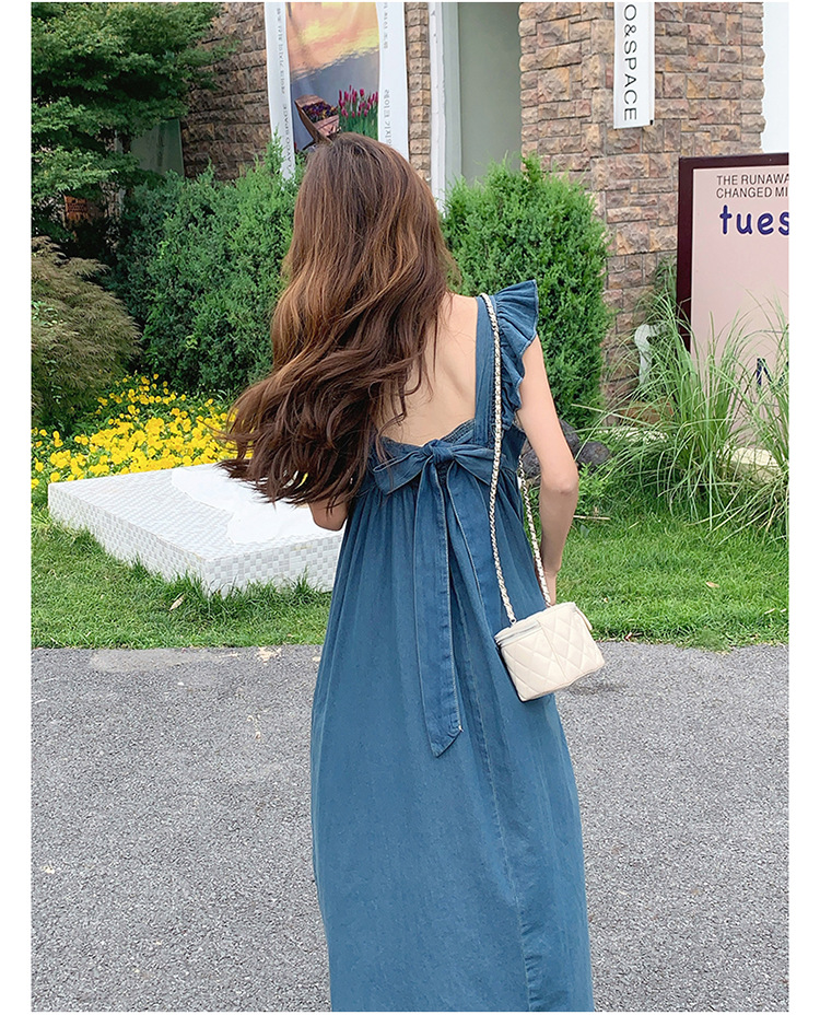리얼 샷 프렌치 스트랩 민소매 백리스 데님 원피스 여성 하이 엔드 2025 새로운 여름 얇은 조끼 스커트스토어 가기