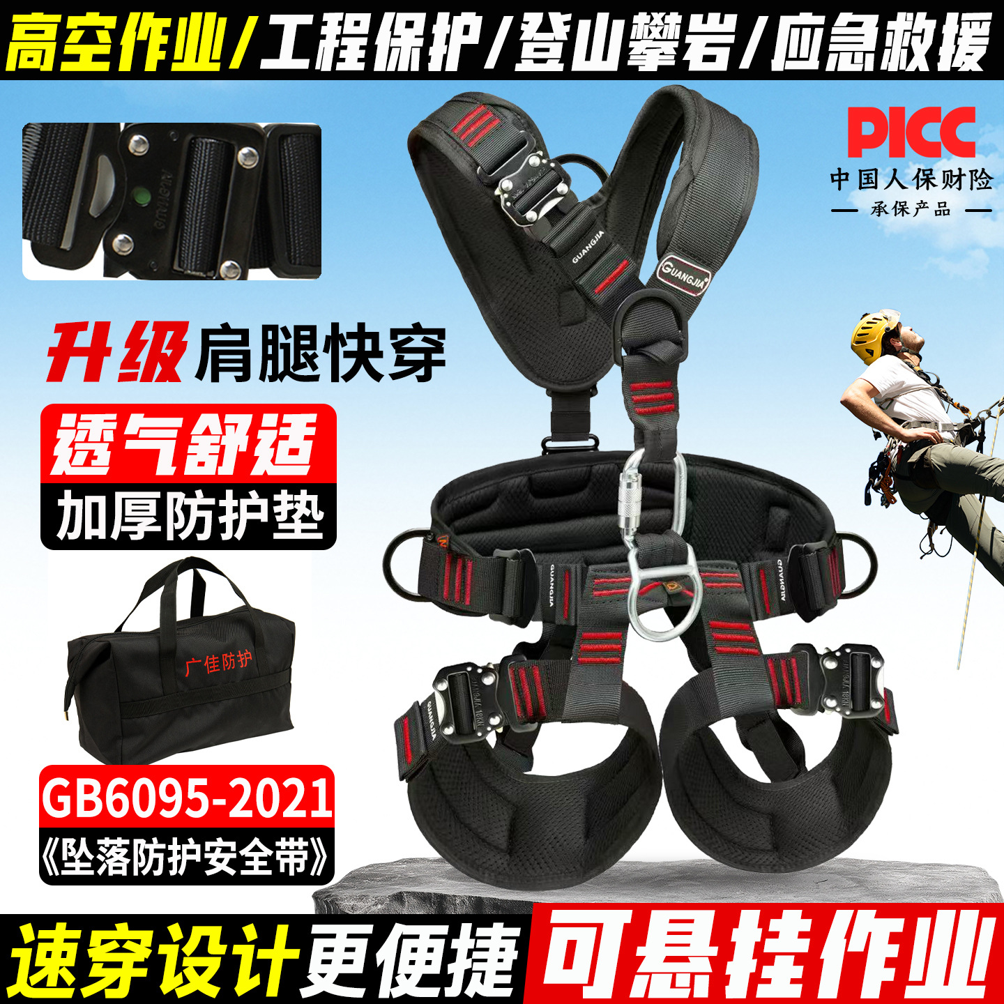 • 암벽등반 안전벨트 + 가슴 리프트 [어깨와 다리의 퀵웨어]
