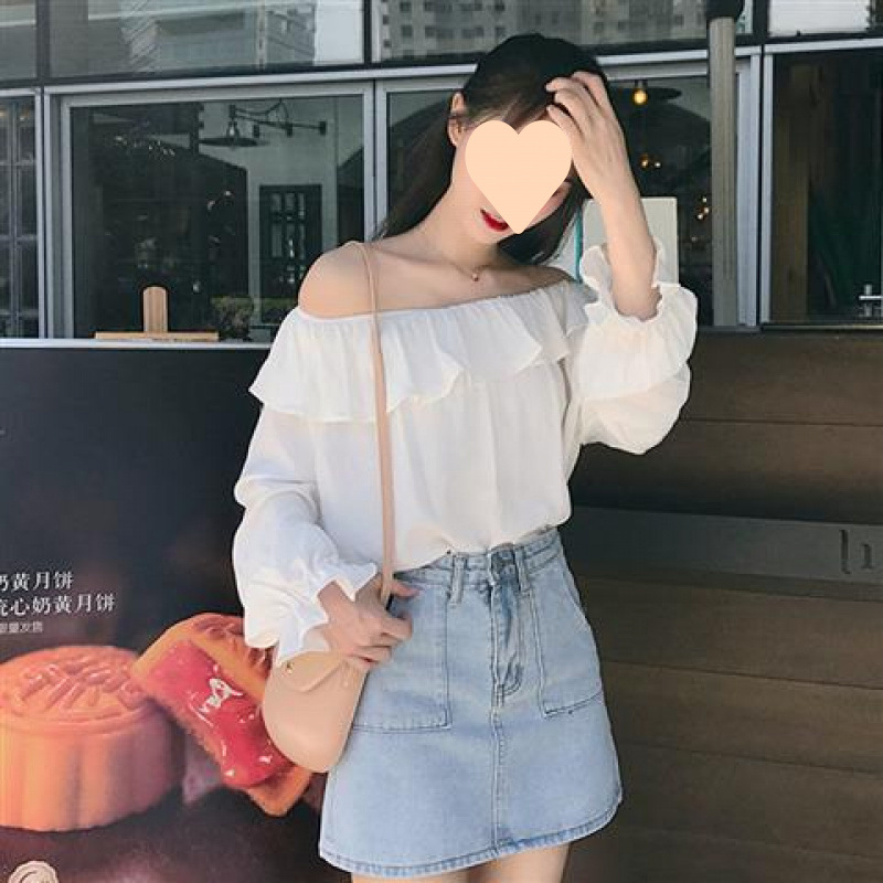 여학생을 위한 요정상의, 여름 셔츠, 원라인 칼라, 달콤한 벨 슬리브, 여성용 상큼한 화이트 오프숄더 쉬폰 셔츠스토어 가기