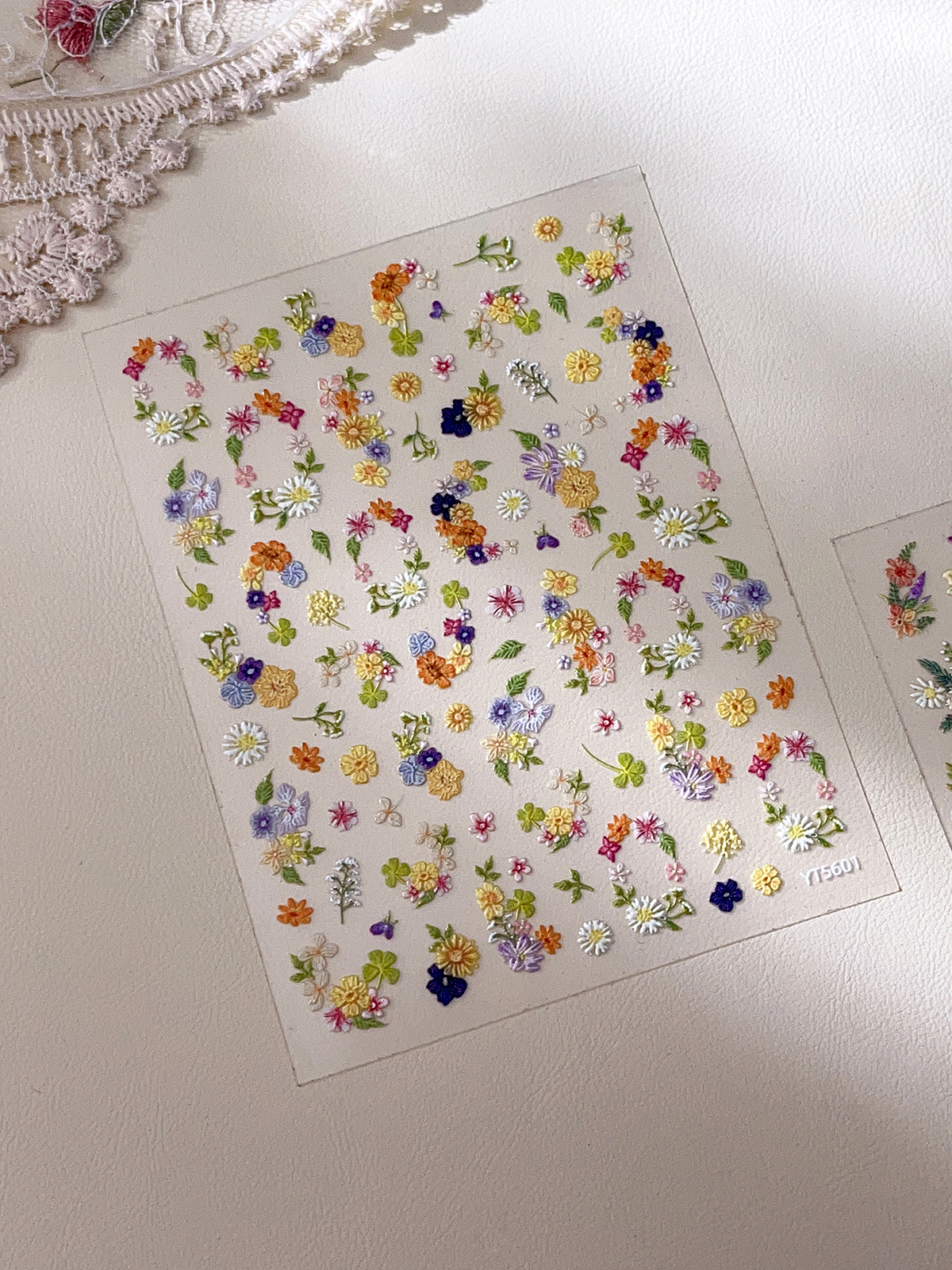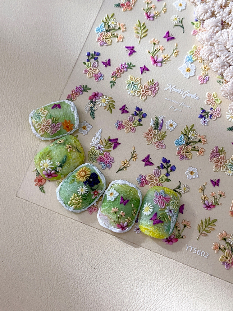 YITU 개미 그림 양각 모네 정원 네일 아트 스티커 다채로운 귀여운 꽃 달콤한 장식 스티커 YT5601스토어 가기