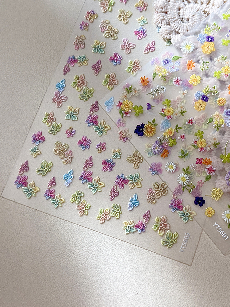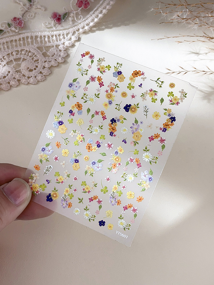 YITU 개미 그림 양각 모네 정원 네일 아트 스티커 다채로운 귀여운 꽃 달콤한 장식 스티커 YT5601