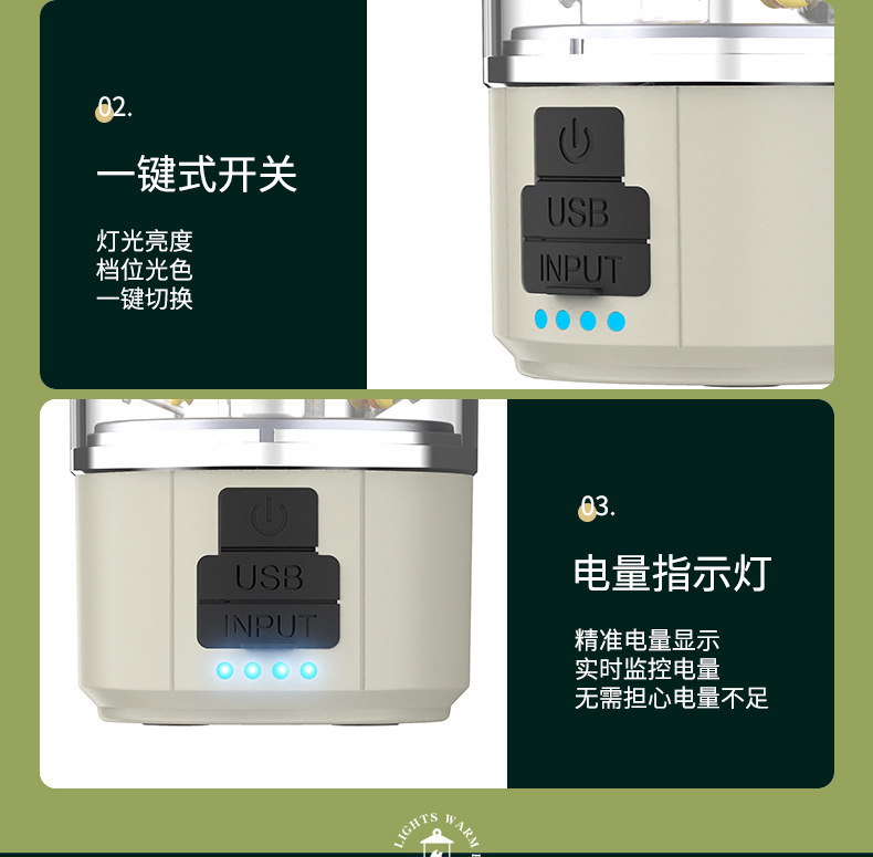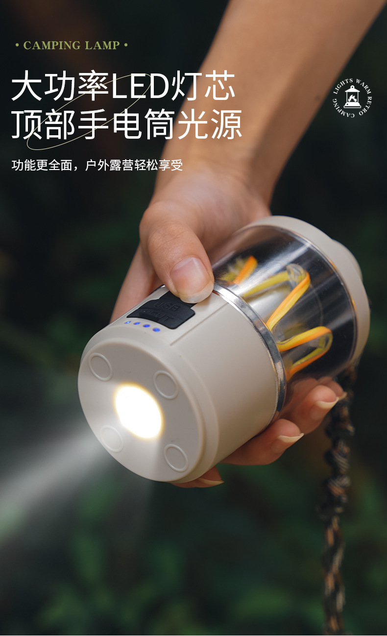새로운 다기능 무단계 디밍 LED 충전식 캠핑 라이트 야외 캠핑 야간 낚시 휴대용 밝은 손전등