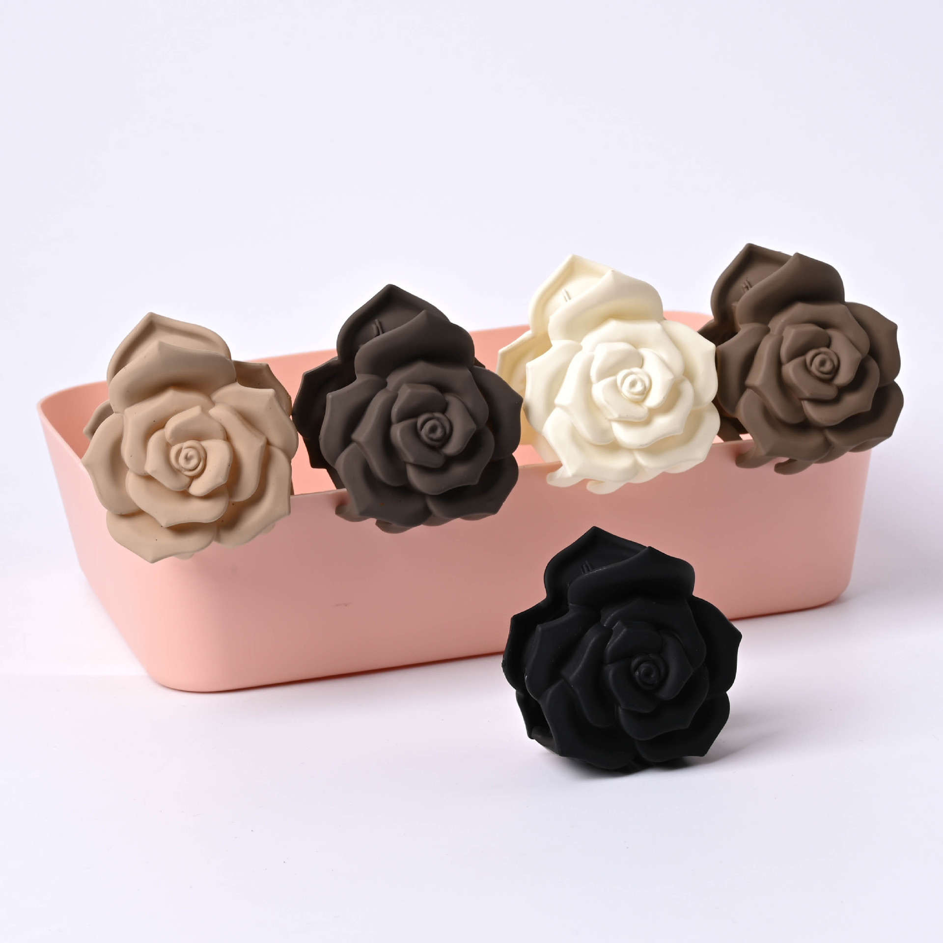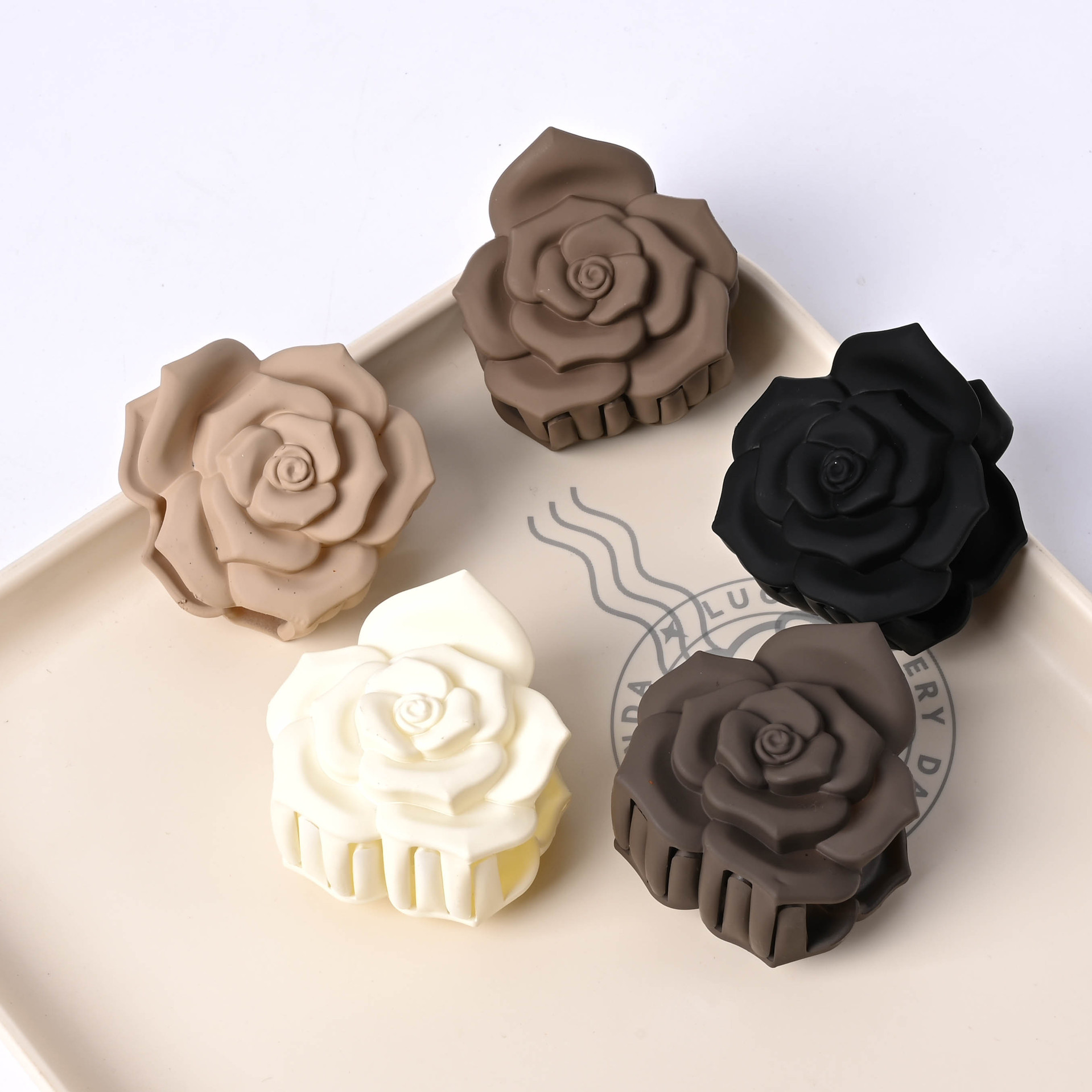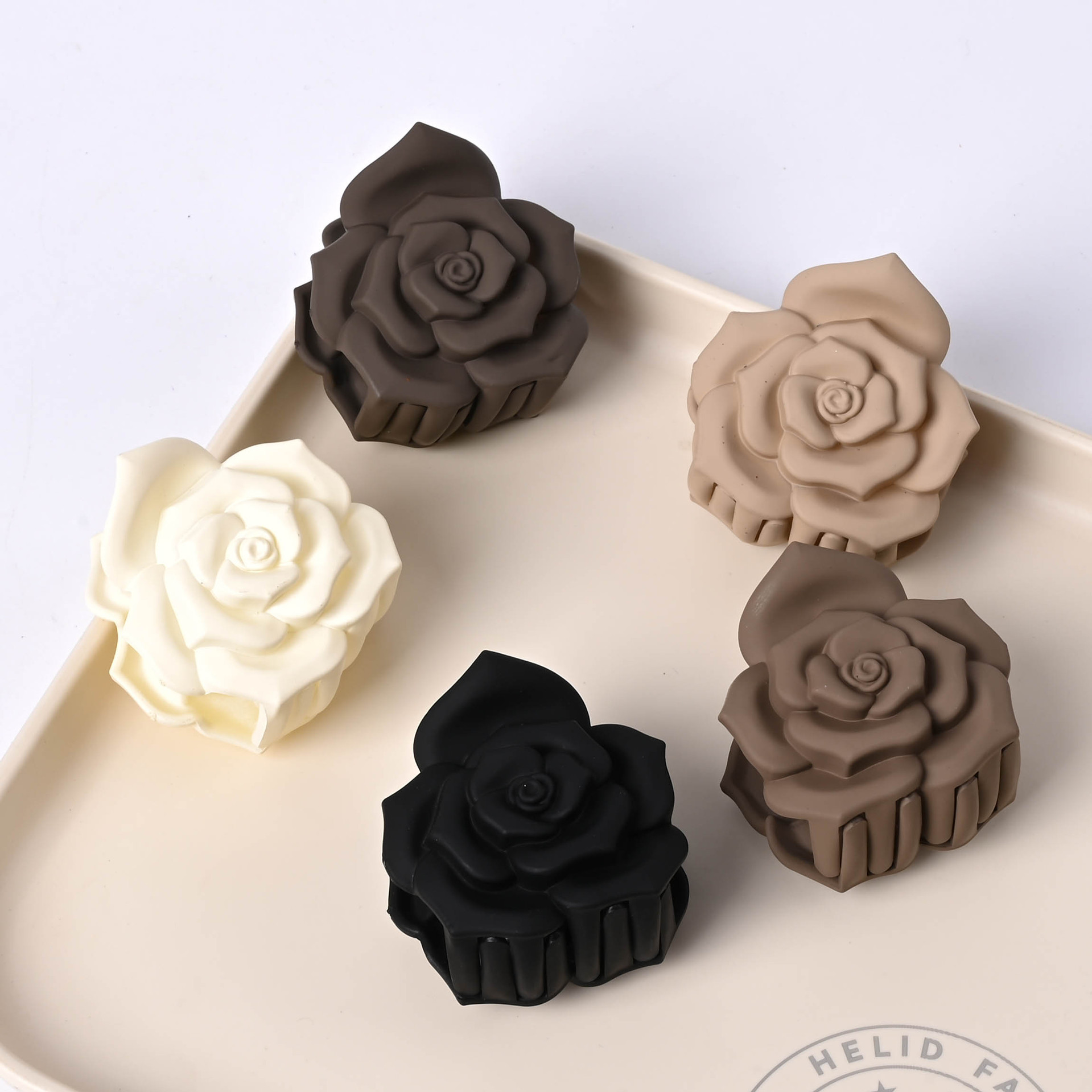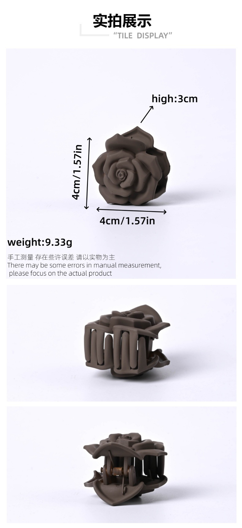 4cm 중간 3 차원 로즈 그랩 클립 새로운 간단한 단색 우유 카페 복고풍 패션 소녀 여름 하프 타이 클립