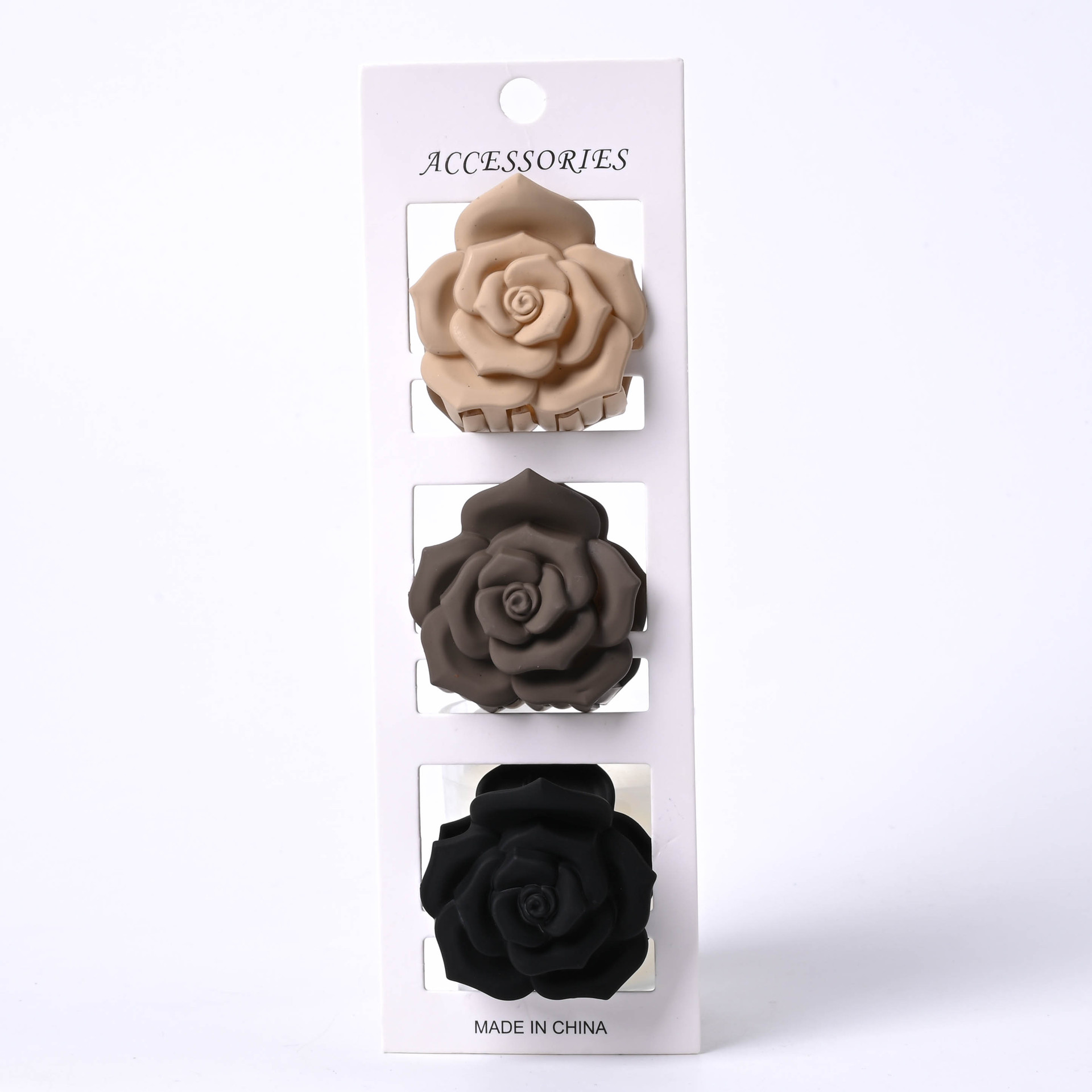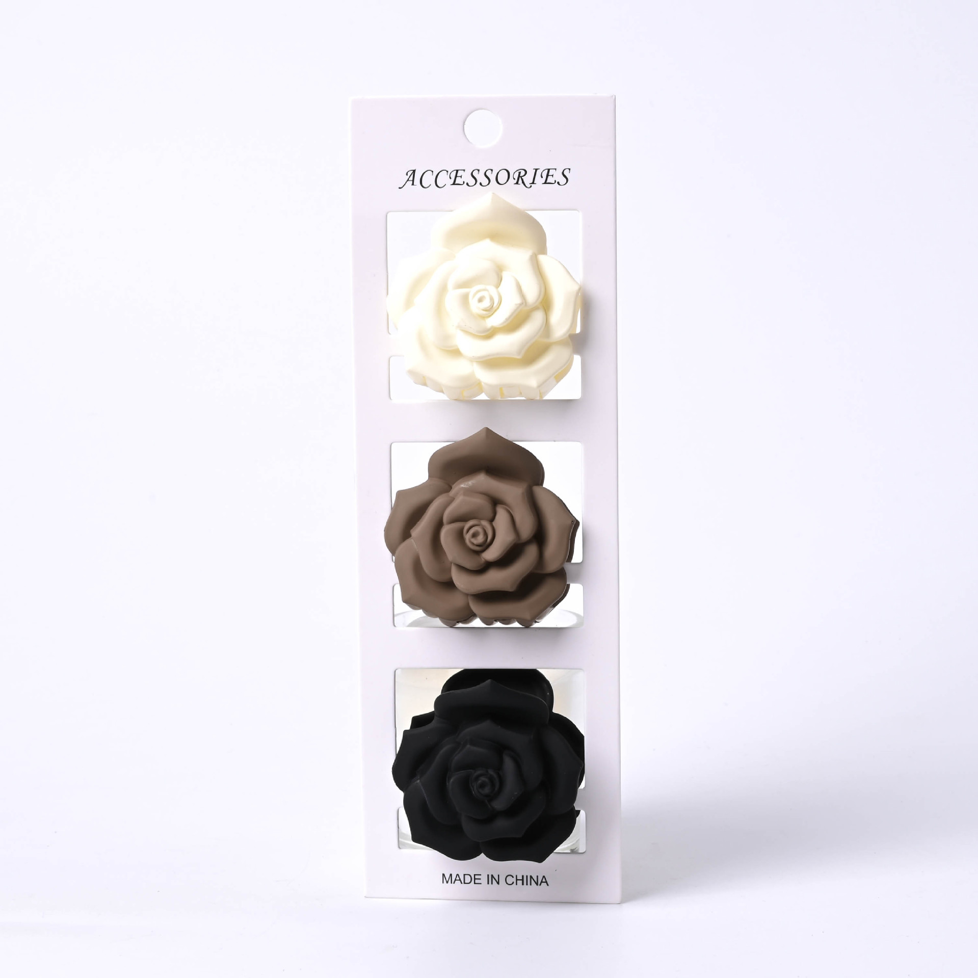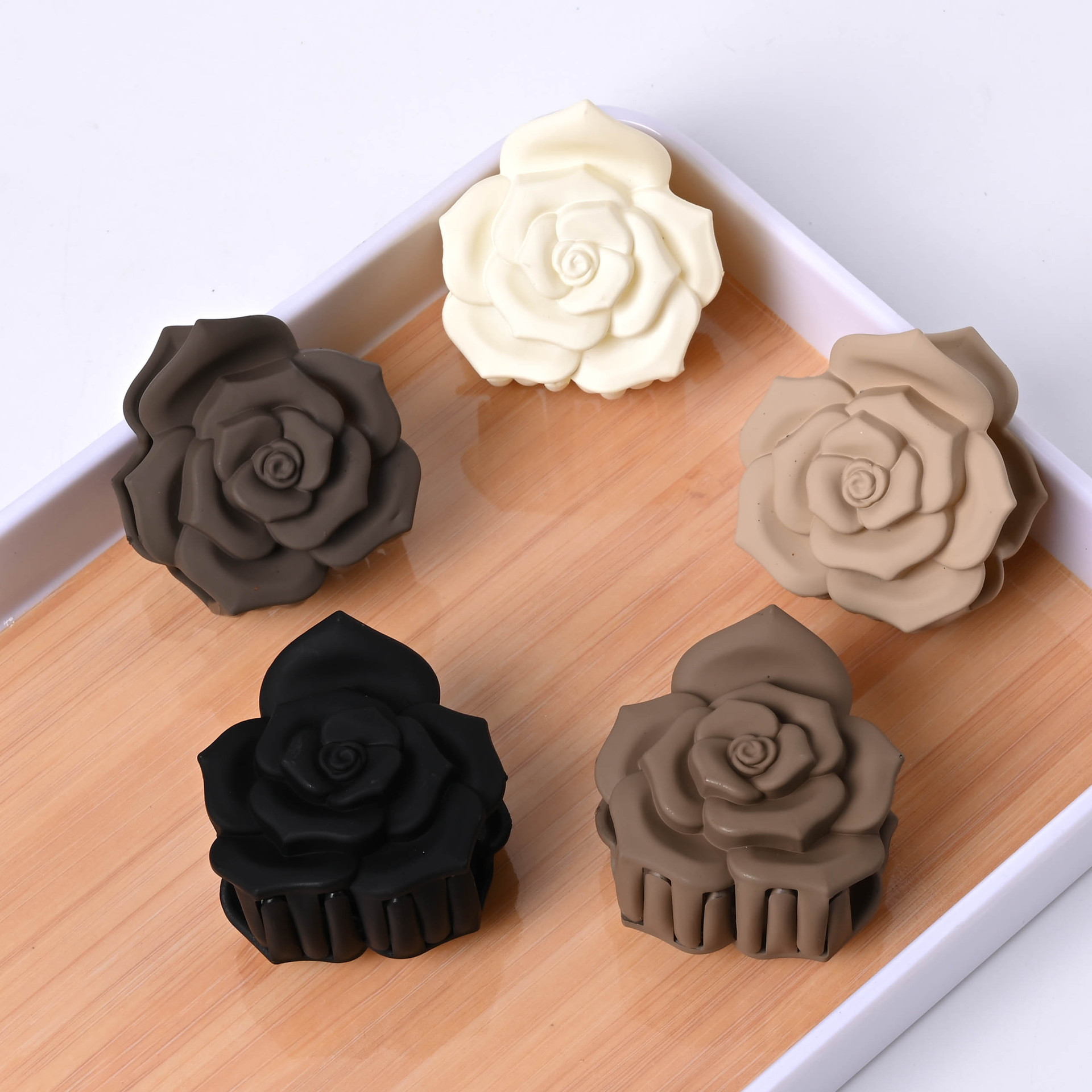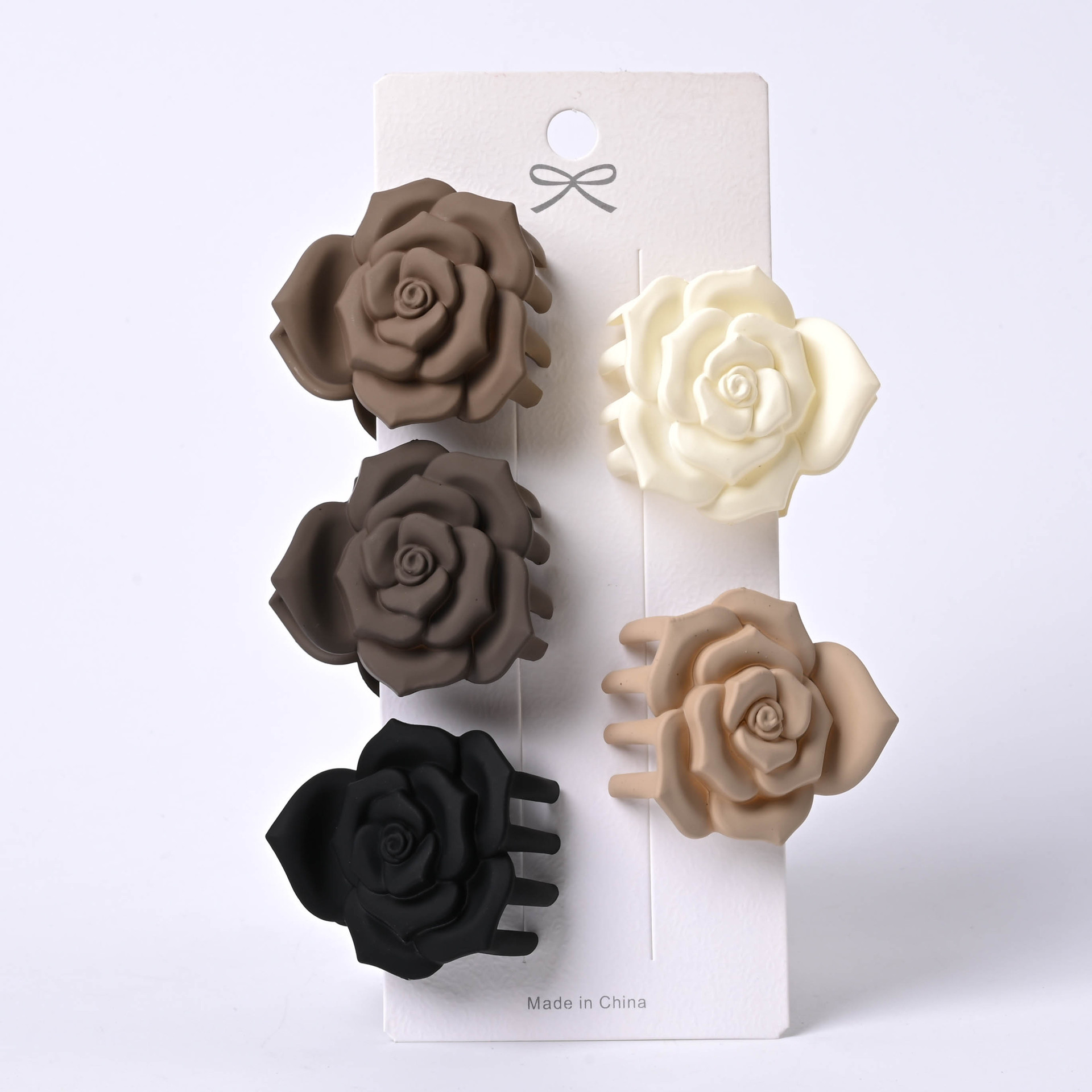 4cm 중간 3 차원 로즈 그랩 클립 새로운 간단한 단색 우유 카페 복고풍 패션 소녀 여름 하프 타이 클립
