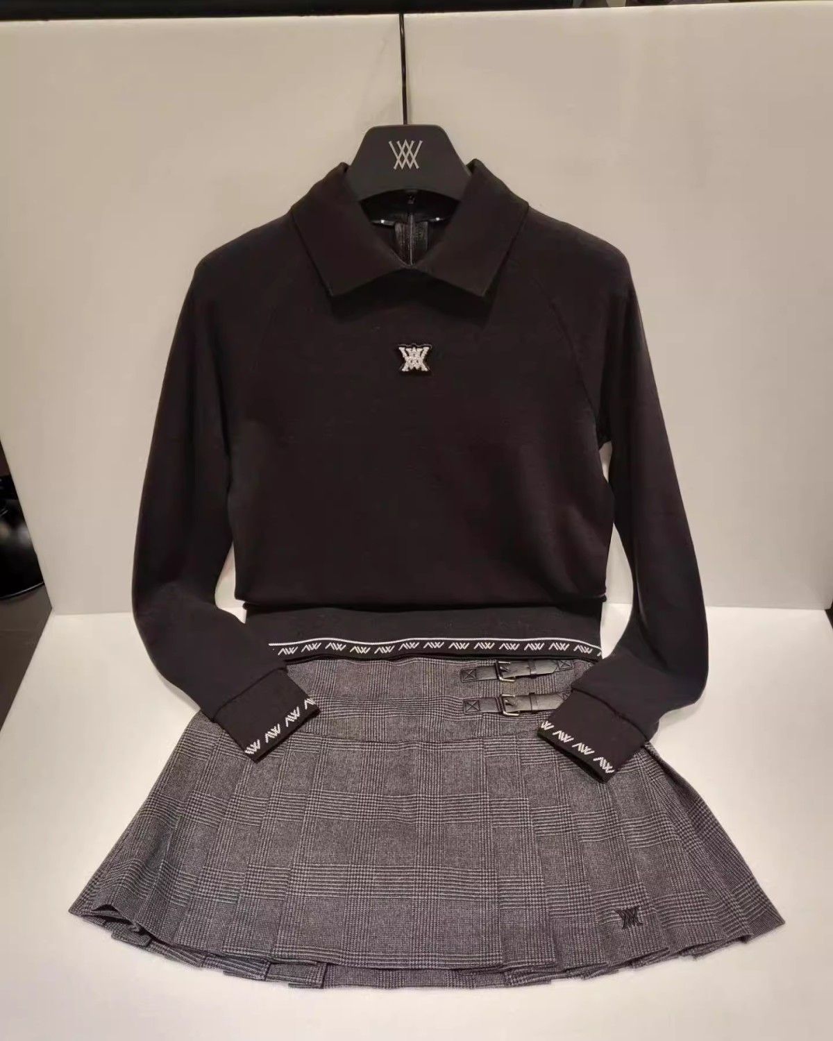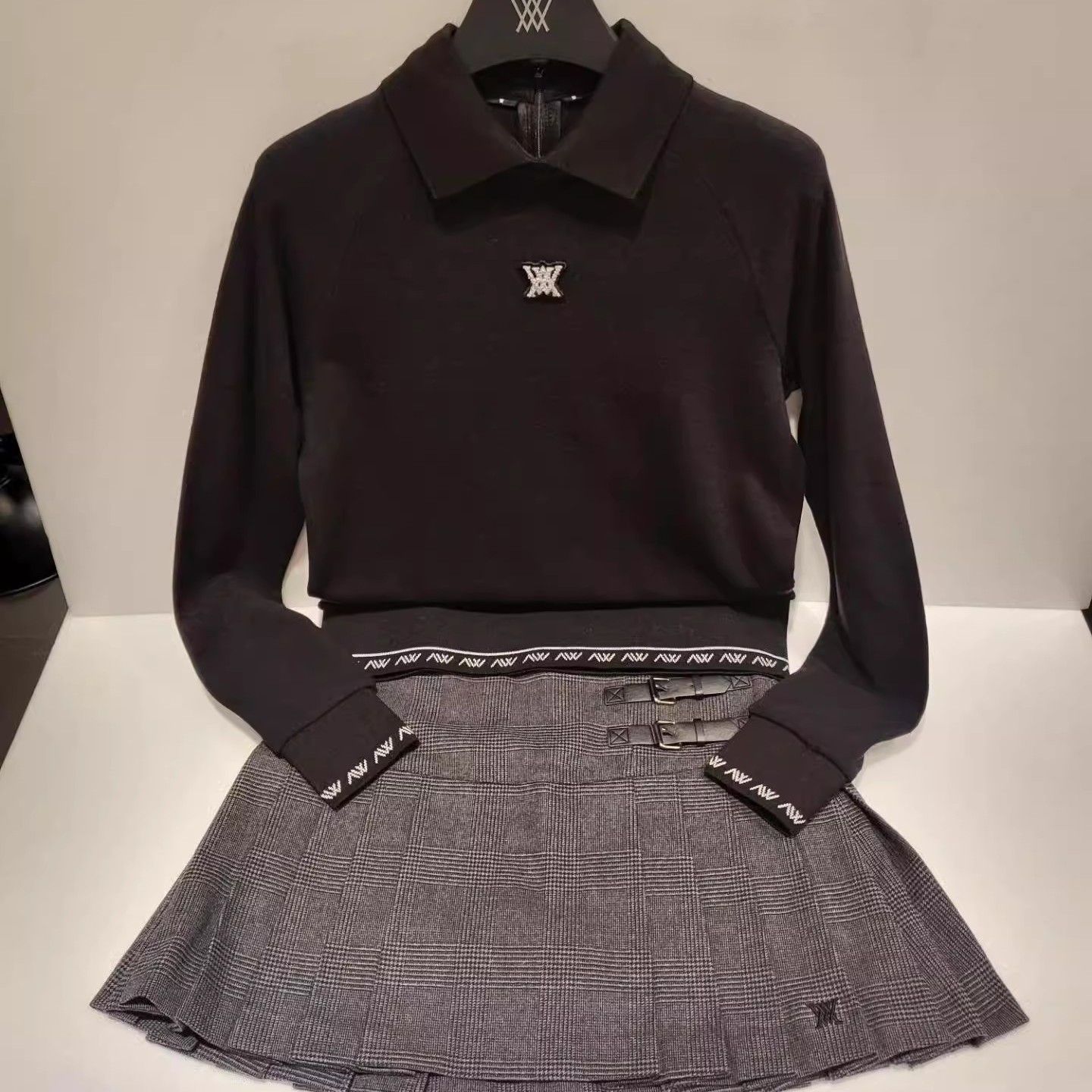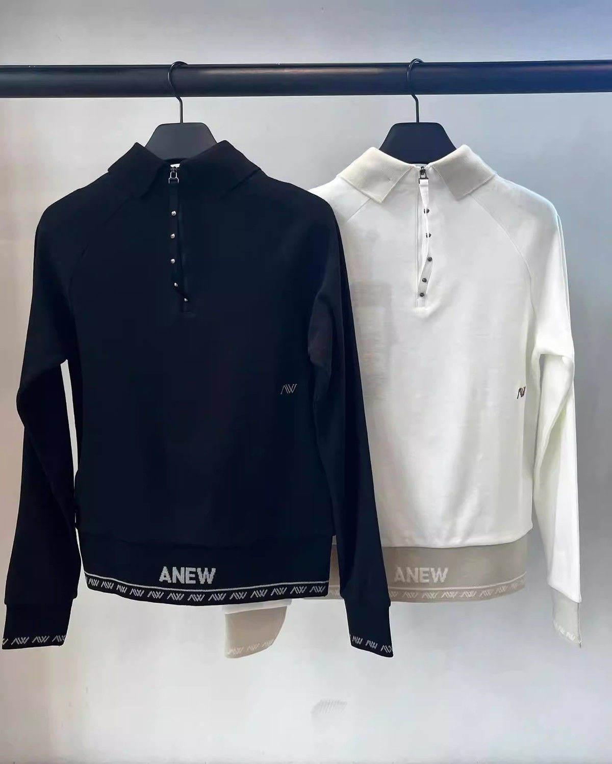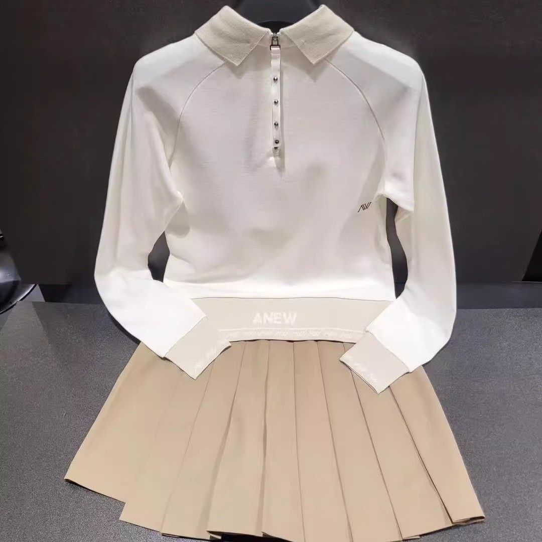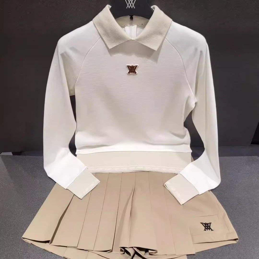 봄과 가을 새로운 한국 골프 여성 골프웨어 탑 GOIF 로고 라펠 후면 하프 지퍼 긴팔 스웨터