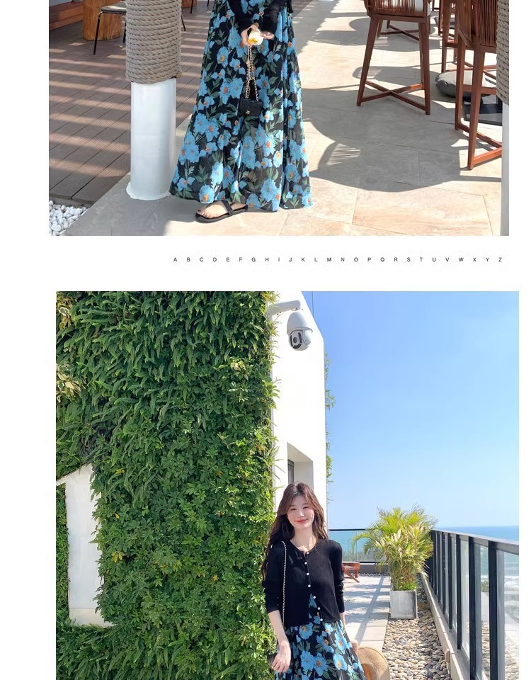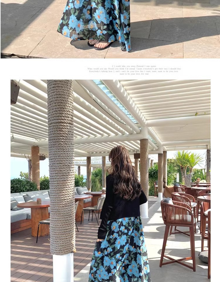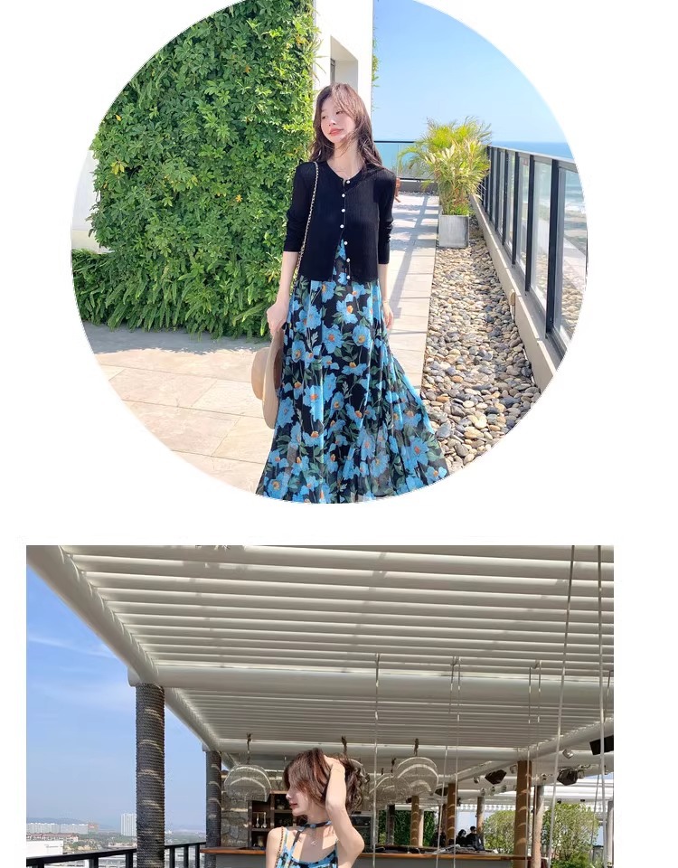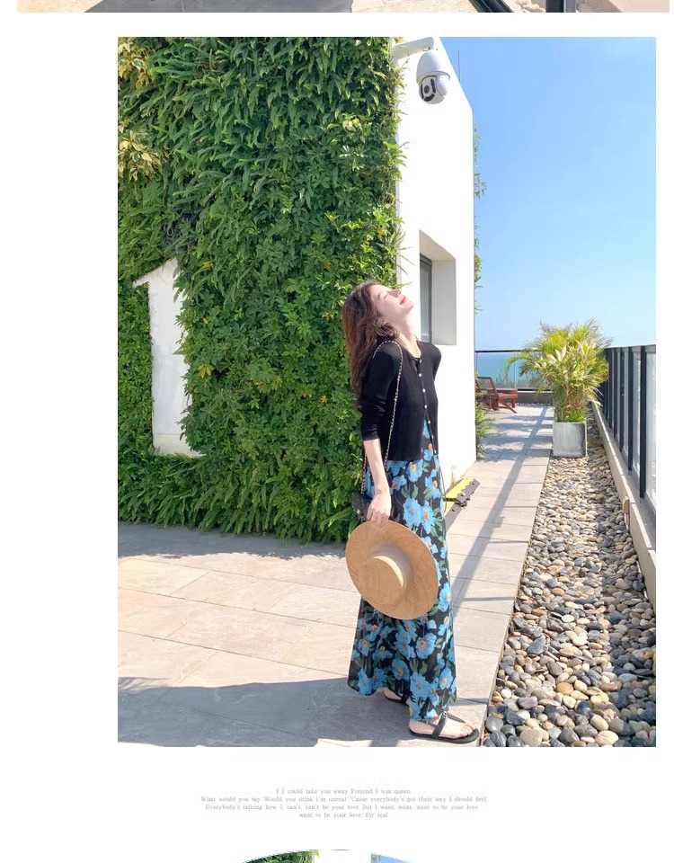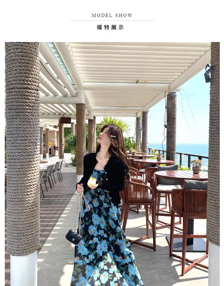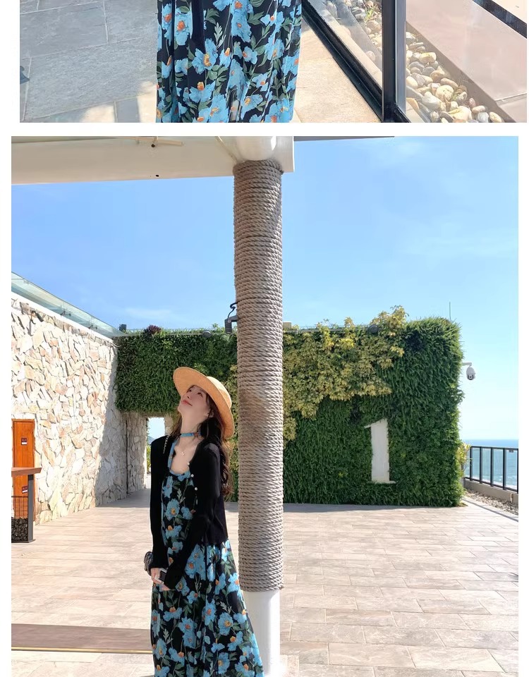 여름 푸른 꽃 원피스 스트랩 긴 원피스 해변 휴일 해변 원피스 슈퍼 요정 삼아 태국 여행 사진스토어 가기