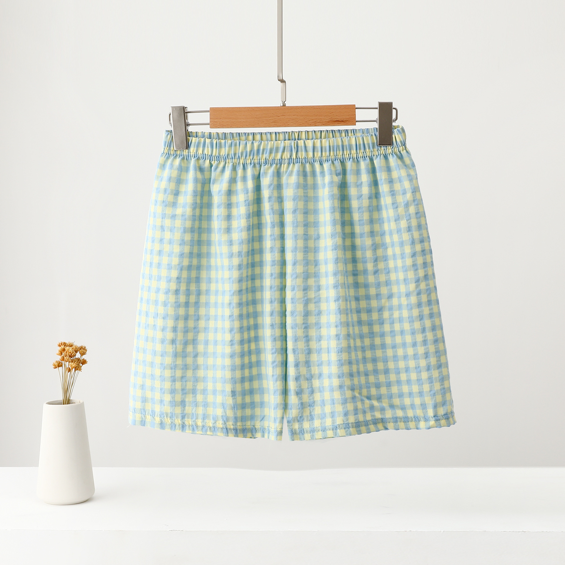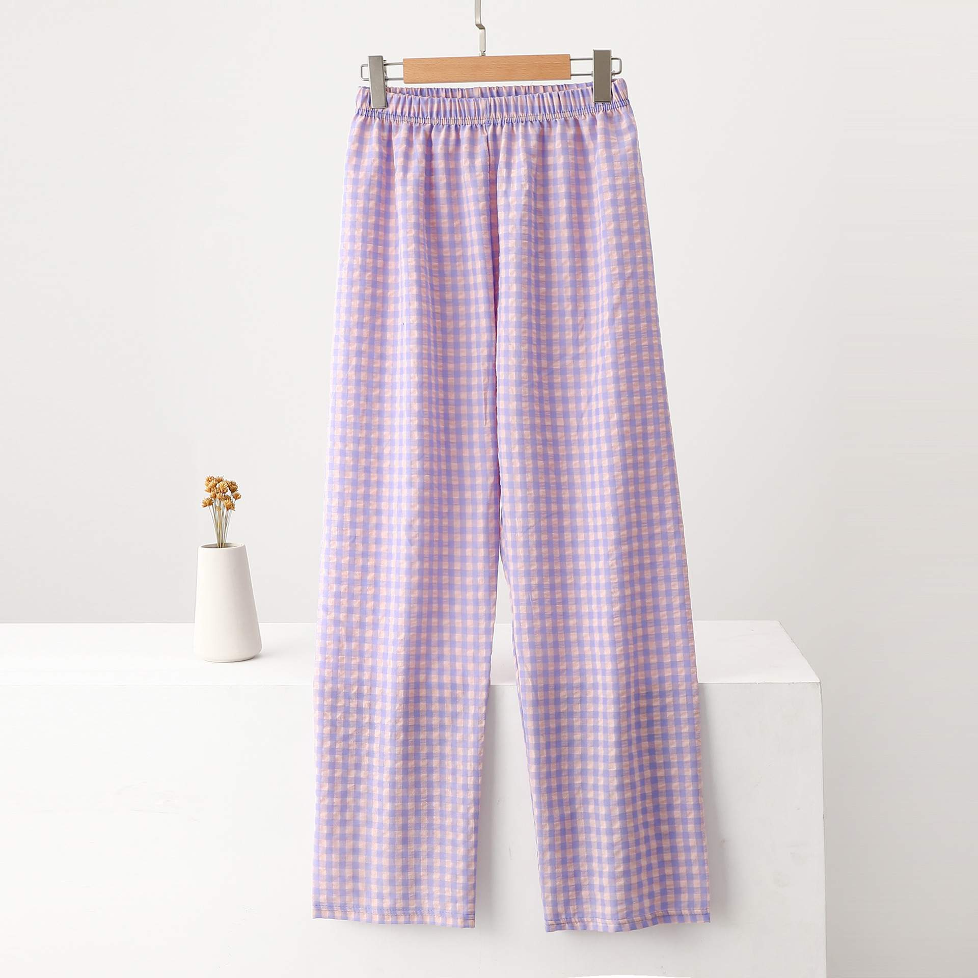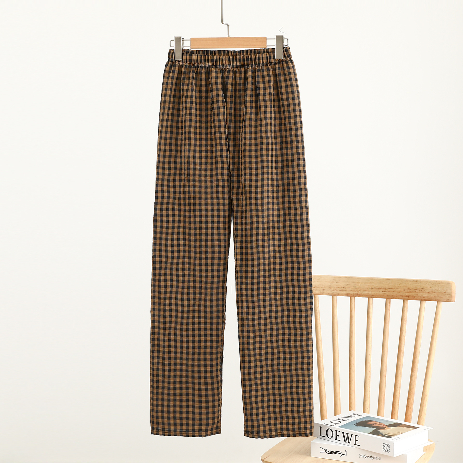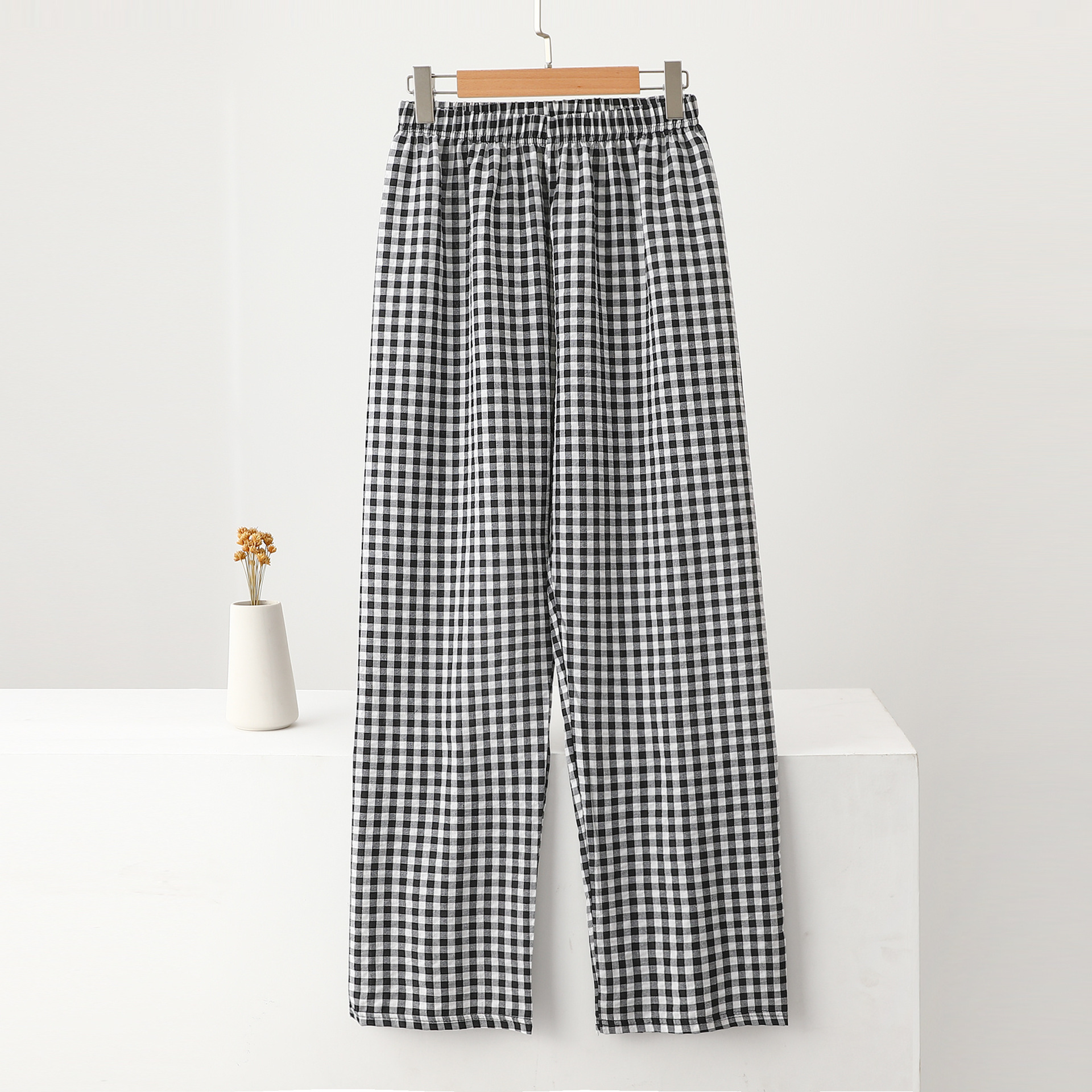여성을위한 새로운 격자 무늬 반바지 여름 얇은 캔디 컬러 한국 스타일 바지 코튼 루즈 캐주얼 스트레이트 레그 워킹 파자마 바지