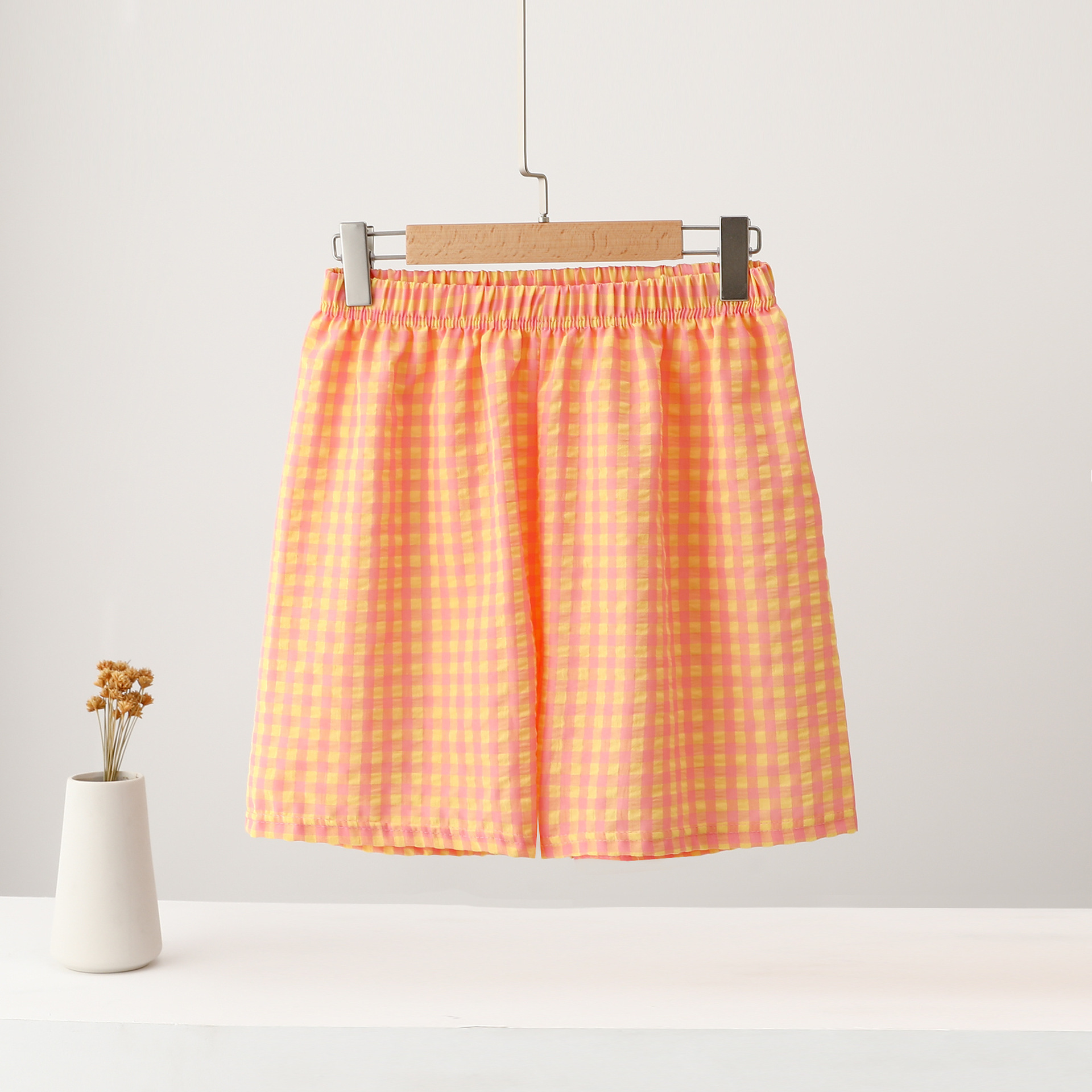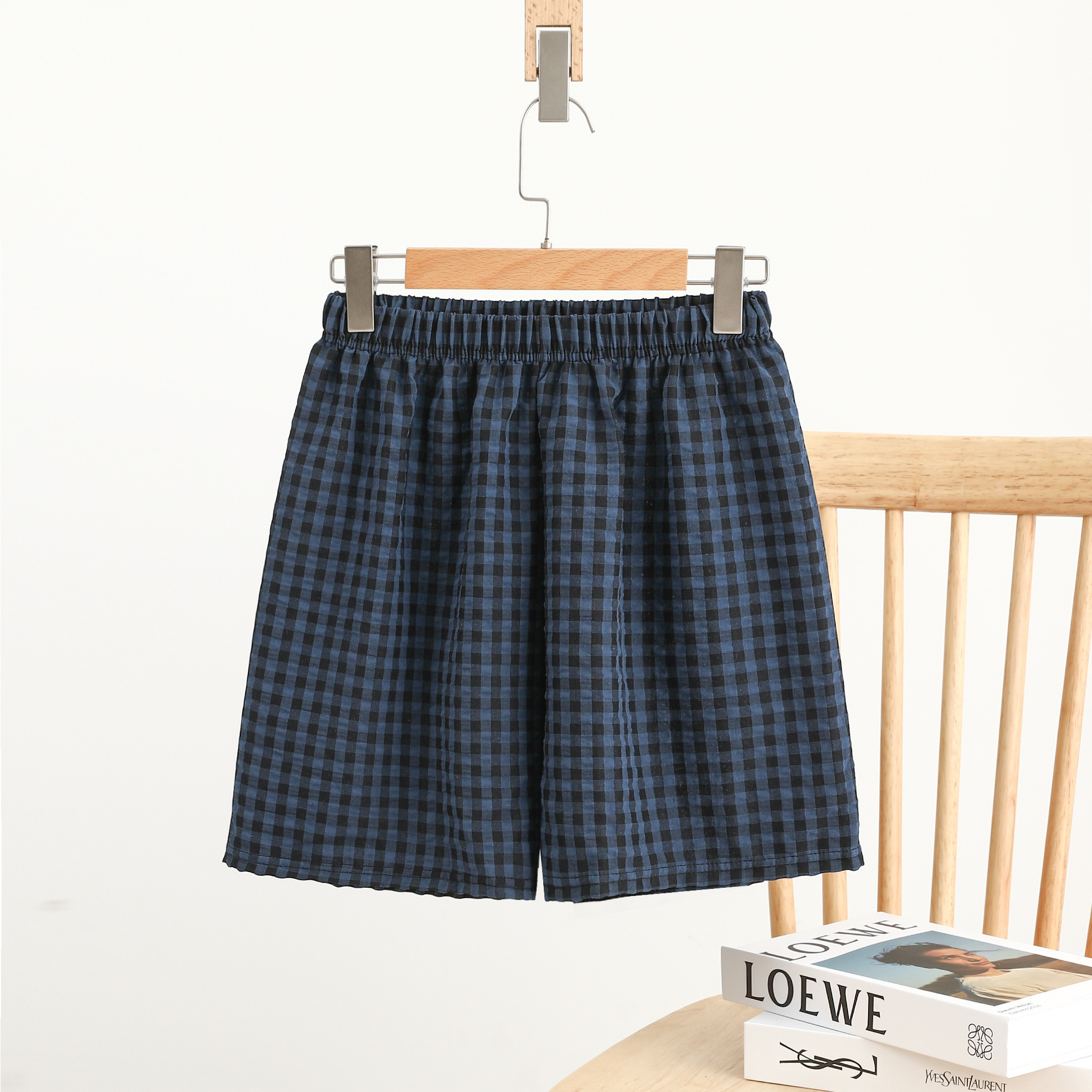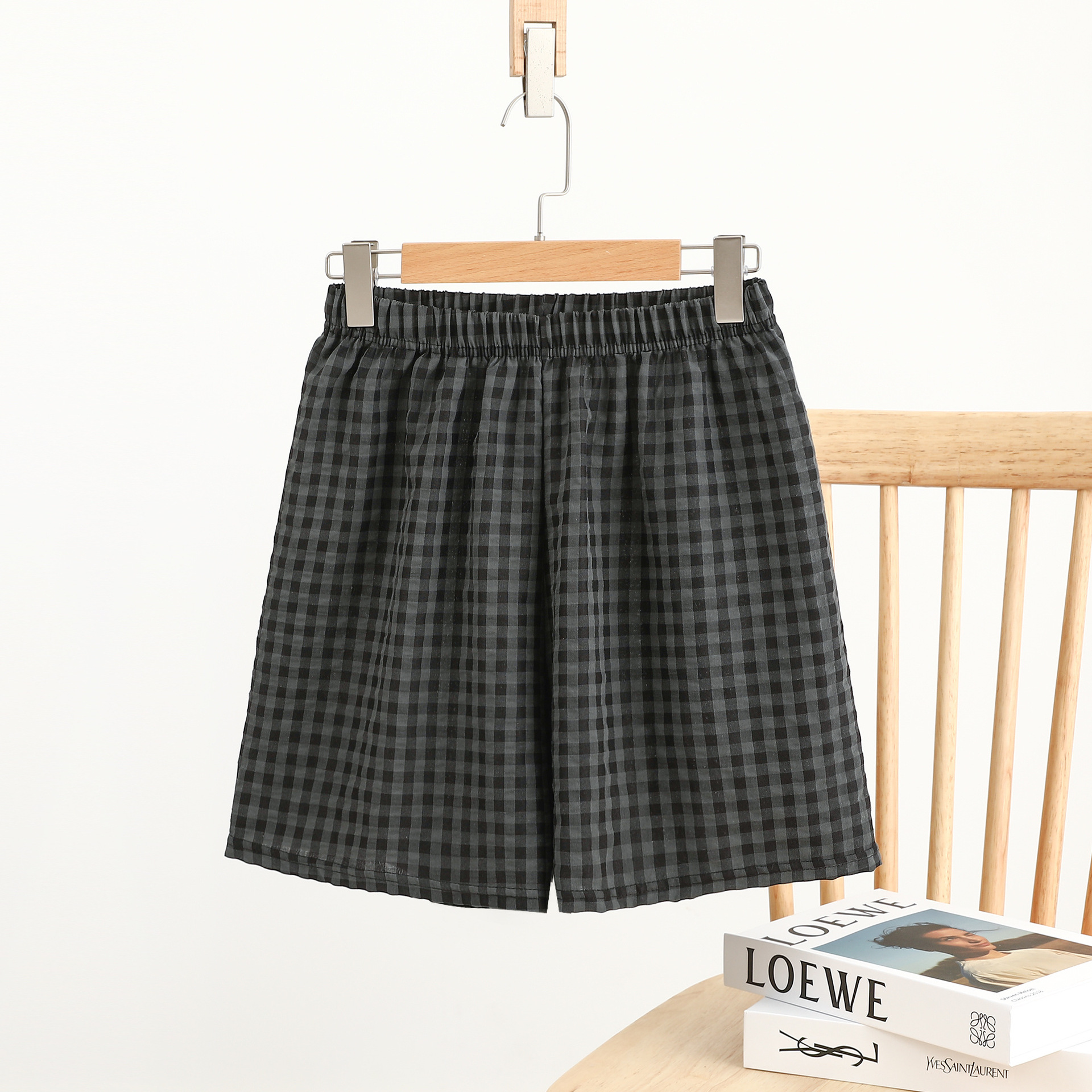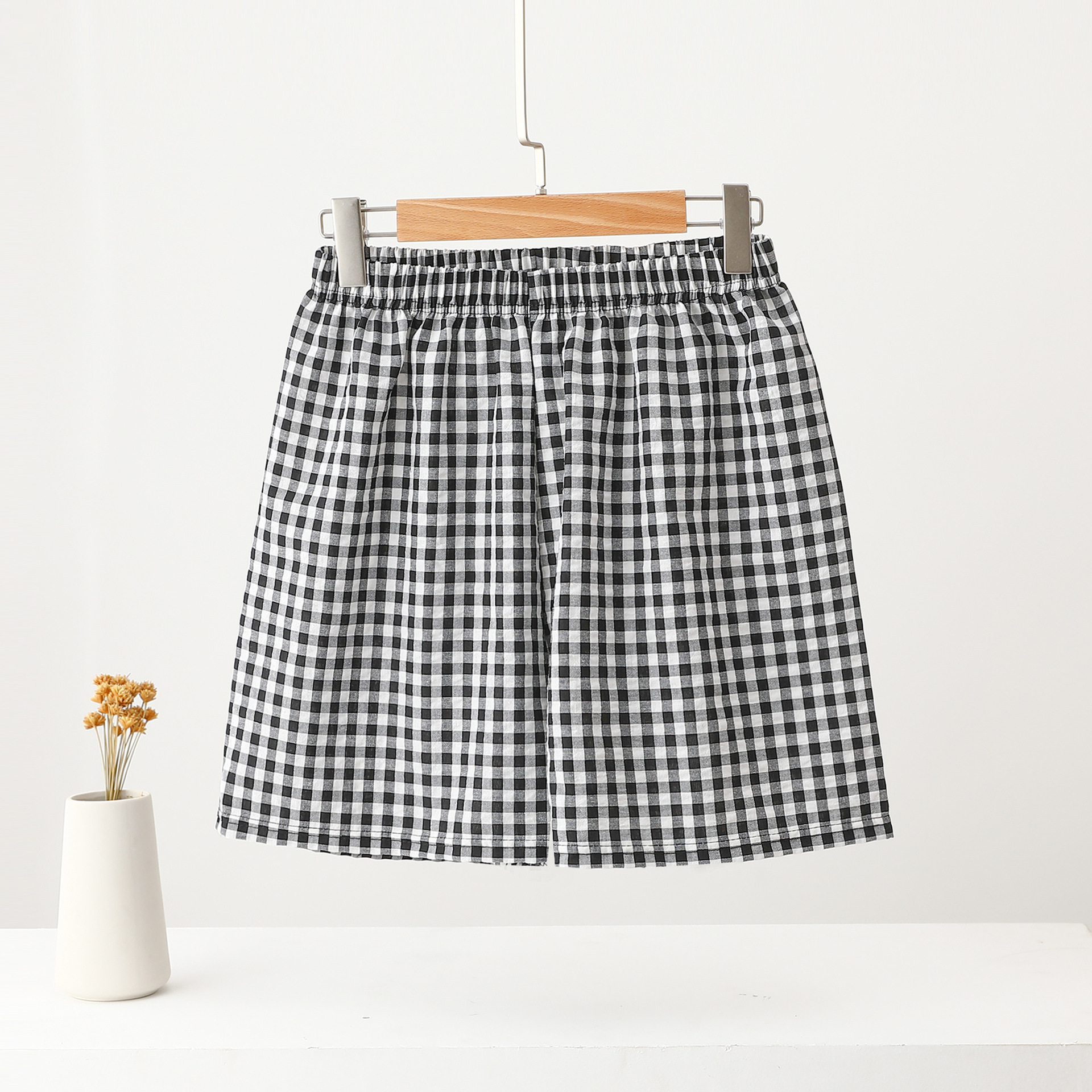 여성을위한 새로운 격자 무늬 반바지 여름 얇은 캔디 컬러 한국 스타일 바지 코튼 루즈 캐주얼 스트레이트 레그 워킹 파자마 바지