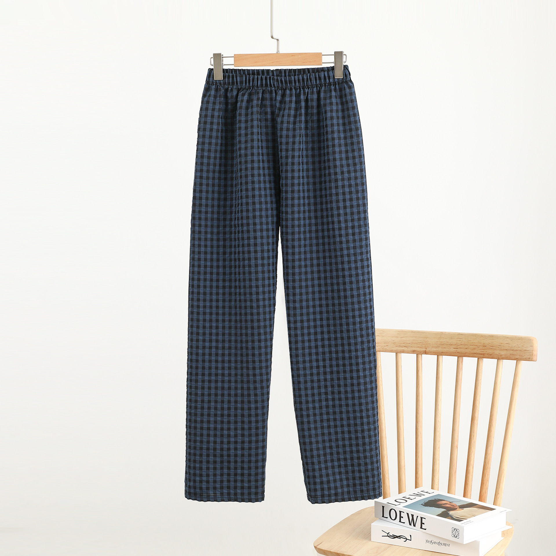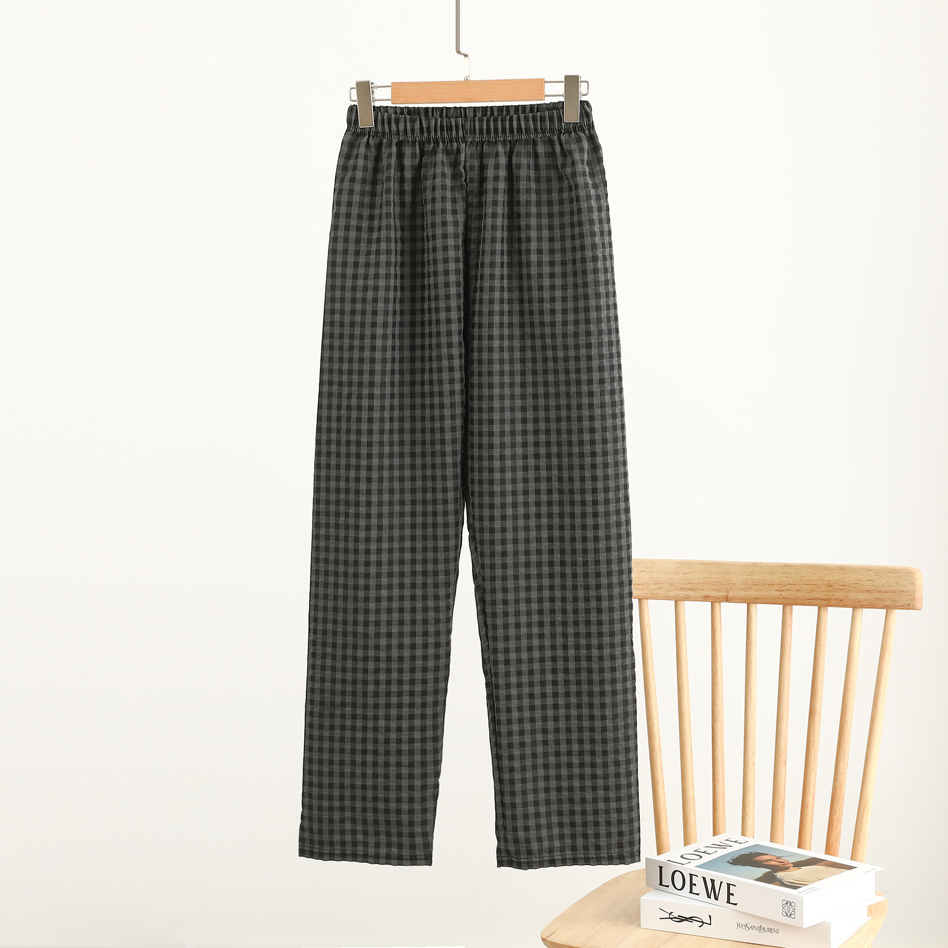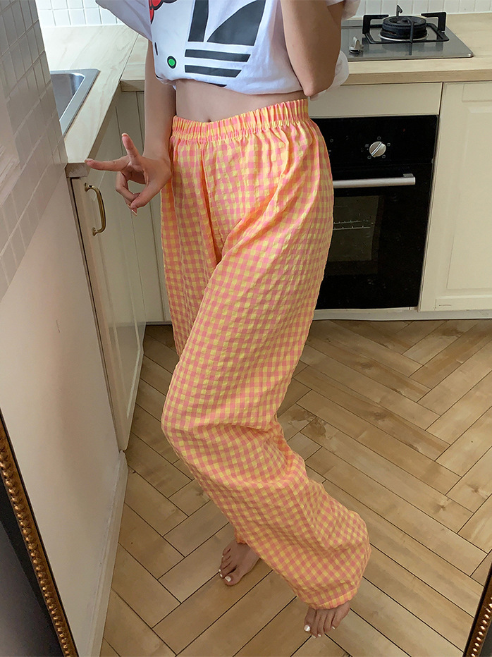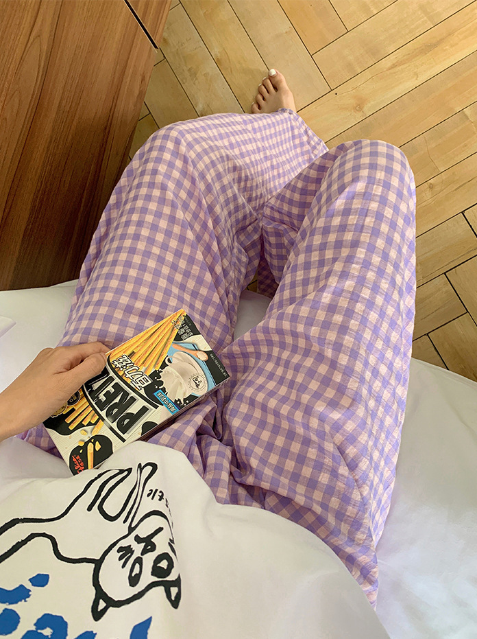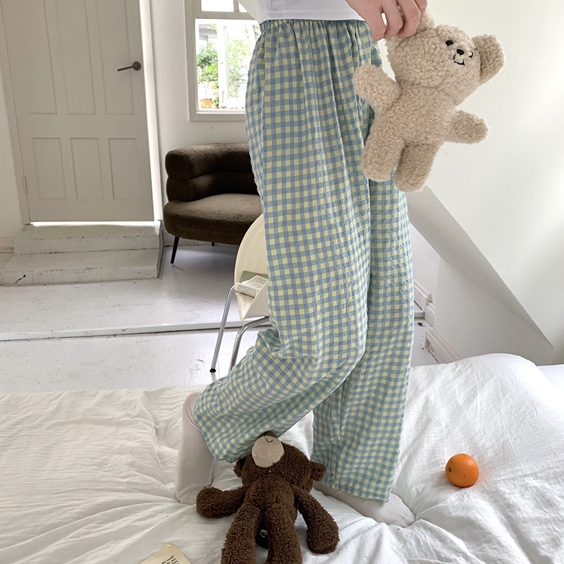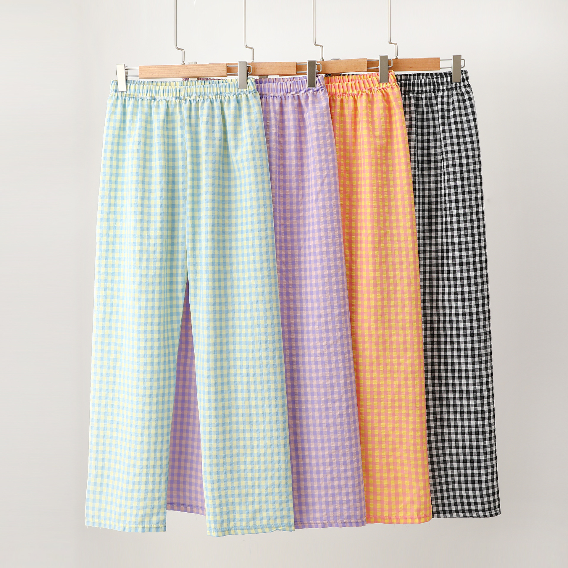여성을위한 새로운 격자 무늬 반바지 여름 얇은 캔디 컬러 한국 스타일 바지 코튼 루즈 캐주얼 스트레이트 레그 워킹 파자마 바지스토어 가기