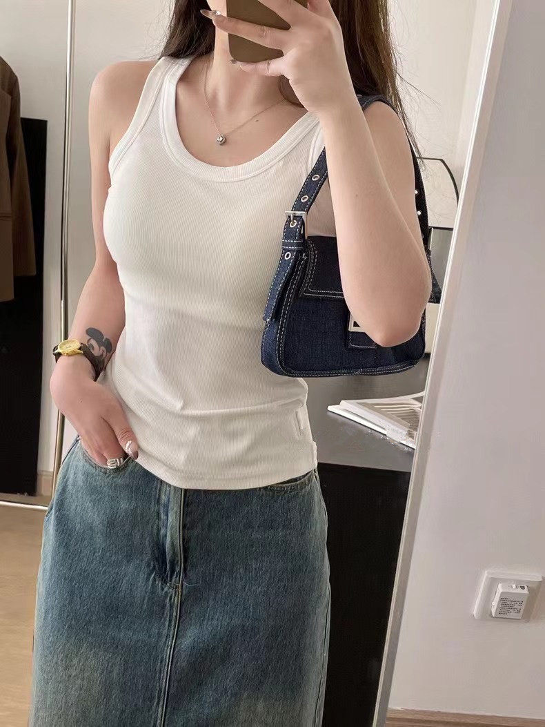 Yuanxi yuanxi 2025 새로운 조끼 여성 액세서리 우유 슬리밍 내베이스 슬링 실크 실 면화