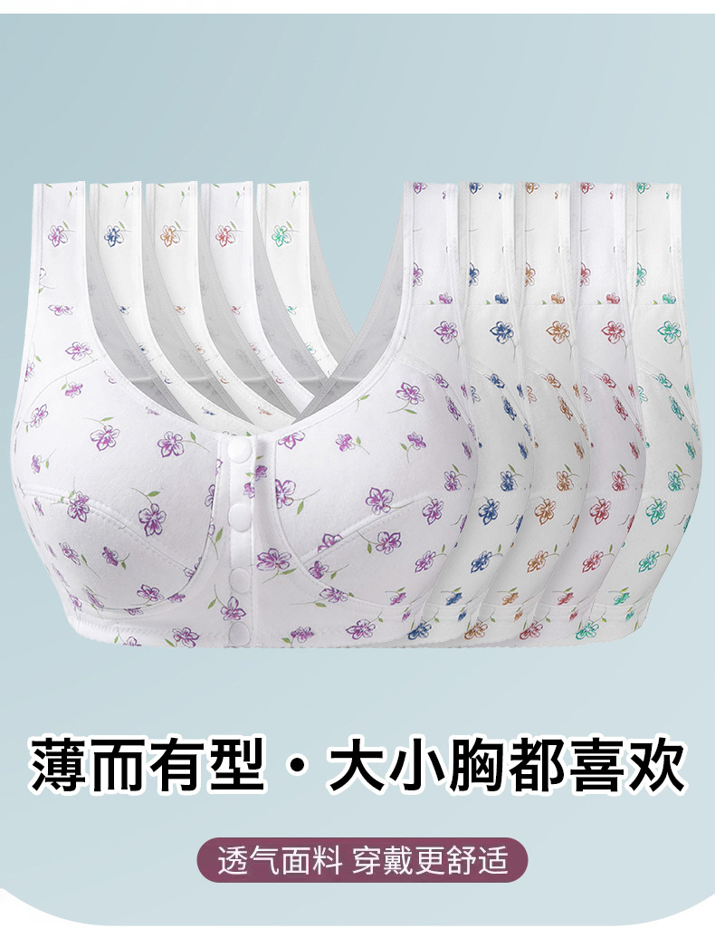 중년 및 노인 모성 플러스 사이즈 속옷 얇은 파름 전면 개방 버튼 푸시 업 스틸 링 조끼 슬리핑 브라스토어 가기