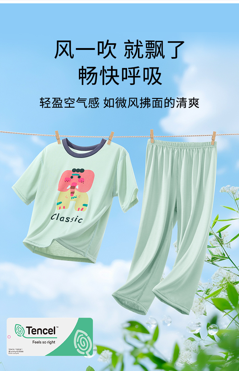 소년 잠옷 2025 새로운 여름 얇은 소녀 반팔 바지 어린이 소녀 가정 의류 큰 어린이 에어컨 옷스토어 가기