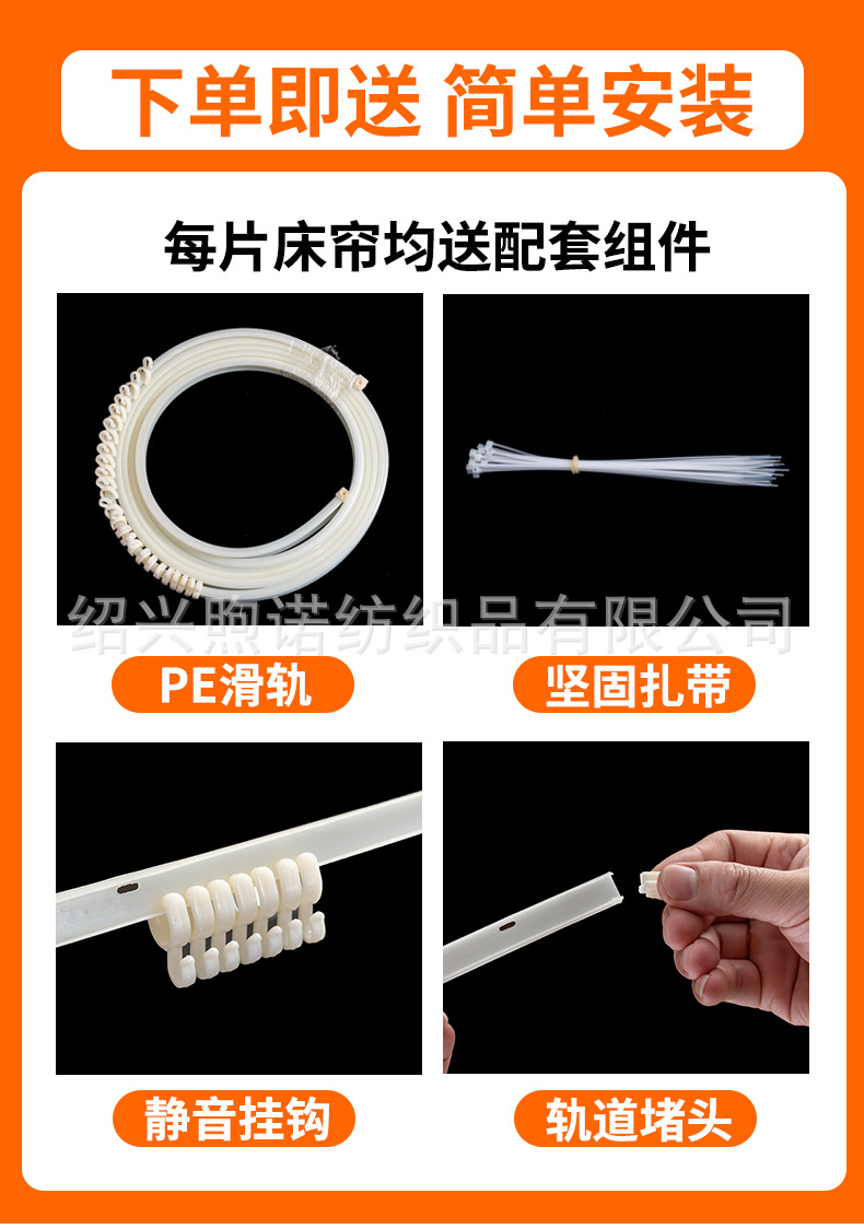 • 1.5m 높이 [슬라이드 레일 2m 쌍 + 커튼 1개 + 실 1개 + 침대 눈썹]