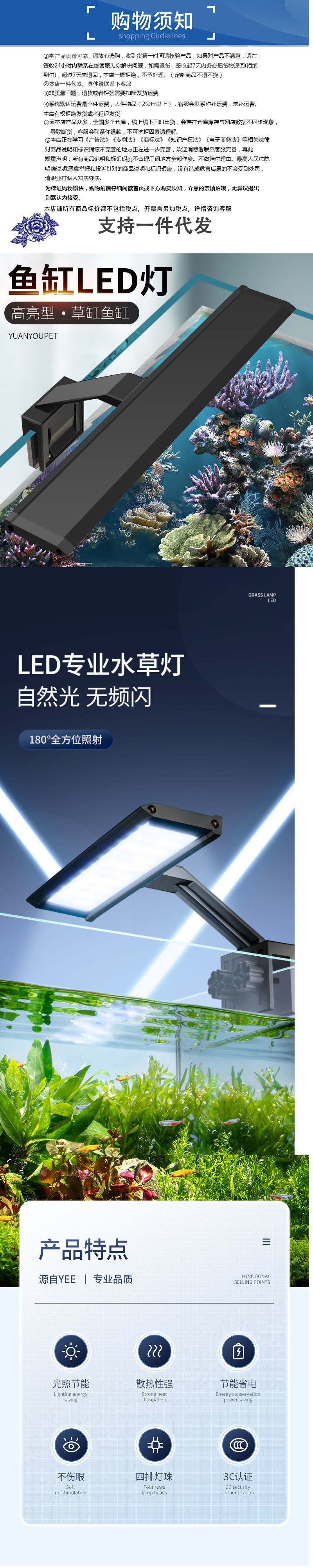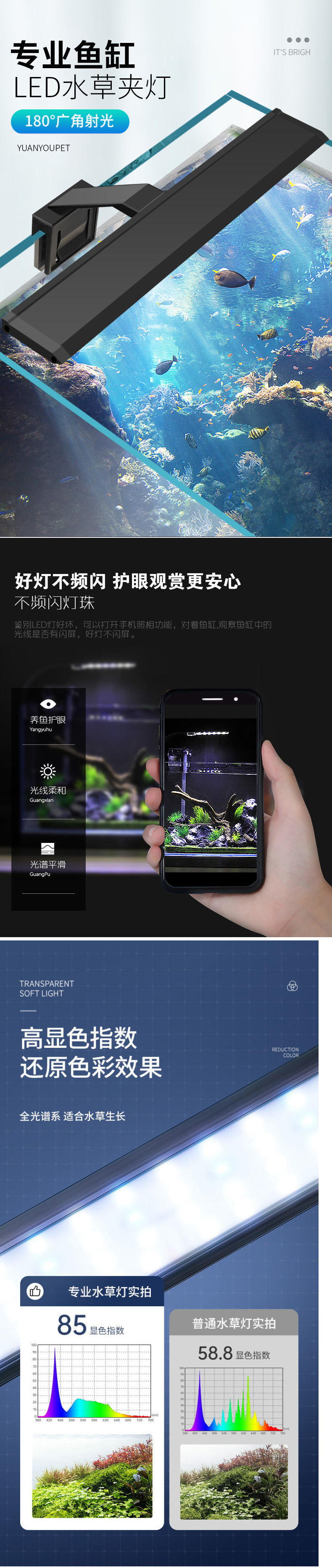 수조 조명 LED 조명 수초 탱크 조명 물 튀김 방지 소형 에너지 절약 조명 미니 소형 클립 조명 수족관 수초 조명스토어 가기