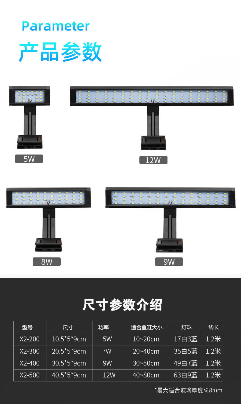 수조 조명 LED 조명 수초 탱크 조명 물 튀김 방지 소형 에너지 절약 조명 미니 소형 클립 조명 수족관 수초 조명