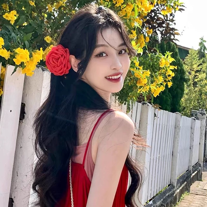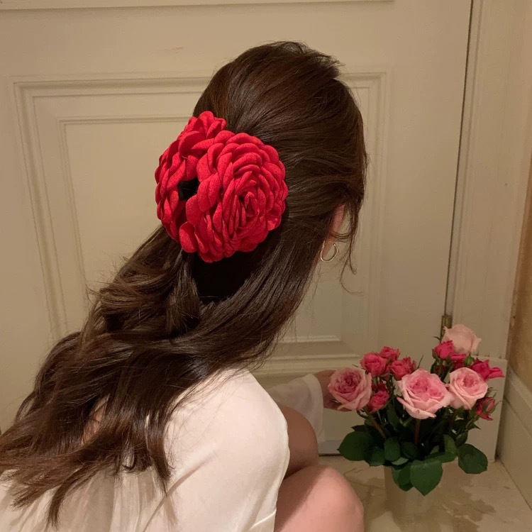 큰 빨간 장미 꽃 클램프 2025 새로운 스타일 우아한 반 넥타이 헤어핀 하이 엔드 꽃 상어 클립 헤드웨어스토어 가기