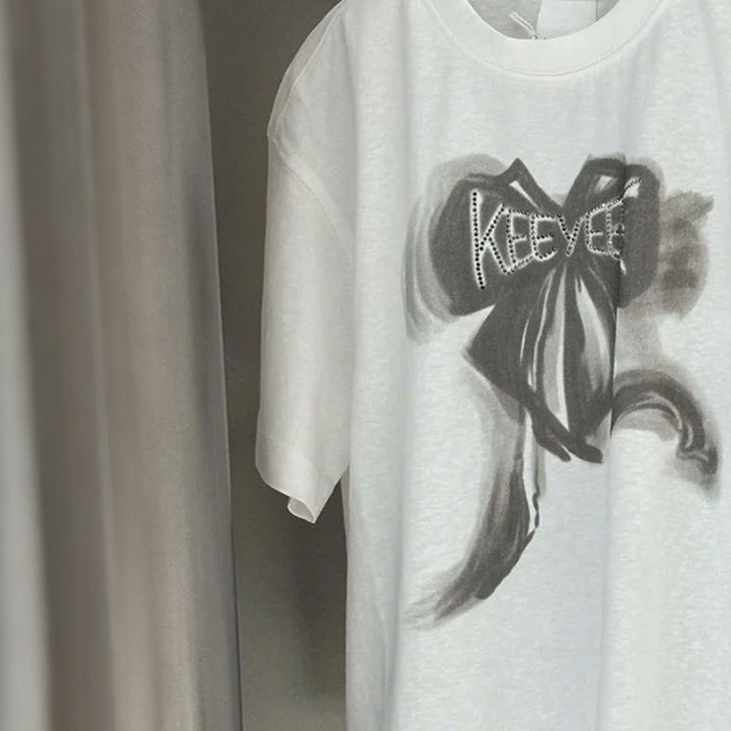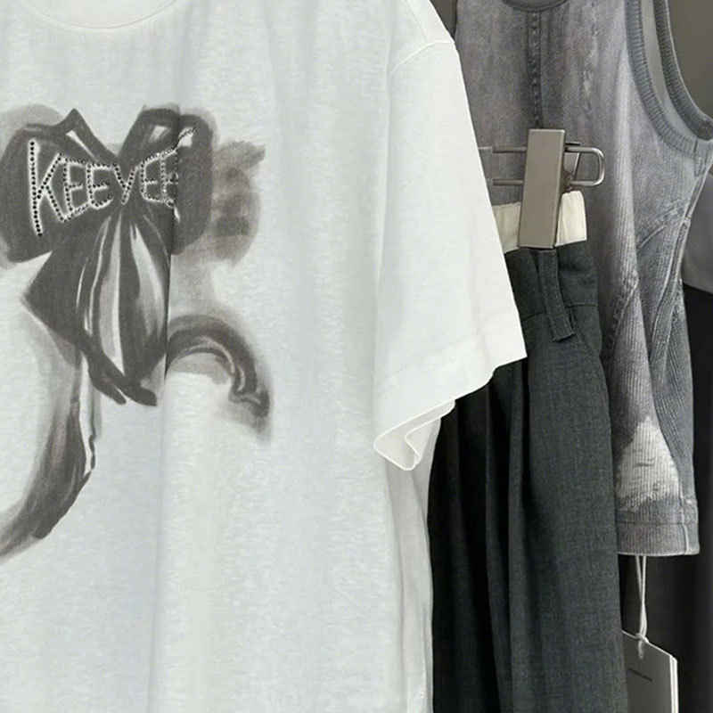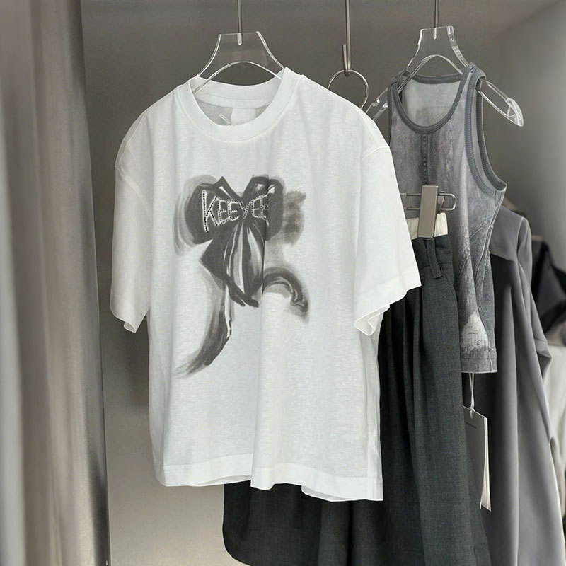 여자 반팔 티셔츠 어린이 활 옷 여름 코튼 2025 새로운 큰 어린이 탑 화이트 웨스턴 스타일 트렌디 6스토어 가기