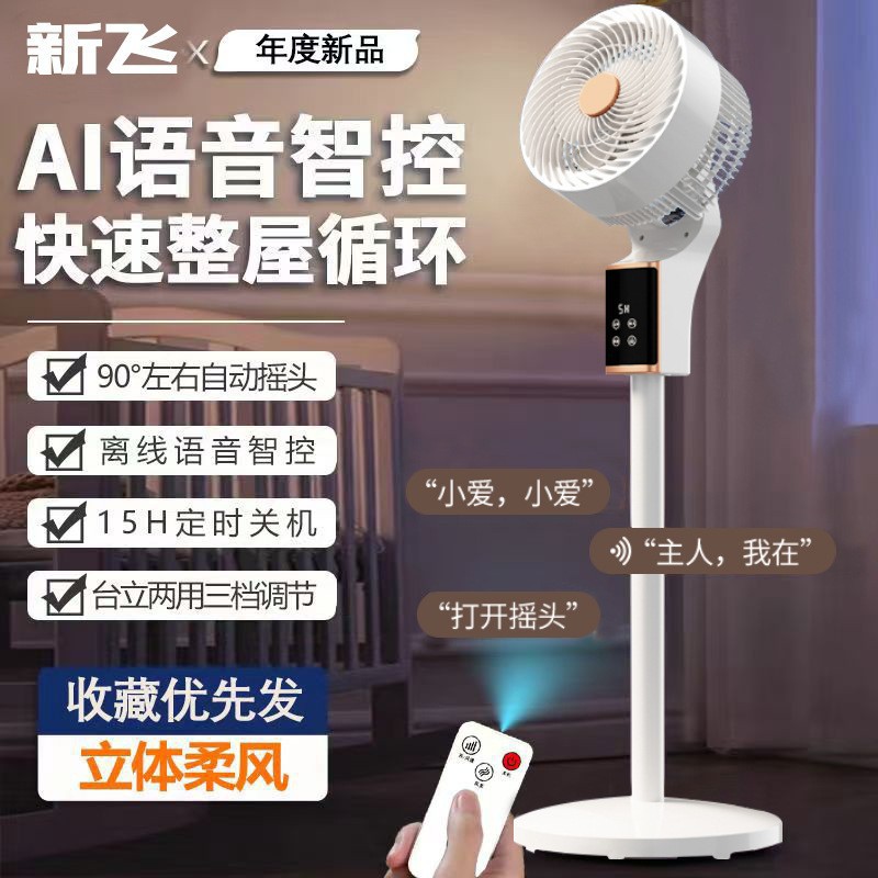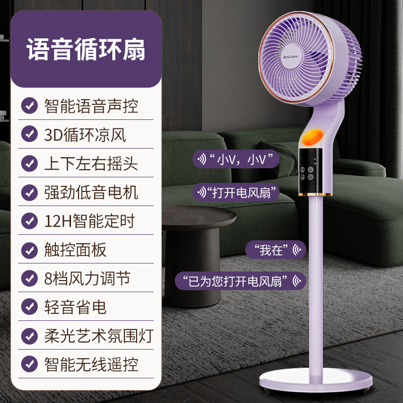 새로운 전기 팬 가정용 바닥 팬 지능형 음성 공기 순환 팬 8 자 떨리는 머리 울트라 조용한 수직 야간 조명