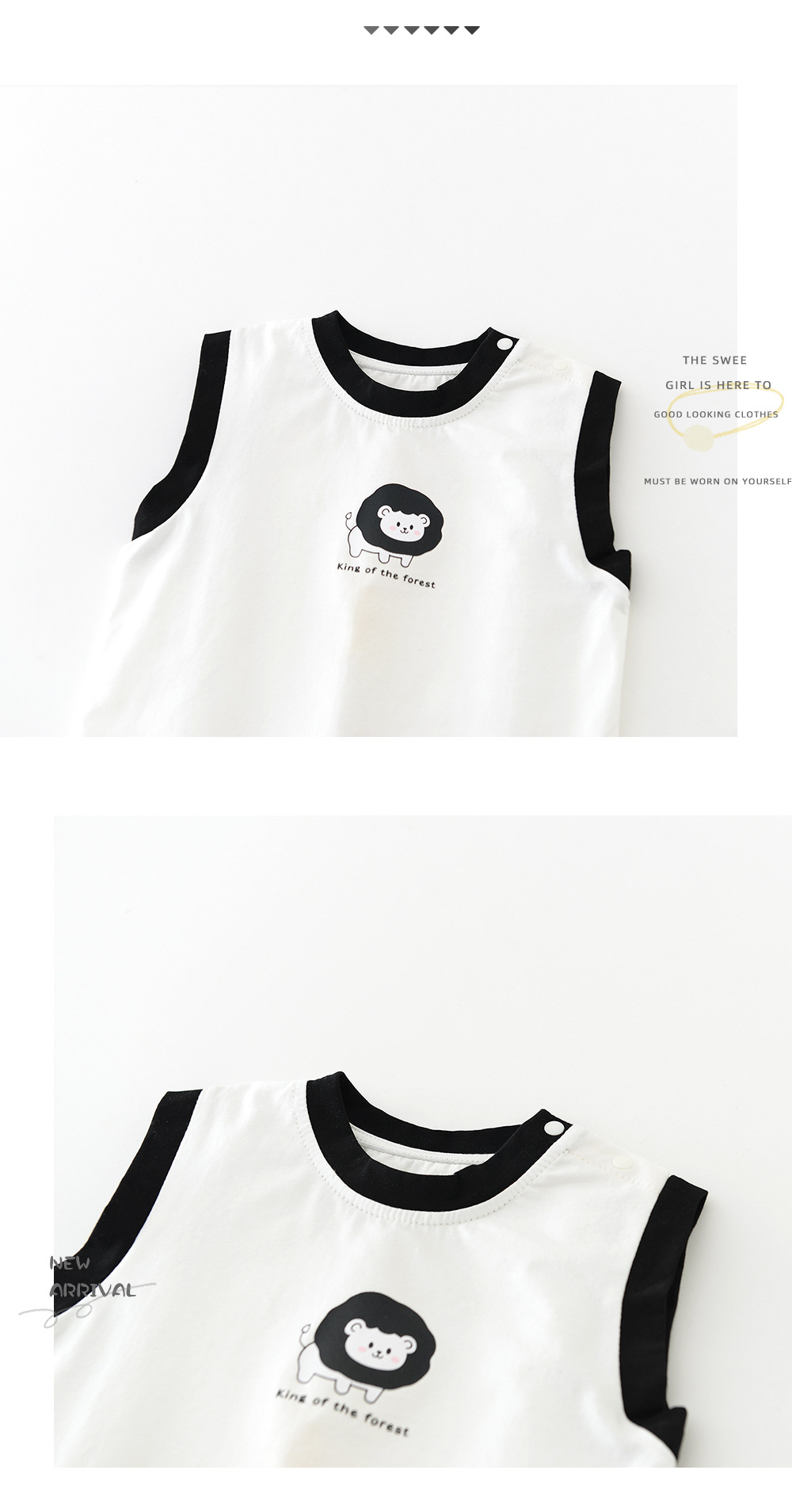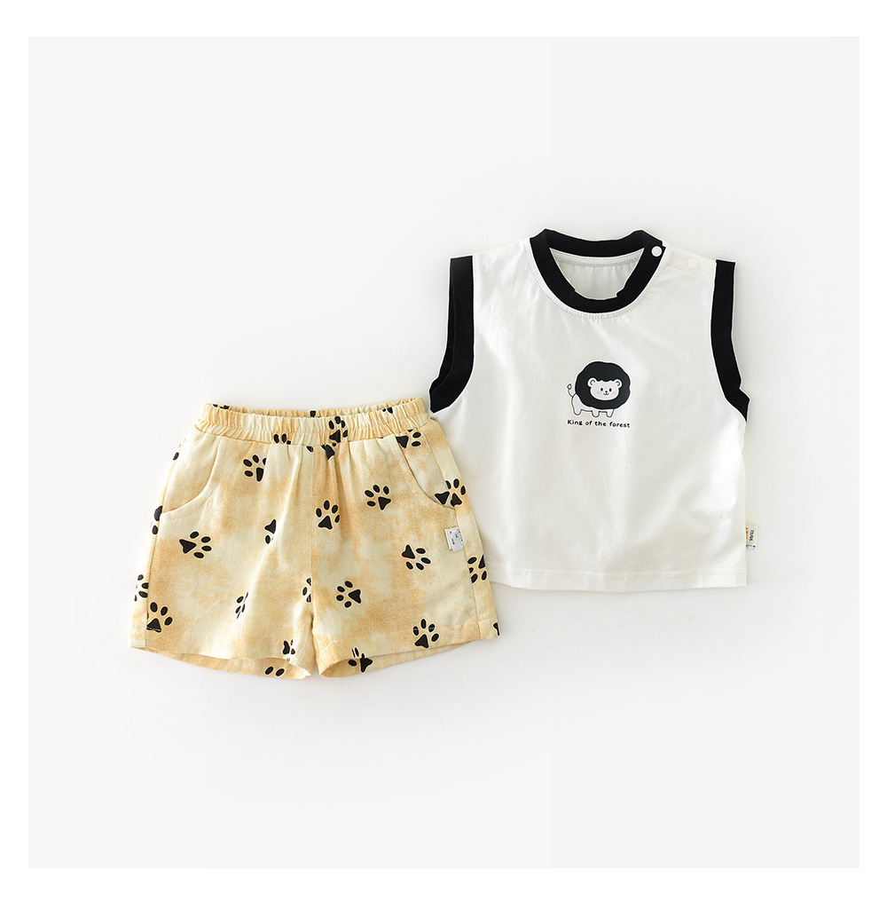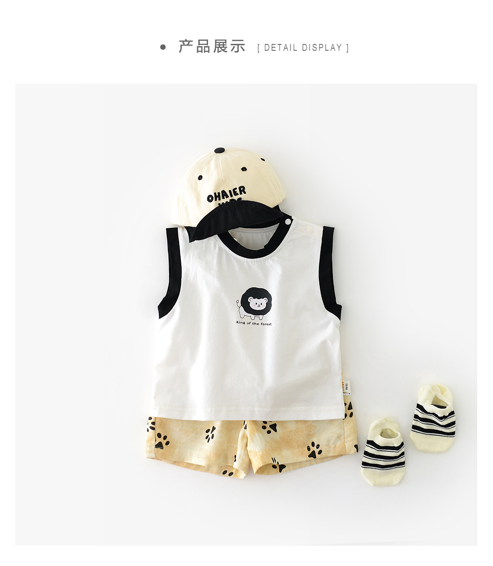 2025 여름 소년의 작은 사자 인쇄 조끼 세트 1-3 세 아기 만화 반바지 2 조각 52576