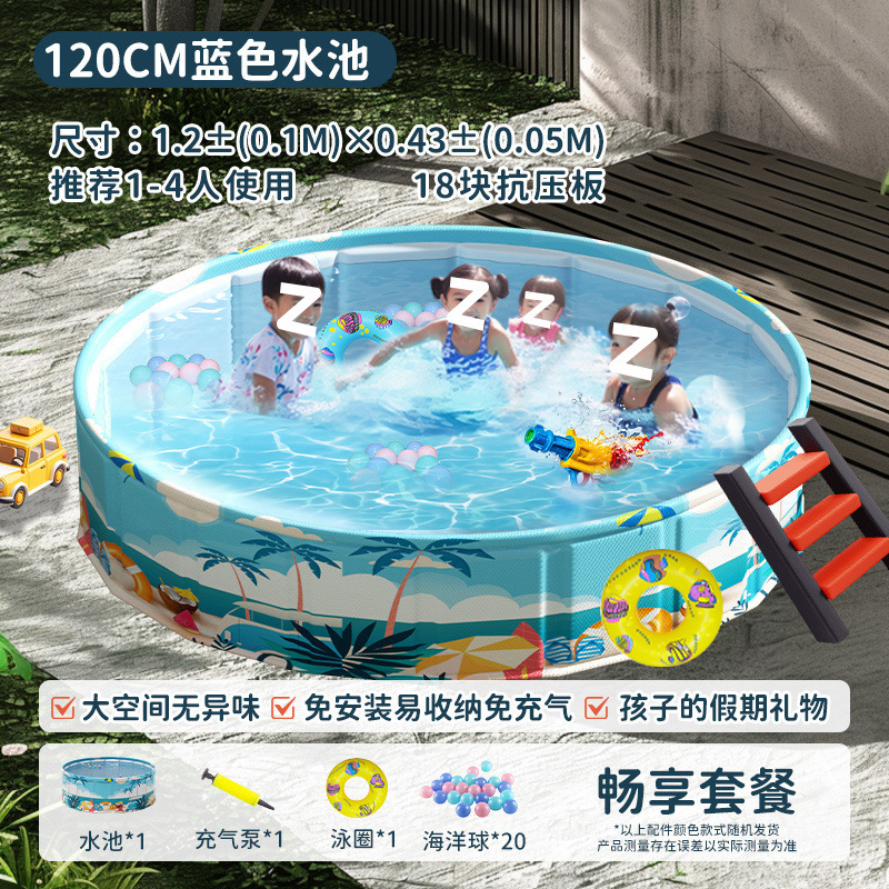 • 수영용 버킷 + 넥링 + 오션볼 20개 - 몇 초 만에 열리고 닫힘 丨 3인용 6겹 두꺼워짐 [120cm]