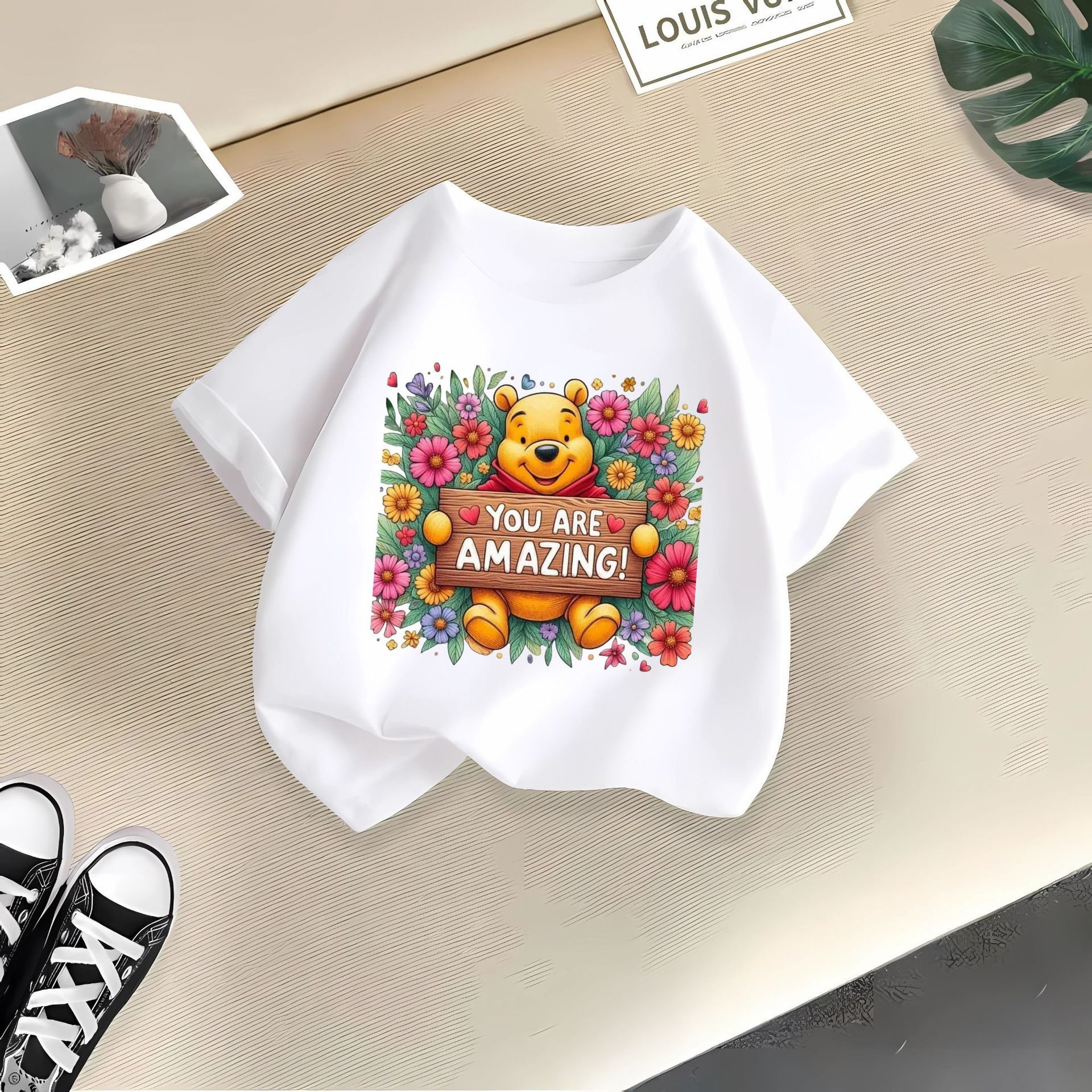국경 간 만화 곰 여름 새로운 느슨한 프린트 티셔츠스토어 가기