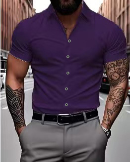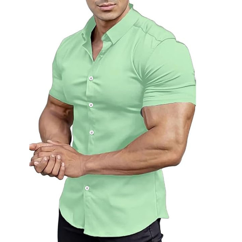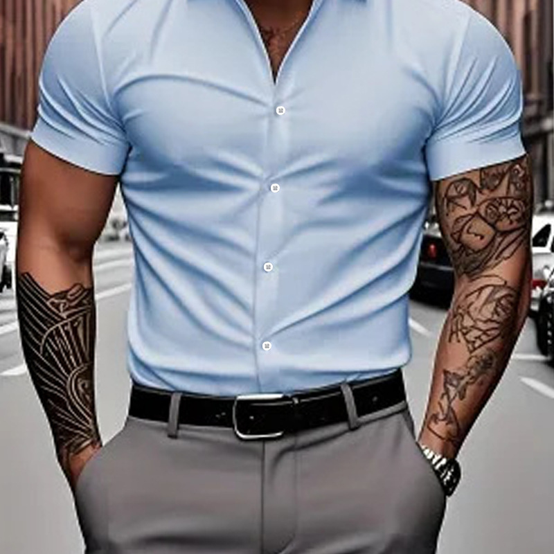 여름 새로운 짧은 소매 인쇄 셔츠 남성 셔츠 칼라 캐주얼 패션 솔리드 컬러 셔츠 얇은 반팔 셔츠 남성